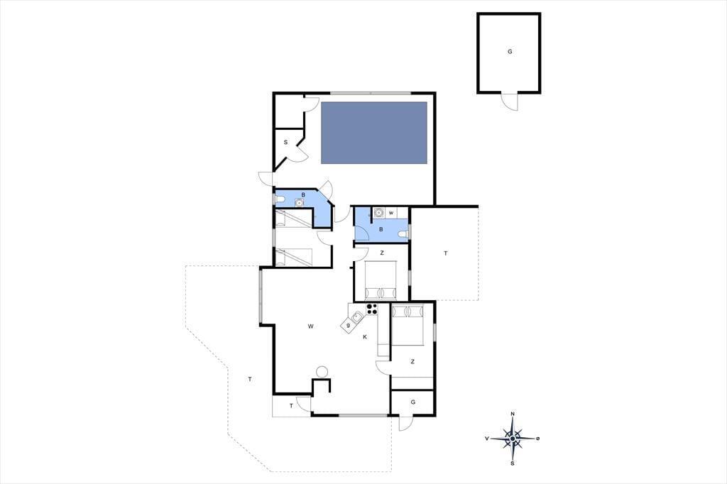 Diese Unterkunft hat eine Fläche von 119 m² und befindet sich auf einem 2.500 m² Grundstück, u.a. mit Schaukel, Sandkasten und Trampolin.