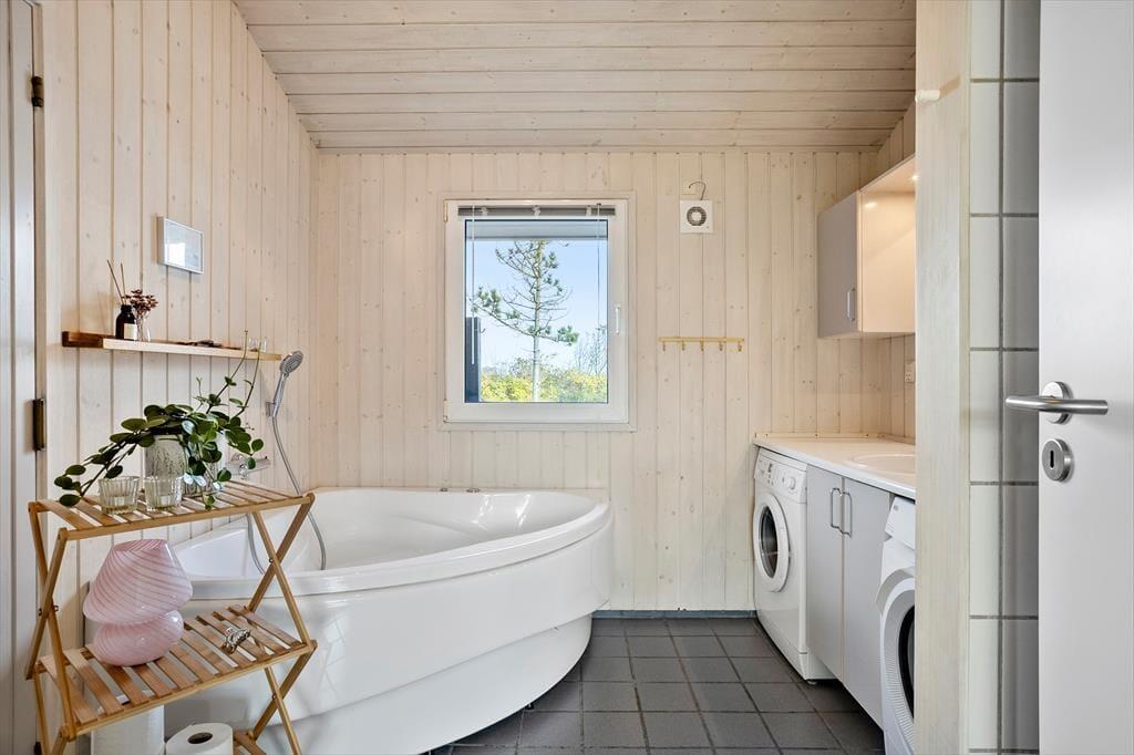 Die kleine Sackgasse Under Bjergene verläuft direkt vor den Inlandsdünen. Die Umgebung besticht mit einem reichen Tierleben, sodass Sie mit ein wenig Glück Rehe bewundern, die durch die Umgebung streifen oder direkt auf Ihrem Naturgrundstück vorbeischauen. Bei schönem Wetter wird es Wasserratten und Badenixen gleich mehrmals täglich an den Nørlev Strand ziehen. Falls es Ihnen für Bäder in den Nordseewellen zu kalt sein sollte, besuchen Sie das nahegelegene Skallerup Seaside Resort, das unter anderem mit einem schönen Badeland und einem tollen Wellnessbereich zu überzeugen weiß.