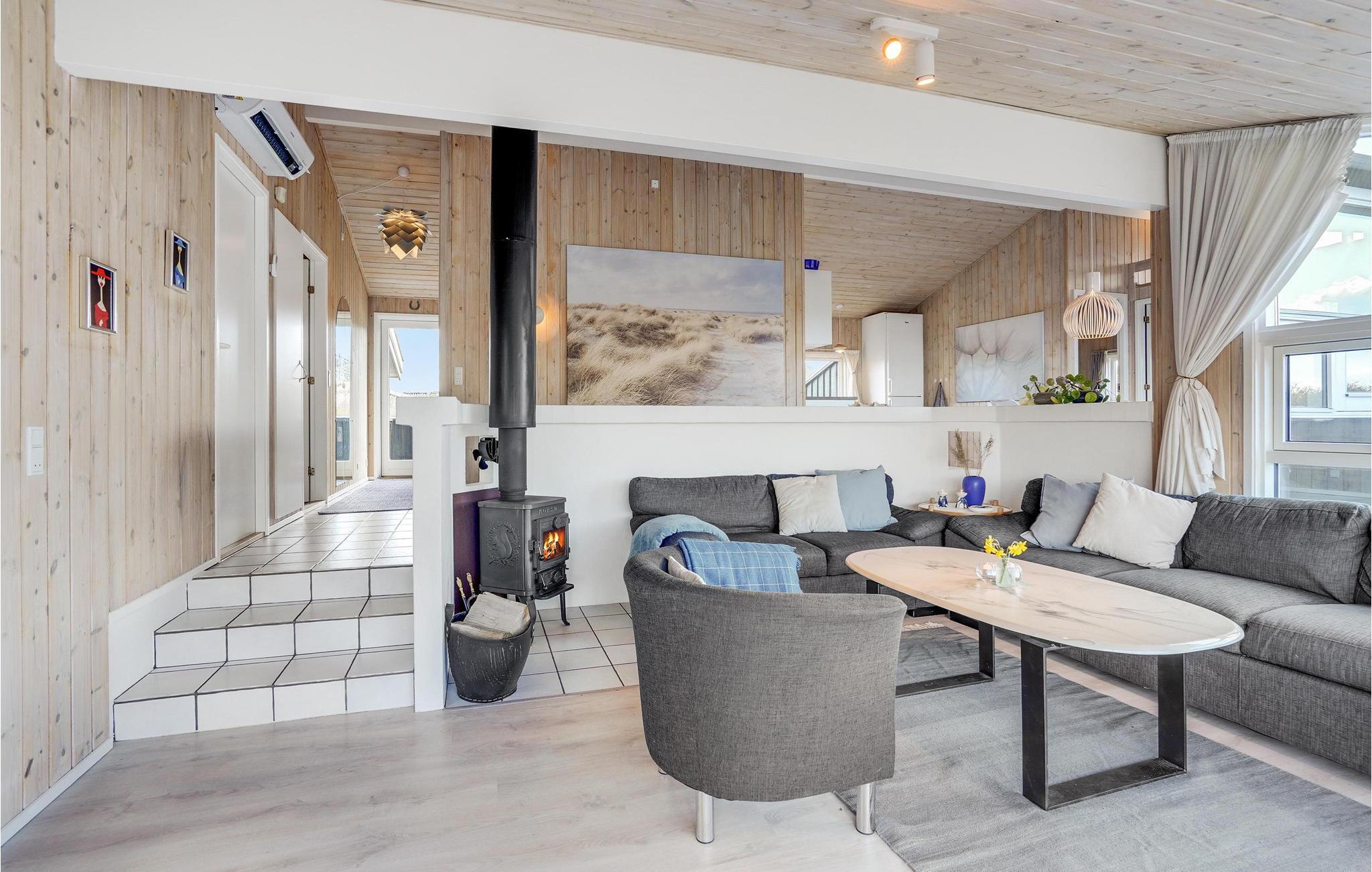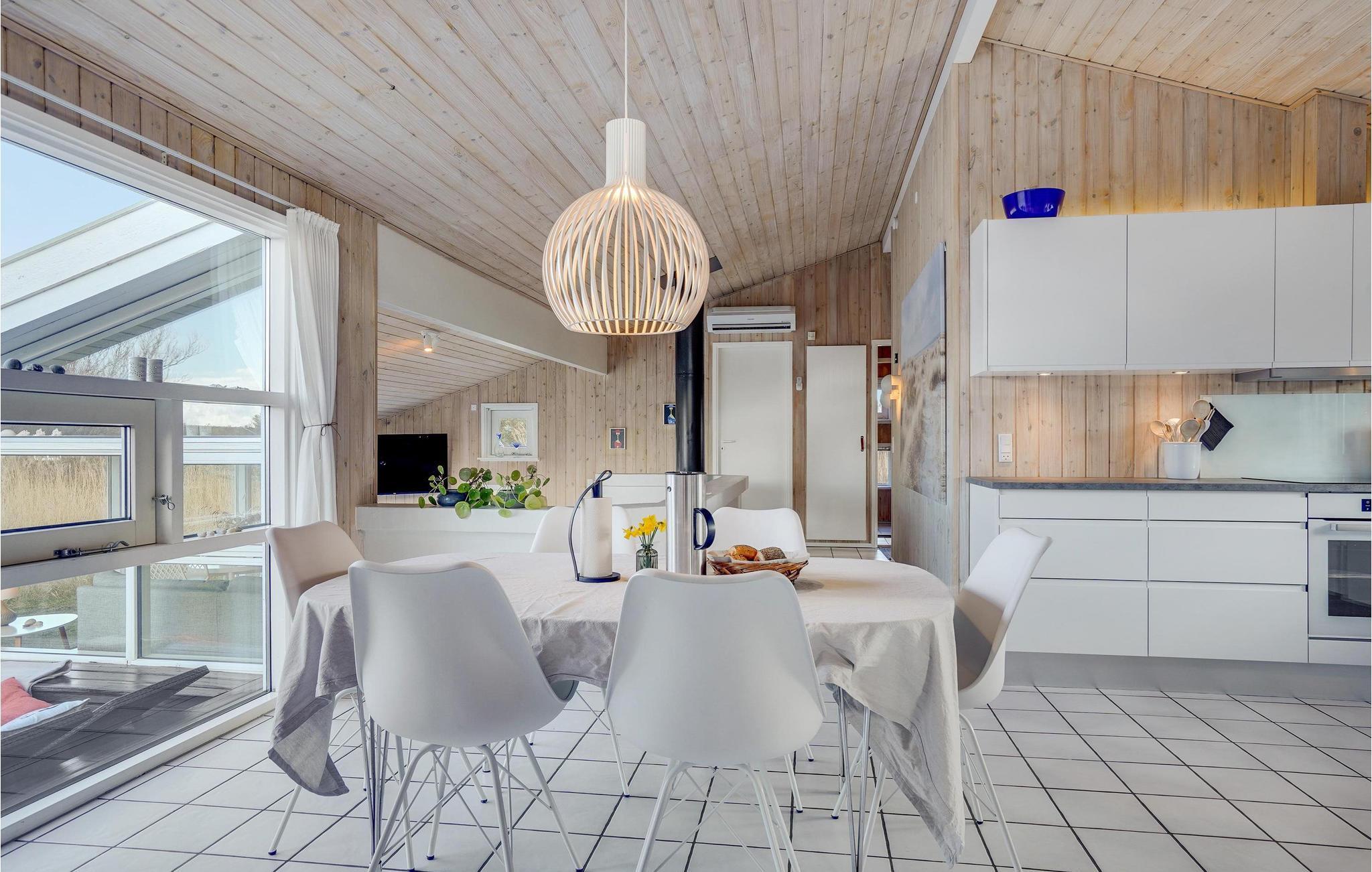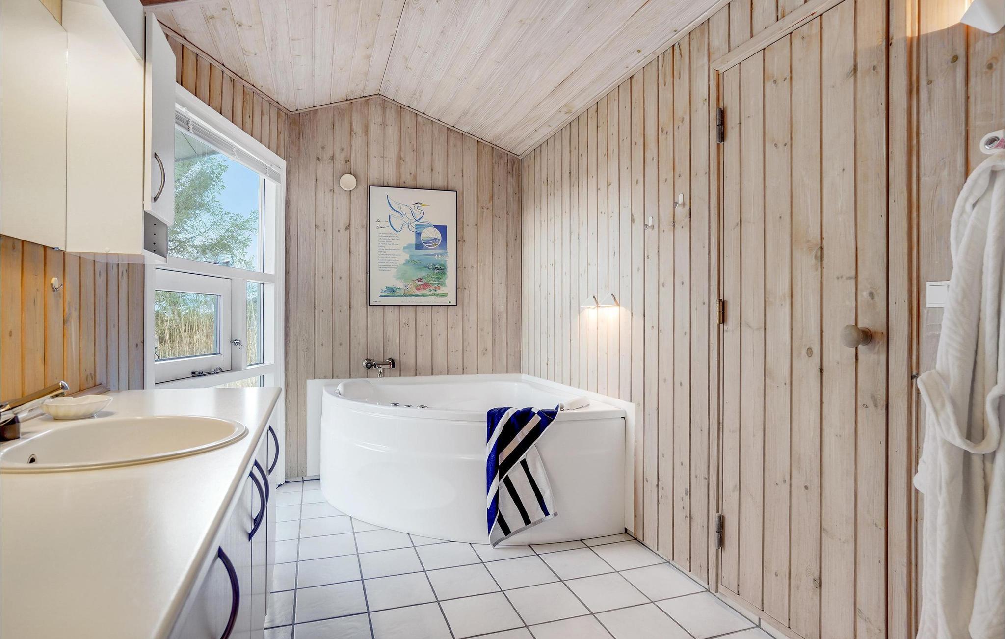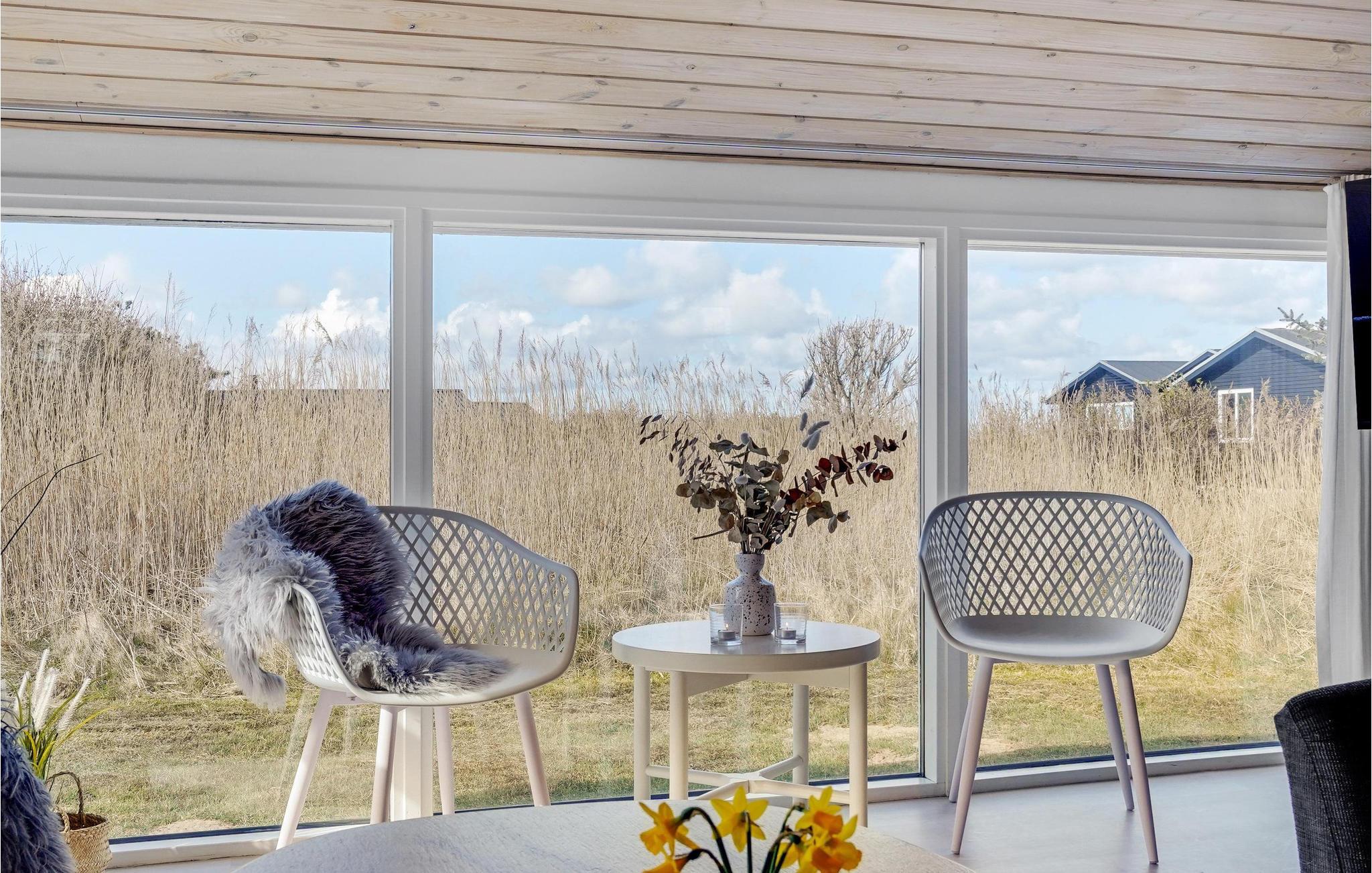 Das Ferienhaus befindet sich in einer sehr ruhigen Umgebung mit den Binnendünen als nächstem Nachbarn. Gönnen Sie sich eine Auszeit von Ihrem Alltag und reisen mit Ihrer Großfamilie oder einer befreundeten Familie nach Noerlev Strand. Das schöne Haus ist gut ausgestattet und hell, da große Fenster das natürlich Licht ins Innere lassen. Für Ihr persönliches Wellnessprogramm finden Sie im Badezimmer eine Whirlpool-Badewanne und Sauna. Machen Sie es sich auf den Sofas bequem und genießen den Meerblick bei einer Tasse Tee oder einem Glas Wein. Entspannen Sie auch unter dem blauen Himmel auf der guten Terrasse, so dass Sie immer Schutz finden können.