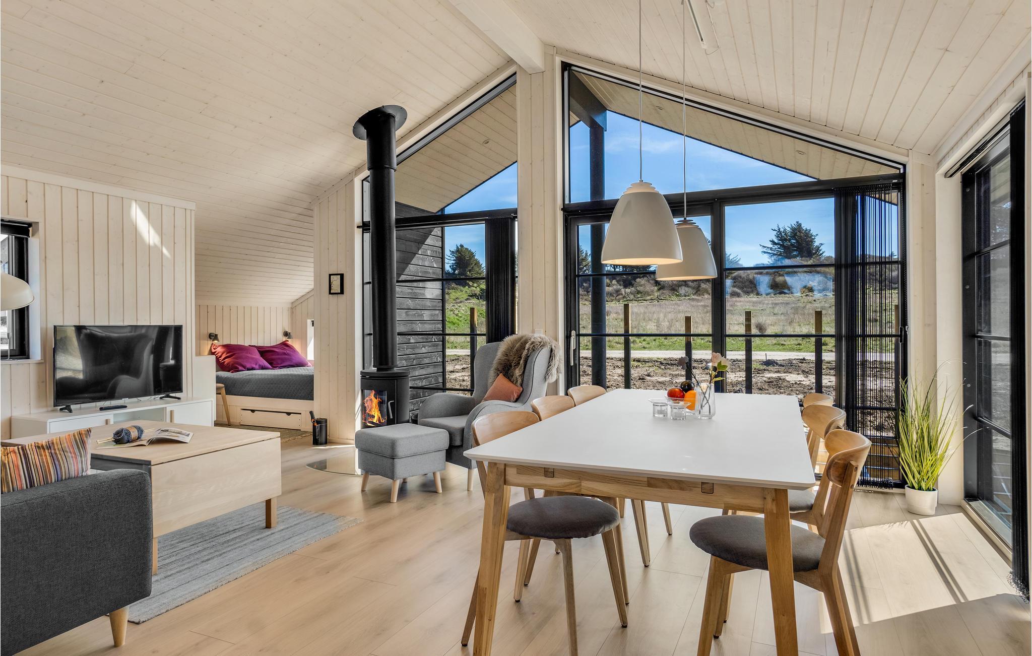 Das ansprechende Haus empfängt Sie in schöner Lage nahe dem wunderbaren Nordseestrand und ist der ideale Ort für eine geruhsame Auszeit. Hier genießen Sie die gemeinsame Zeit in hellen Räumen mit einer modernen Einrichtung und schönen, elegant möblierten Gemeinschaftsbereichen. Entspannen Sie hier in behaglichem Ambiente und freuen Sie sich auf gemütliche Abende auf dem großzügigen Sofa. Genießen Sie bei den gemeinsamen Aktivitäten den schönen Blick in die Natur der Umgebung durch große Panoramafenster. Besonders behaglich wird es, wenn Sie abends im Kaminofen anfeuern und beim Prasseln der Flammen noch lange gemütlich zusammensitzen.