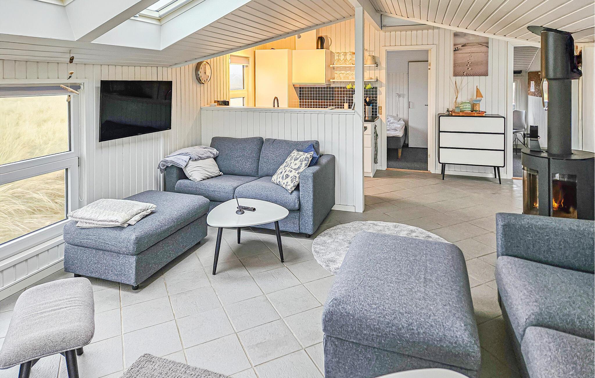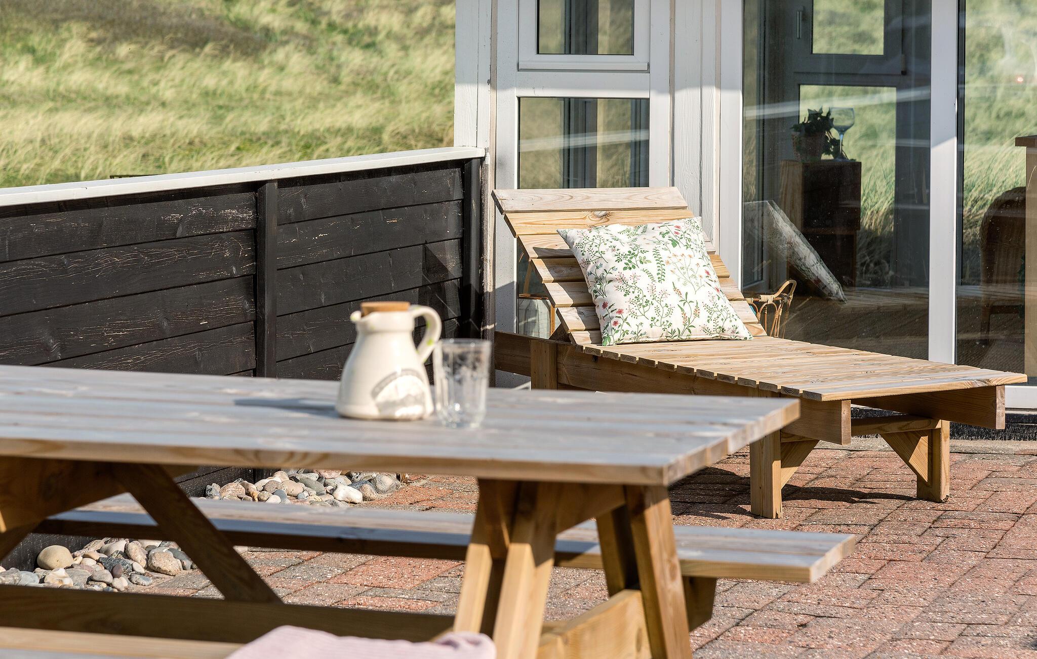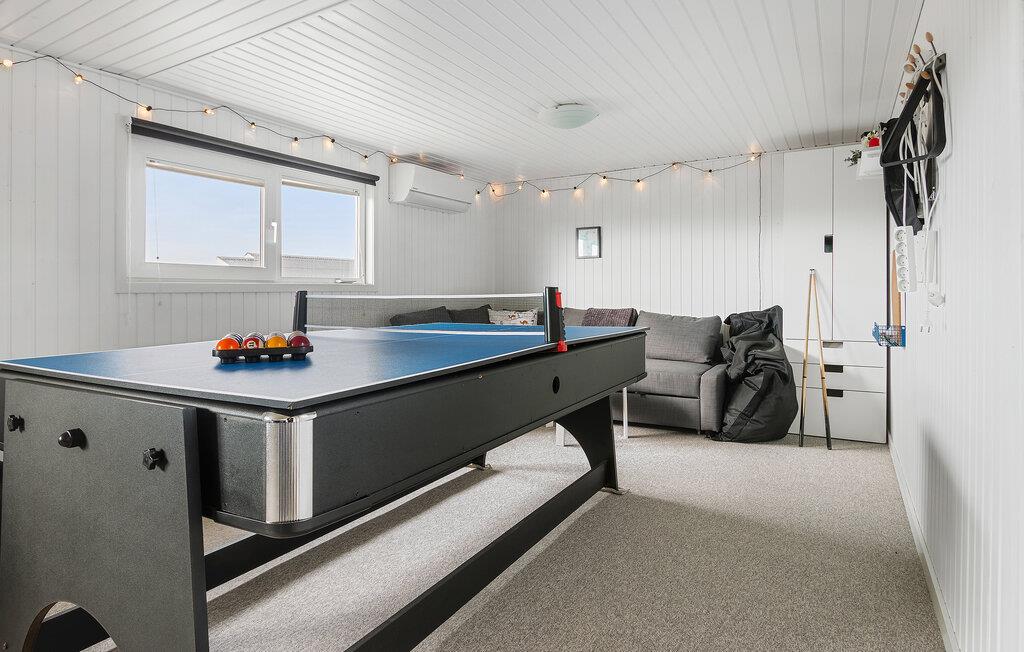In fantastischer Lage nur wenige Schritte vom Strand empfängt Sie dieses einladende Haus, das mit einem schönen Einfall von Tageslicht und einer modernen Einrichtung bezaubert und in dem Sie sich während des Urlaubs häuslich einrichten können. Machen Sie es sich nach einem erlebnisreichen Tag im großzügigen Wohnbereich gemütlich und genießen Sie die fantastische Aussicht durch bodentiefe Fenster, während im Kaminofen ein Feuer prasselt. Ein Saunagang ist nach einem langen Strandspaziergang besonders wohltuend, der Aktivitätsraum bietet Unterhaltungsmöglichkeiten bei jedem Wetter.