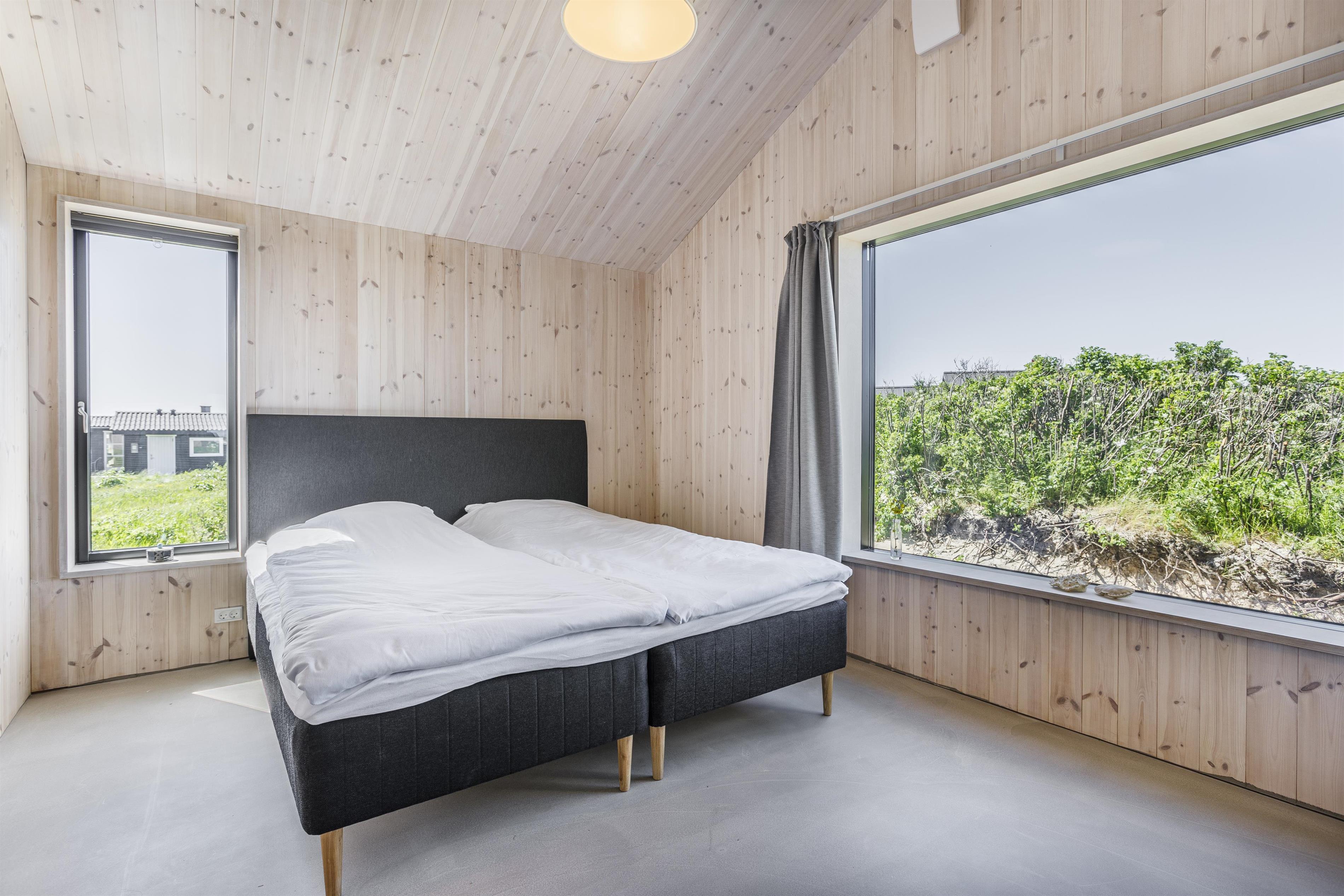 Erwartungen an frische Luft und das Rauschen des Meeres sowie Panoramablicke auf das Meer und den Leuchtturm von Hirtshals werden sofort erfüllt, wenn Sie dieses neue und luxuriöse Ferienhaus in Nørlev betreten. Mit Platz für bis zu 6 Personen ist dieses Ferienhaus der perfekte Rückzugsort für Familien oder Freunde, die ein unvergessliches Urlaubserlebnis suchen. Das Haus, das auf einer Anhöhe in der hügeligen Dünenlandschaft von Nørlev liegt und nur eine sehr kurze Entfernung zum schönsten Sandstrand hat, begeistert mit der Landschafts- und Meeresblick, der in diesem Ferienhaus allgegenwärtig ist. Dieses architektonisch gestaltete Ferienhaus ist geschmackvoll eingerichtet, und es wurde auf jedes Detail sowohl innen als auch außen geachtet. Darüber hinaus ist das Haus äußerst nachhaltig und besteht aus wärmebehandeltem Kiefernholz und ist im gesamten Haus mit Fußbodenheizung aus Erdwärme ausgestattet. Eine Ladestation für Elektroautos ist ebenfalls installiert.