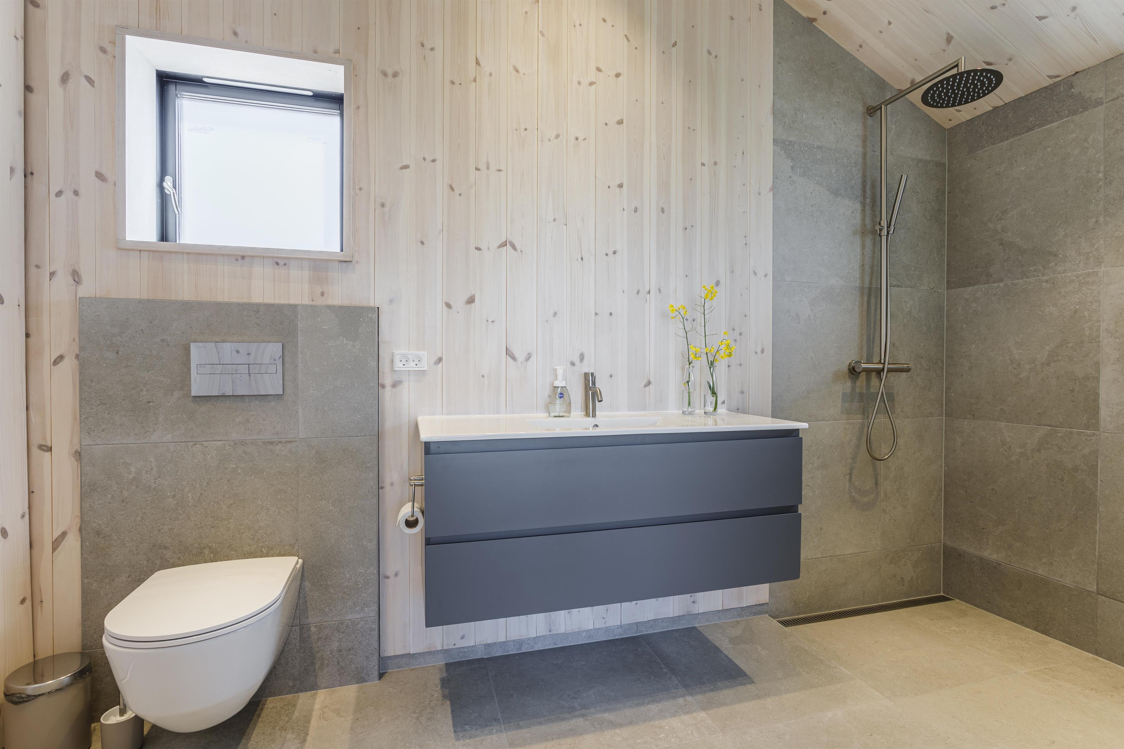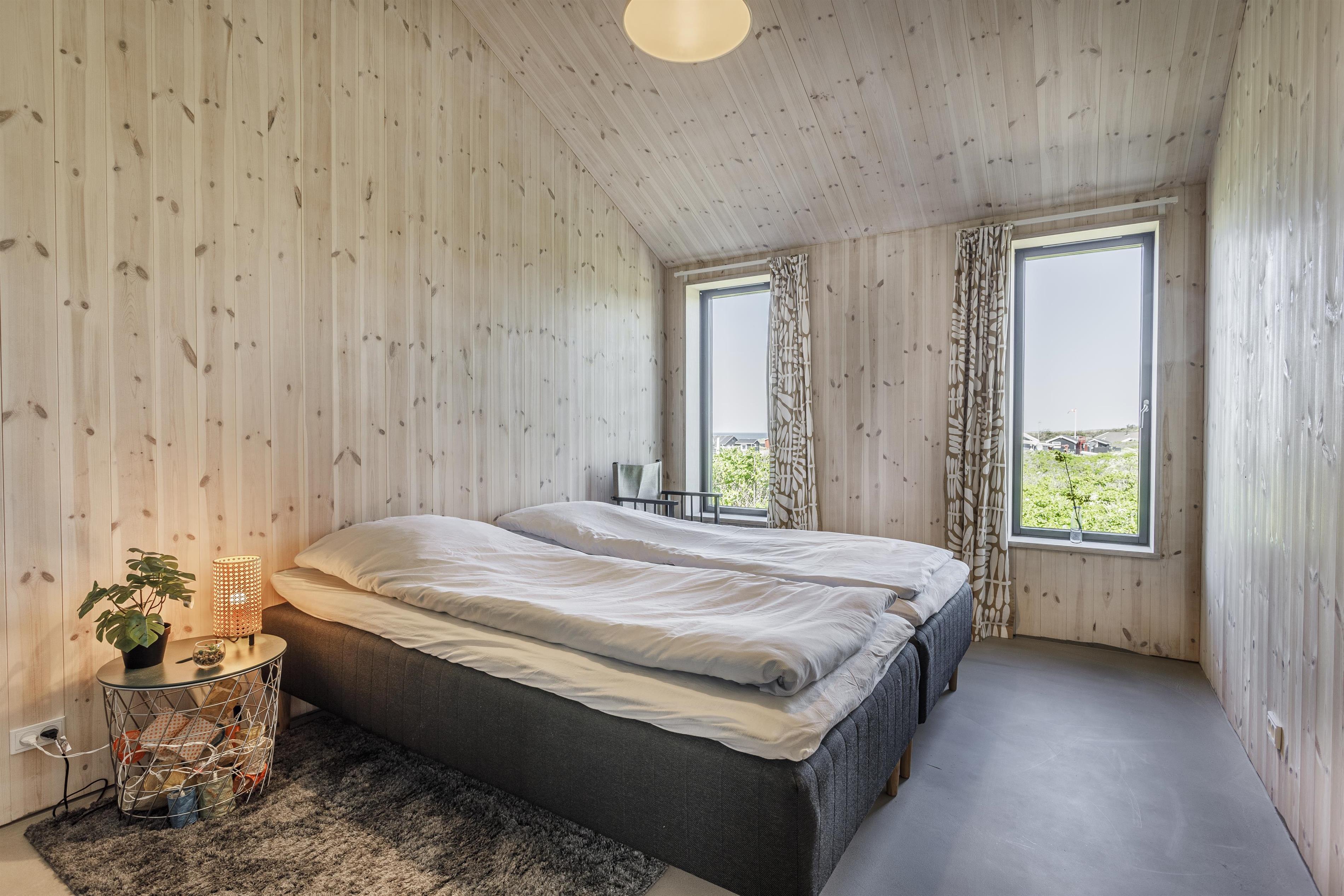 Das Haus ist gut durchdacht mit einem geräumigen Eingangsbereich, einem großen Wohn- und Küchenbereich sowie drei großen Schlafzimmern, alle mit Doppelbetten und Meerblick. Die zwei Badezimmer des Hauses befinden sich in der Nähe der Schlafzimmer, wobei das Hauptschlafzimmer direkten Zugang zu einem eigenen Bad hat. Die Verbindung des Hauses mit der umliegenden Natur war bei der räumlichen Gestaltung des Hauses von höchster Priorität. Alle Räume sind sehr geräumig und haben hohe Decken. Die großen Panoramafenster im Hauptschlafzimmer, Wohnzimmer und Küchenbereich verstärken das Zusammenspiel zwischen Innenräumen und Natur. Die Fenster wirken wie große Gemälde in den schönen Räumen, und das Wetter sorgt dafür, dass kein Tag dem anderen gleicht, was den Ausblick betrifft. Vom Wohnzimmer aus haben Sie Zugang zu zwei schönen Terrassen, einer überdachten, nach Westen ausgerichteten Terrasse und einer nach Süden offenen Terrasse, auf denen Sie je nach Sonne und Wind verweilen können. An kühlen Abenden können Sie den Kamin anzünden und die Wärme und Aussicht vom Wohnzimmer aus genießen.