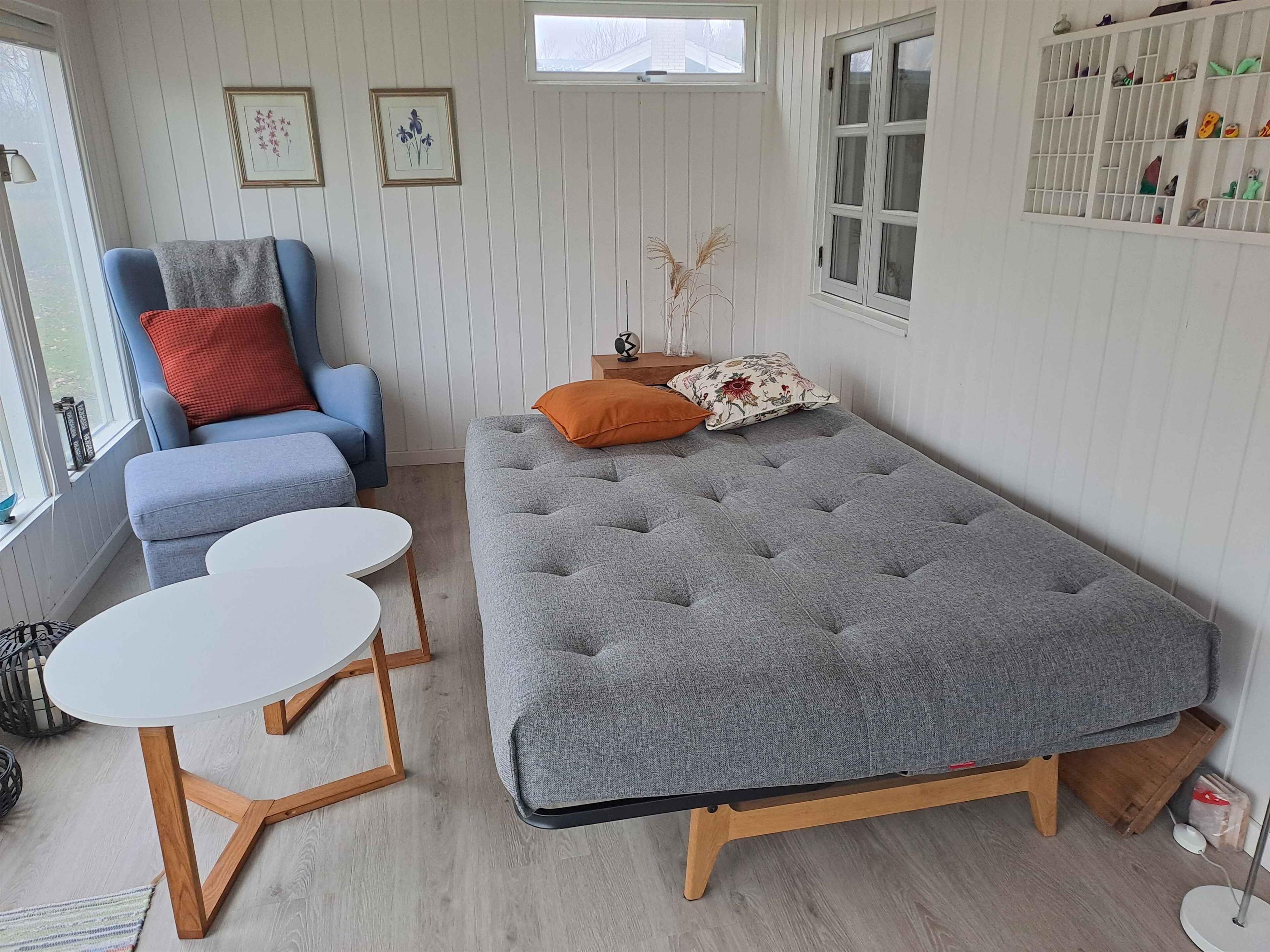 Vogelgezwitscher, Natur, Ruhe, Spaziergänge an Wald und Strand, Brettspiele und Grillabende. Haus von 1980, renoviert 2021–2024 inkl. neuer Küche. 2 Schlafzimmer und Wintergarten mit Schlafsofa, alle Betten 200×140 cm.