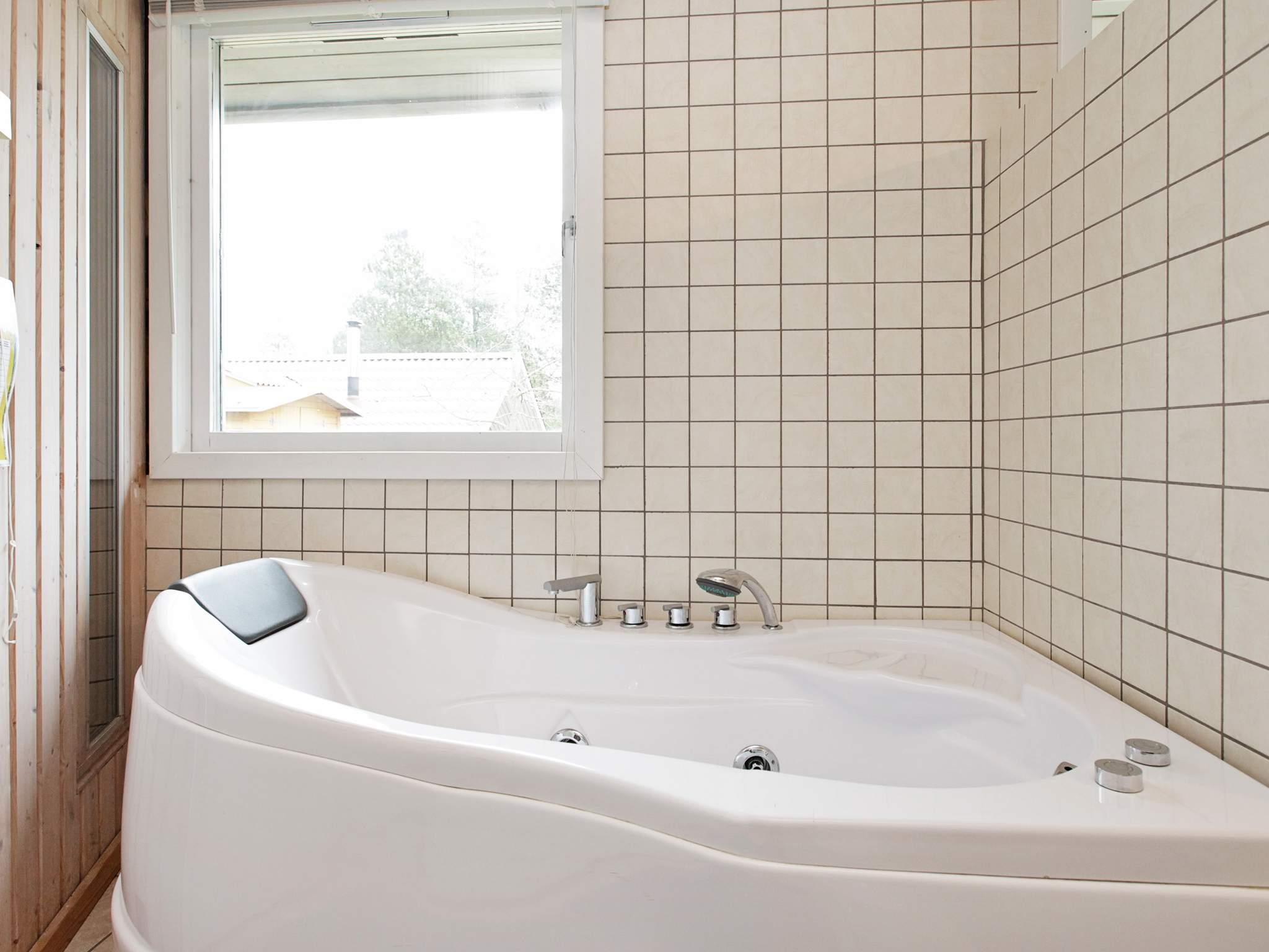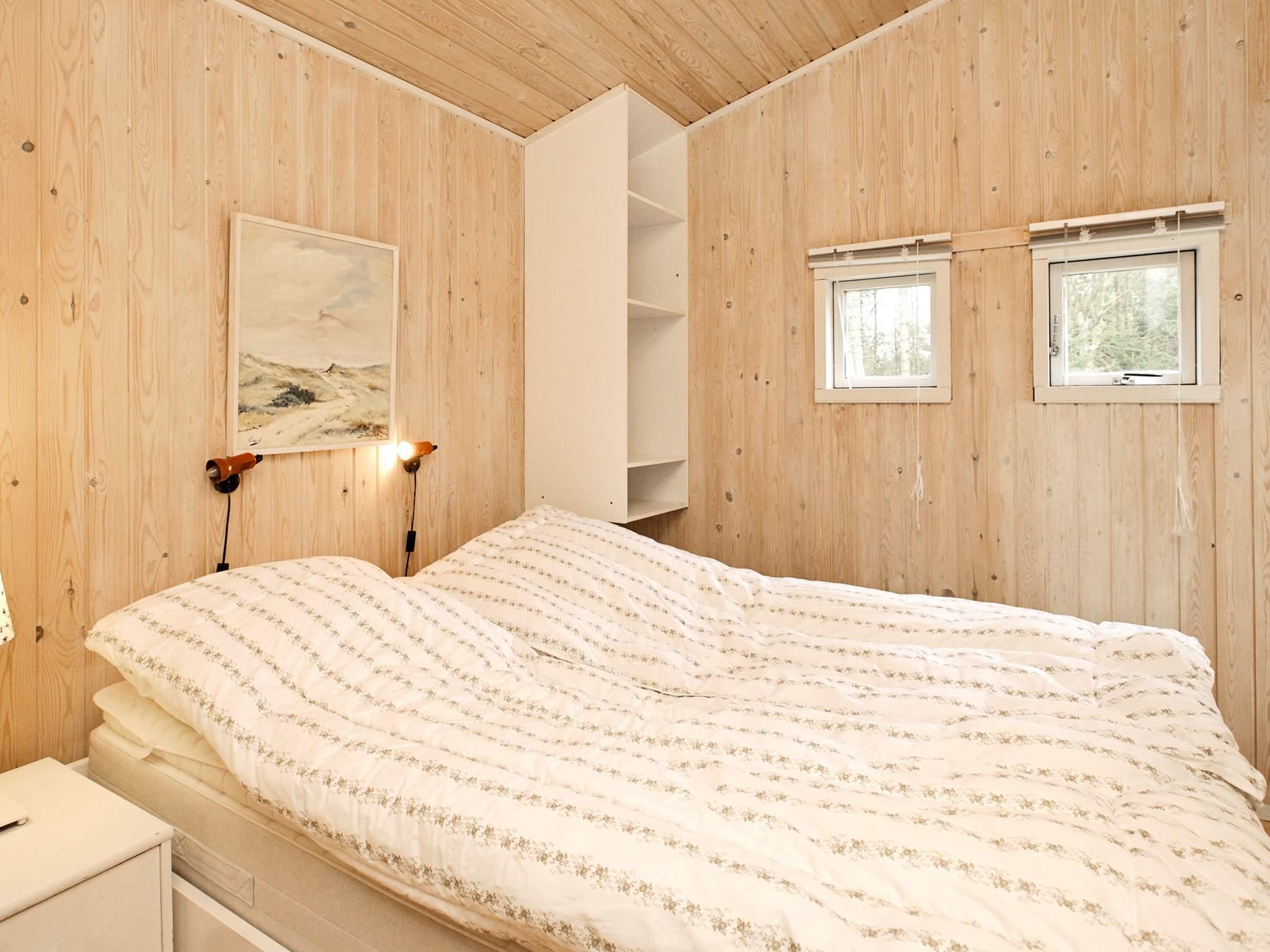 Ferienhaus in ruhiger Umgebung bei Napstjert Strand, zu dem Sie freien Zugangn über einen kleinen, gemeinschaftlichen Pfad haben. Das helle eingerichtete Haus hat ein geräumiges Bad mit Whirlpool und Sauna für Wellness und Erholung. Im offenen Küchen-/Wohnbereich gibt es eine Sitzecke mit TV und Holzofen für kühlere Abende. Vom Sofa aus können Sie die Aussicht auf die umliegende Natur durch die großen Fenster hindurch genießen. Das Naturgrundstück ist eingezäunt.