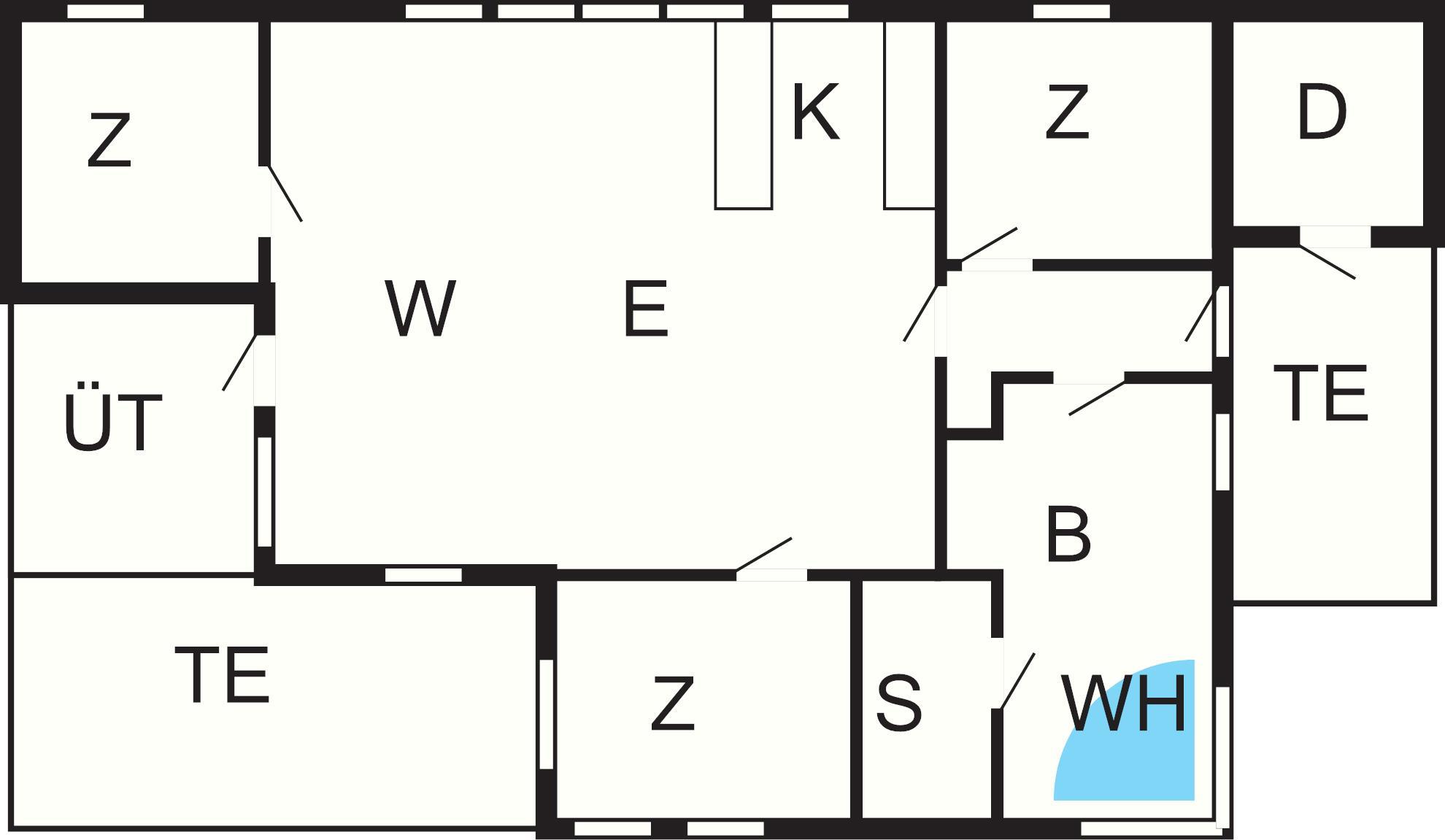 Bad: WC, Waschb., Dusche, Fußbodenheiz.