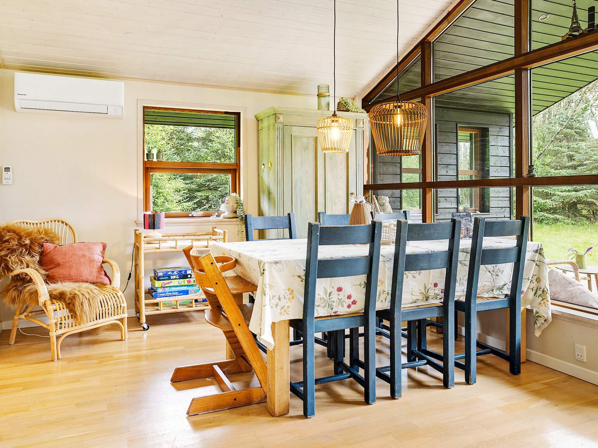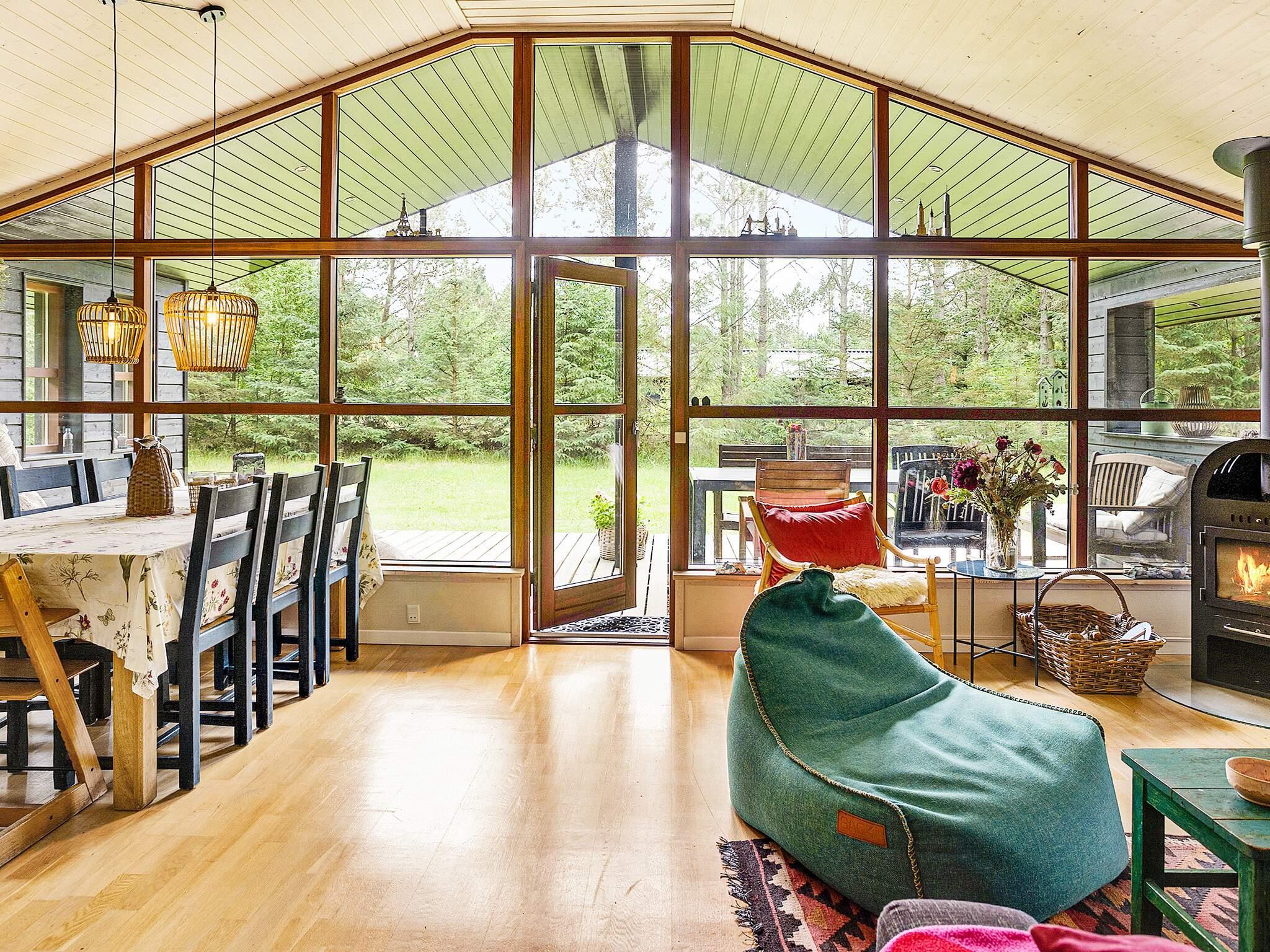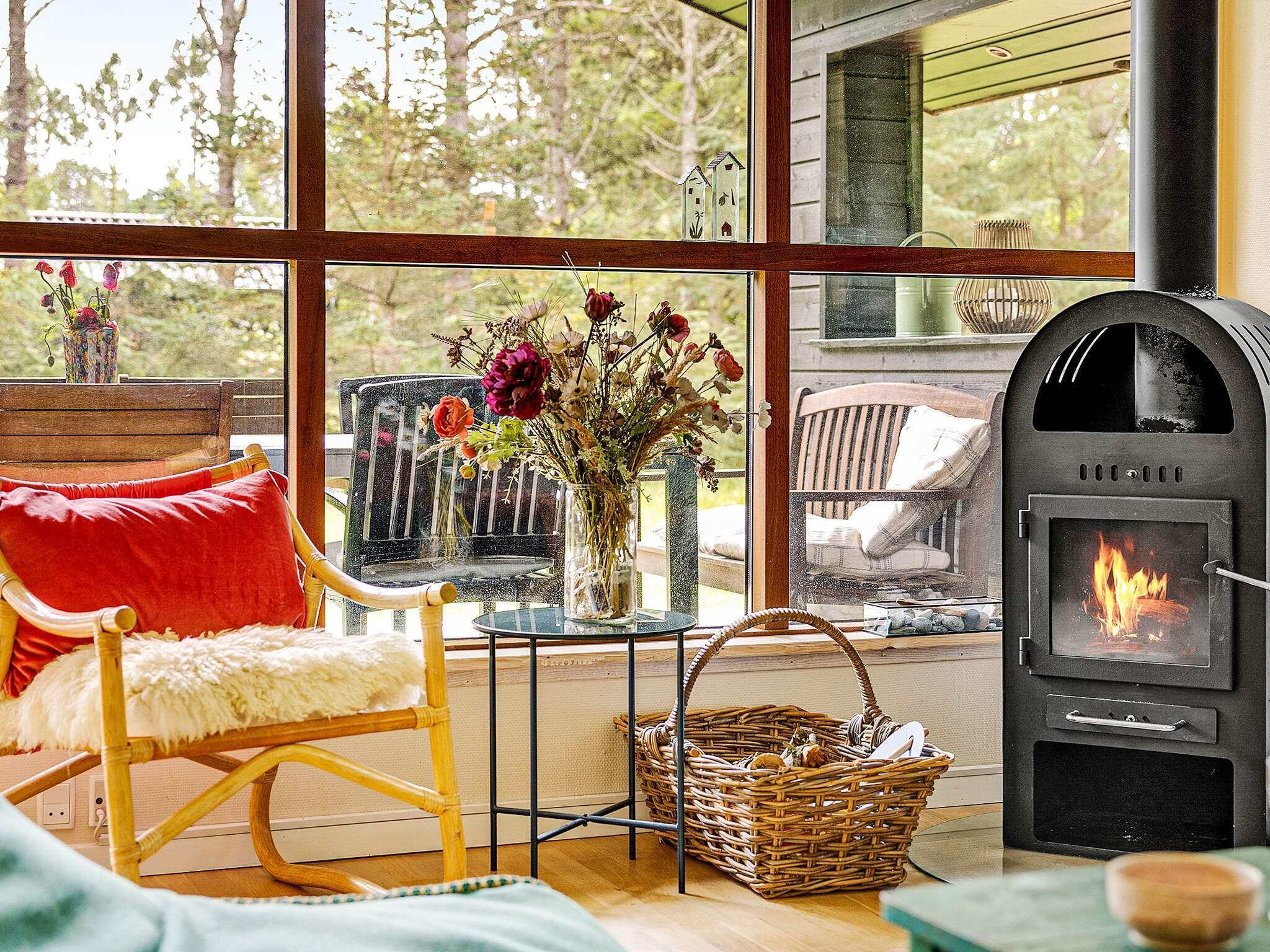 Dieses schöne Sommerhaus bietet den idealen Rahmen für einen fantastischen Urlaub mit Familie oder Freunden und ist ideal für 6 Personen. Im Inneren finden Sie moderne Möbel, hohe Decken und viel Licht. Die großen Fenster sorgen für viel Licht und bieten einen Blick auf die Bäume und Sträucher des Naturgrundstücks. Das Haus besteht aus einem Badezimmer, drei schönen Schlafzimmern, einem kleinen Dachboden, einem Flur mit Waschmaschine sowie einer Küche und einem Wohnzimmer. Der Wohnbereich, bestehend aus einer offenen Küche und einem Wohnzimmer, ist ein großer Raum mit hohen Decken und bietet viel Platz, wenn Sie sich um den Esstisch versammeln möchten. Oder Sie entspannen sich mit einem guten Buch oder Film auf dem Sofa und heizen den Holzofen an, um sich an einem kalten Abend schnell aufzuwärmen. Die Terrassen rund um das Haus bieten viel Schutz, Schatten und die Möglichkeit, sich mit der Sonne zu bewegen. Es gibt auch eine große überdachte Terrasse. Das Ferienhaus ist außerdem mit einer Luft-Luft-Wärmepumpe ausgestattet, die minimale Heizkosten gewährleistet. Das Haus verfügt über +50 GB WLAN und Chromecast für TV.