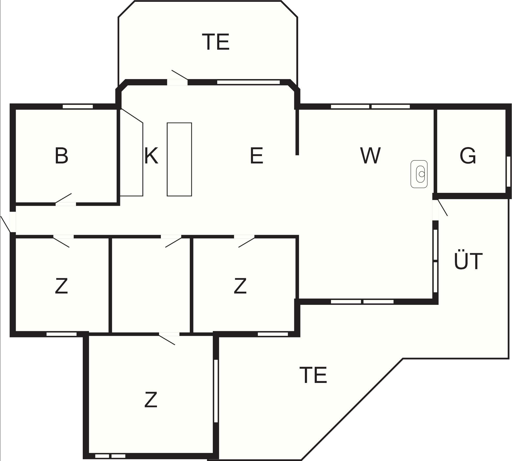 Und: Terrasse, überd. Terrasse, E-Heiz., Solarenergie, Luft-Luft-Wärmepumpe, Grill, Naturgrundst. m. Bäumen 3000 m2, gemütliche Möblierung, Ferienhausgebiet, Nichtraucherhaus