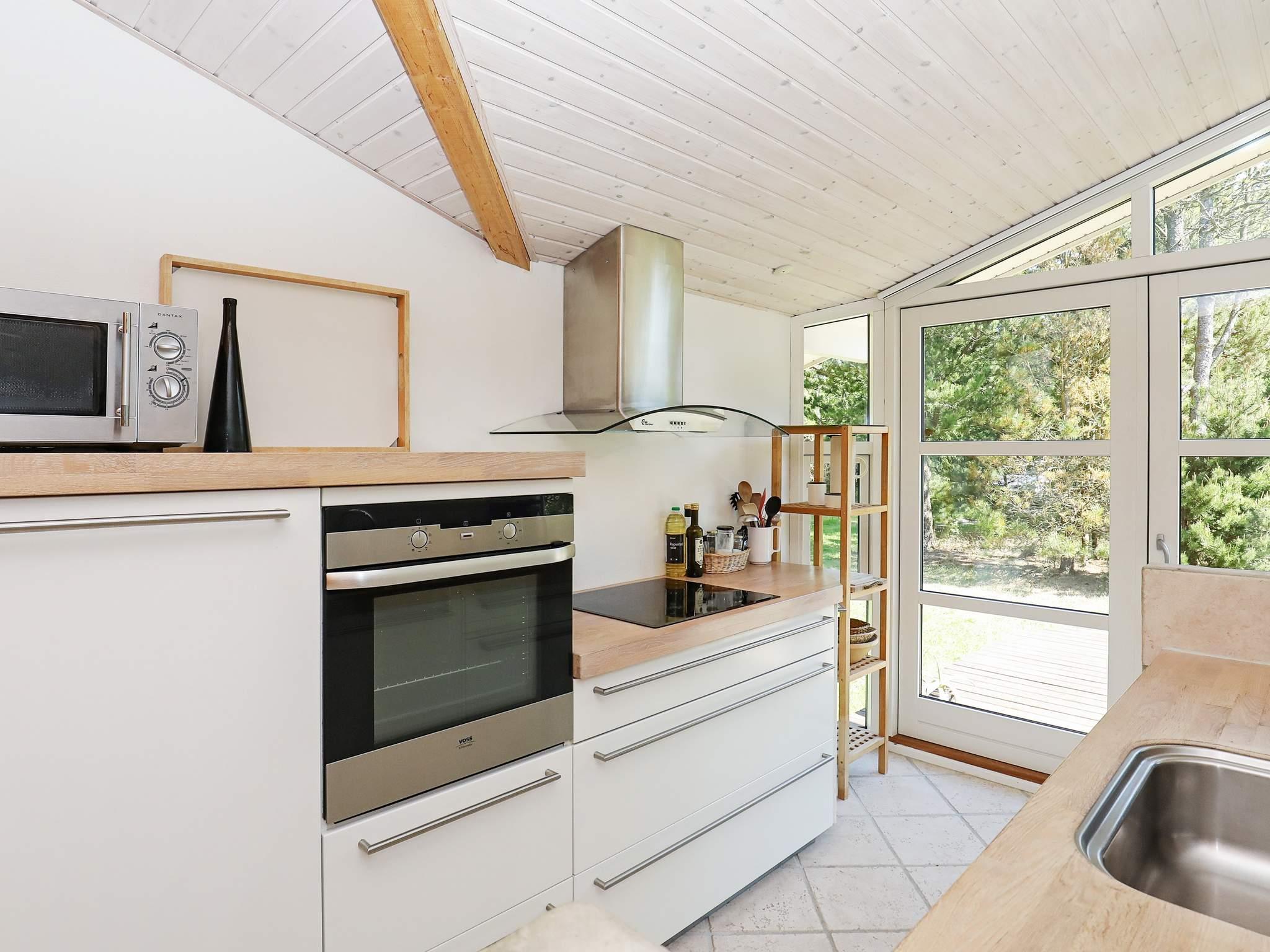 Das Ferienhaus bietet u.a. einen gut ausgestatteten Küchen-/Wohnbereich mit guten Lichtverhältnissen und angenehmer Fußbodenheizung. Zur Erwärmung gibt es im Haus sowohl eine klimafreundliche Wärmepumpe als auch Solarenergie. Außerdem gemütlicher Holzofen im Wohnbereich. Drei Schlafzimmer mit je zwei Schlafplätzen in Betten, eines davon mit direktem Zugang zur Terrassenfläche. Das Bad ist geräumig und mit Fußbodenheizung und Waschmaschine ausgestattet. Draußen auf dem Naturgrundstück können Sie sich ungestört aufhalten und sonnige sowie windgeschützte Plätze finden.