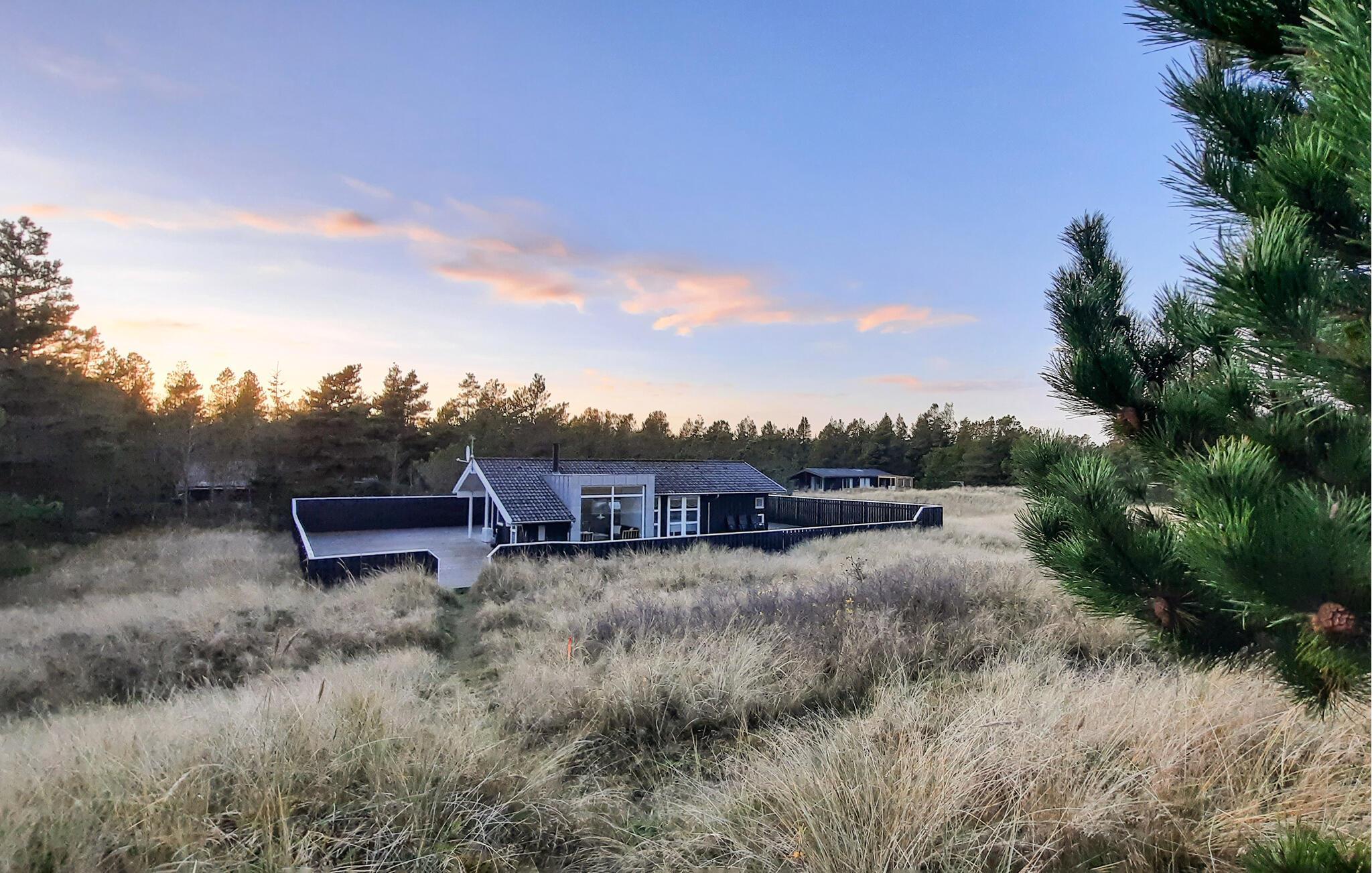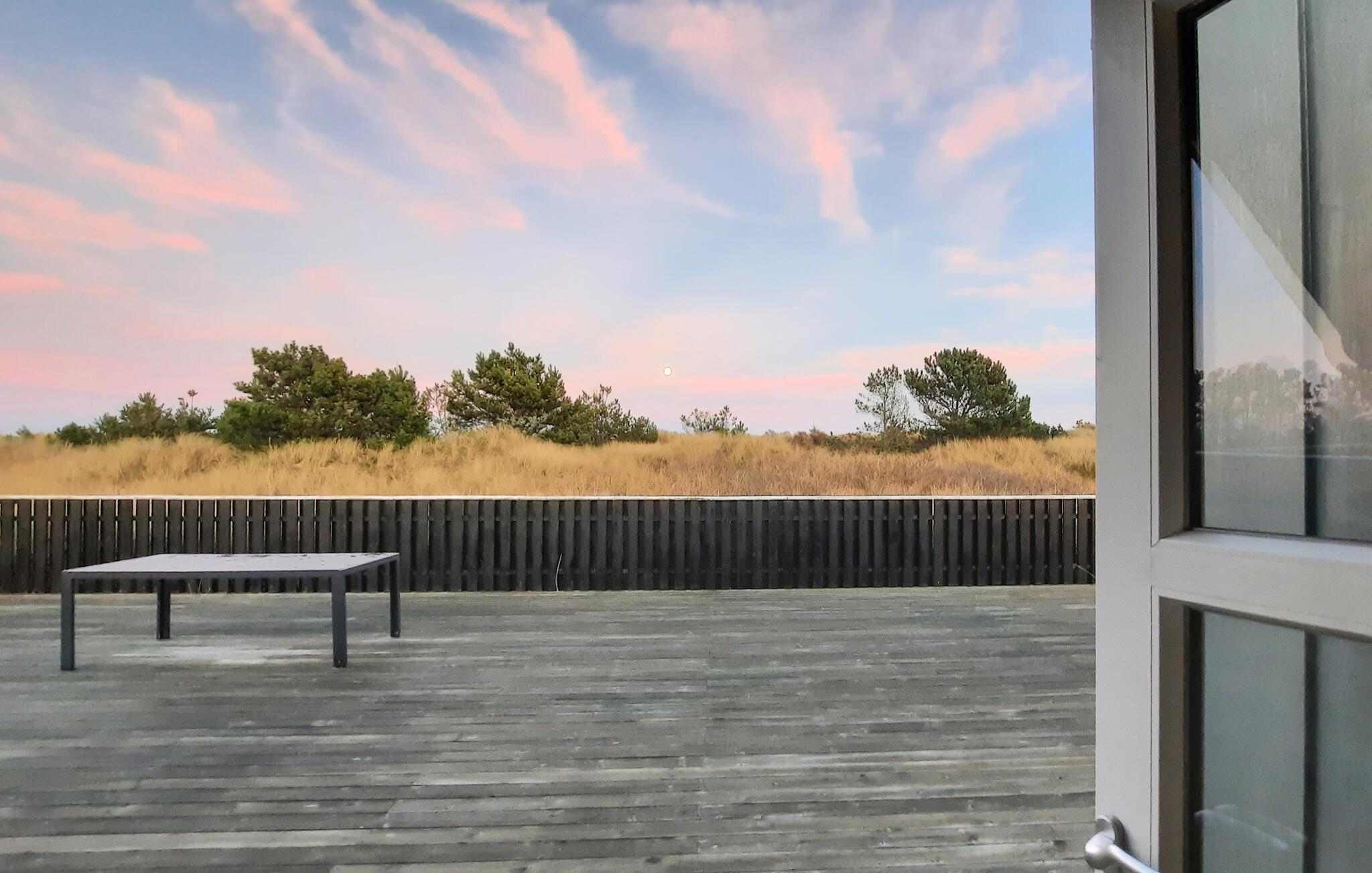 Stilvolles Ferienhaus in den Dünen von Napstjert mit Kamin, Terrasse und Meerblick für erholsame Urlaubstage.