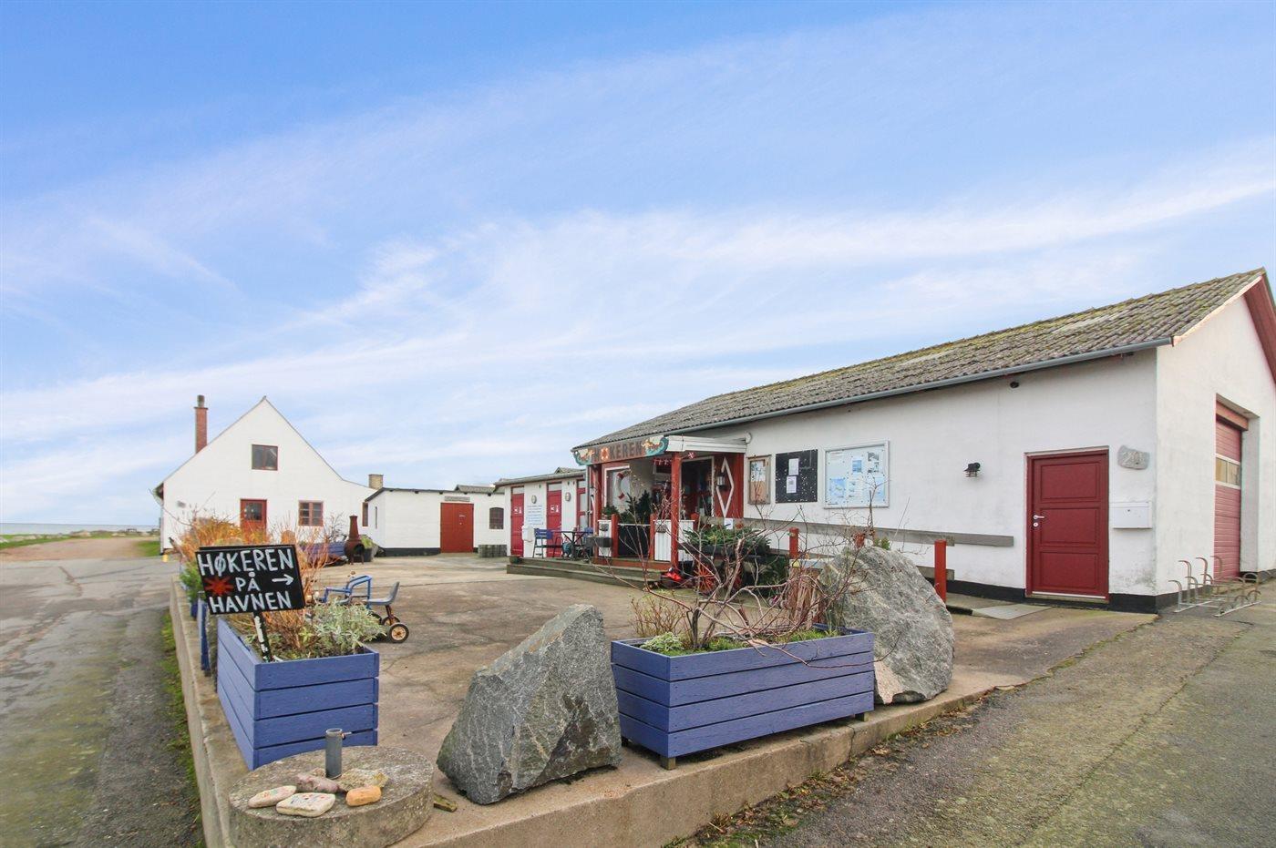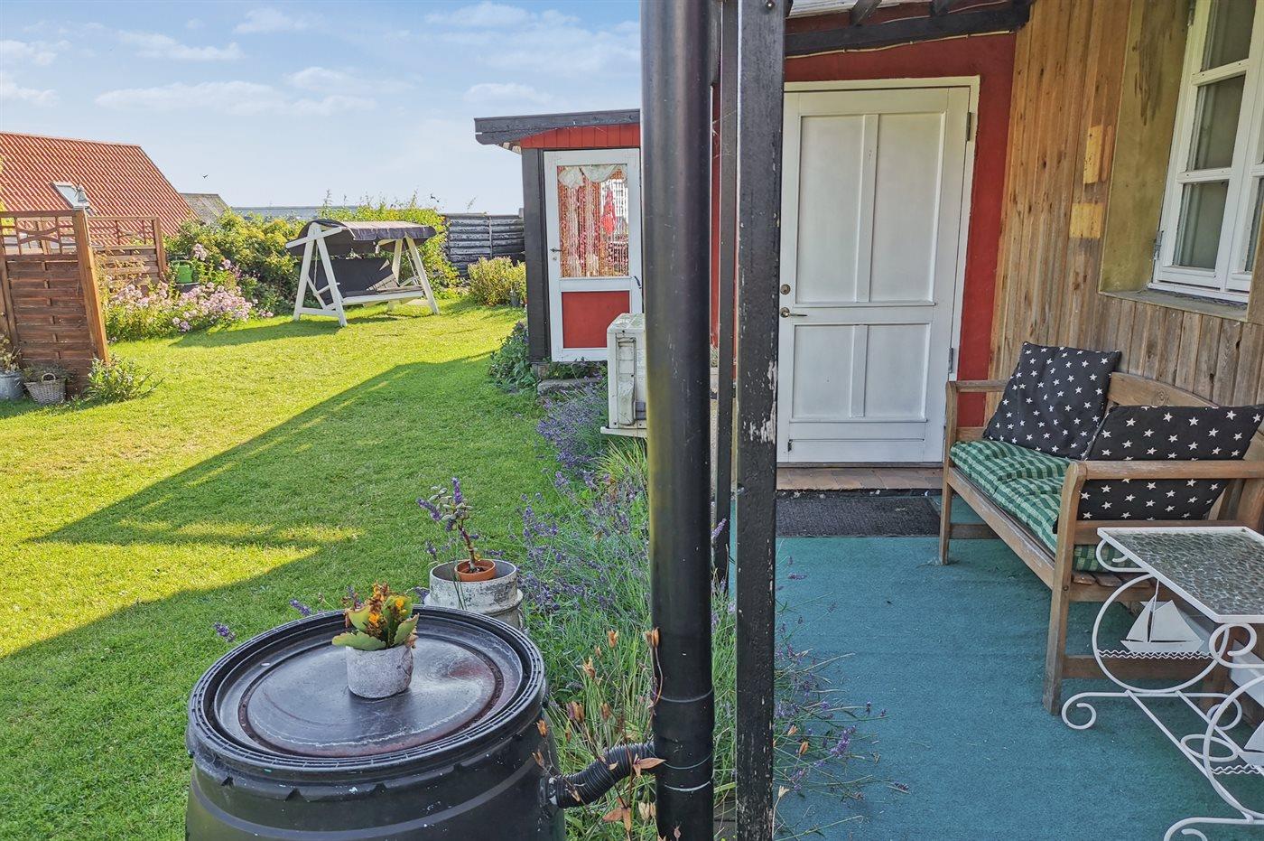 Im großen Gemeinschaftsbereich unterhalb des Hauses findet man sowohl einen Spielplatz für Kleinkinder als auch gute Bademöglichkeiten in den Felsen und eine Reihe von Boulebahnen. Der kleine Hafen ist im Sommer voller Leben - Mikkellers Burgerbar, Gorms Pizza und sogar eine kleine Sommerbar haben ihren Weg in das Hafengebiet gefunden, das auch eine Sauna bietet.