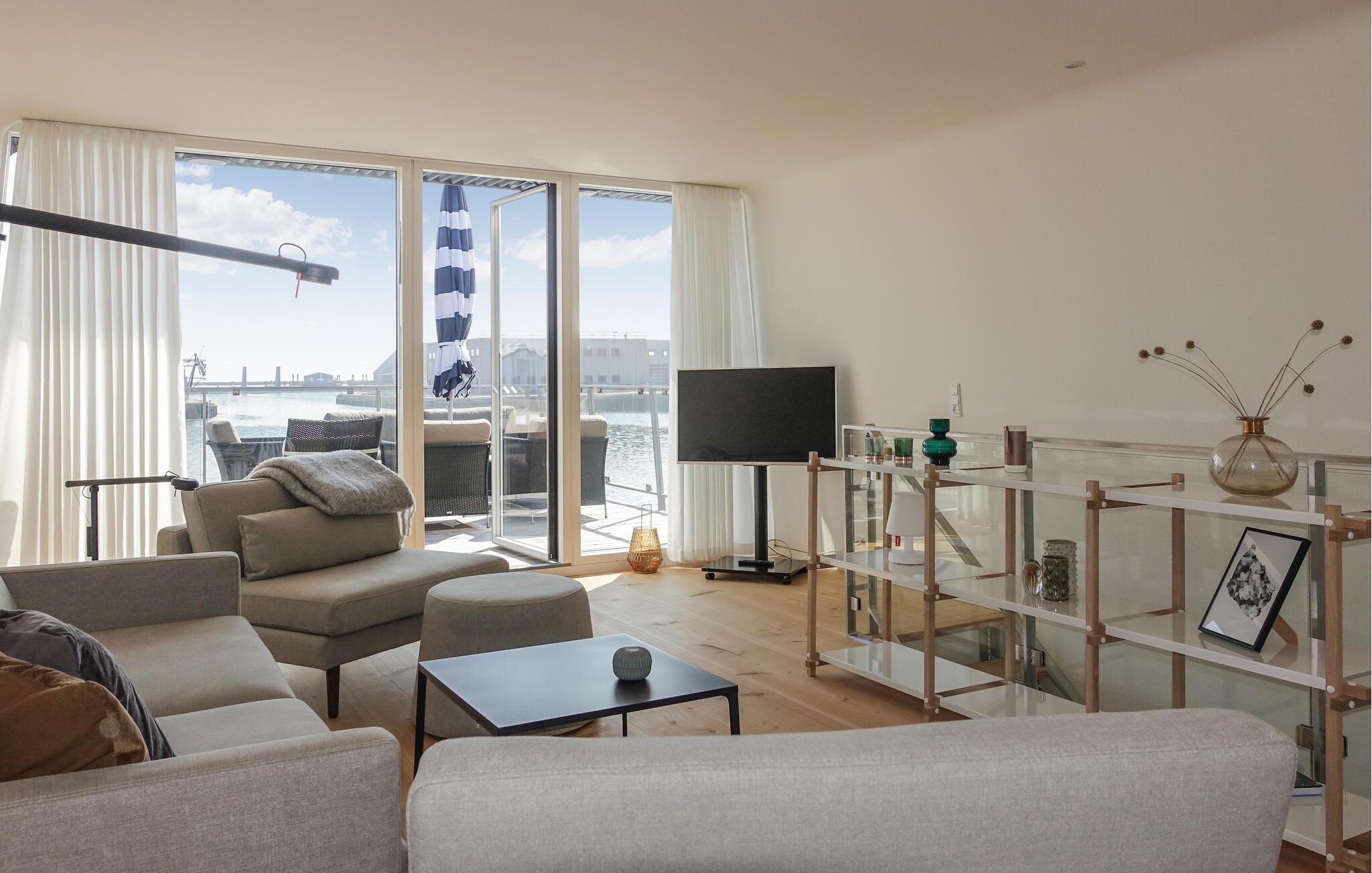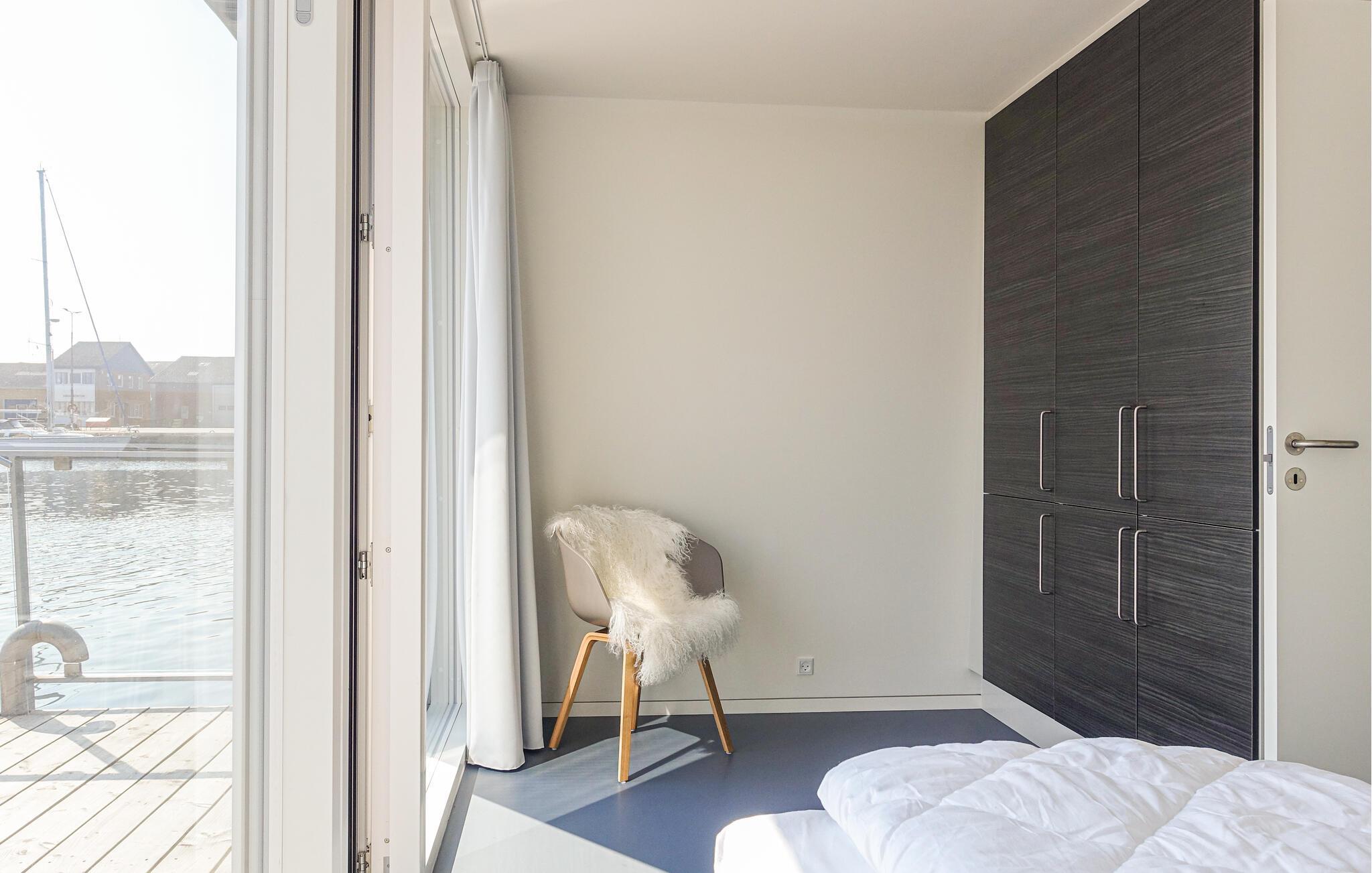 Modernes und gemütliches Hausboot in Nexø mit Terrasse, Meerblick und voll ausgestatteter Küche für entspannte Urlaubstage.