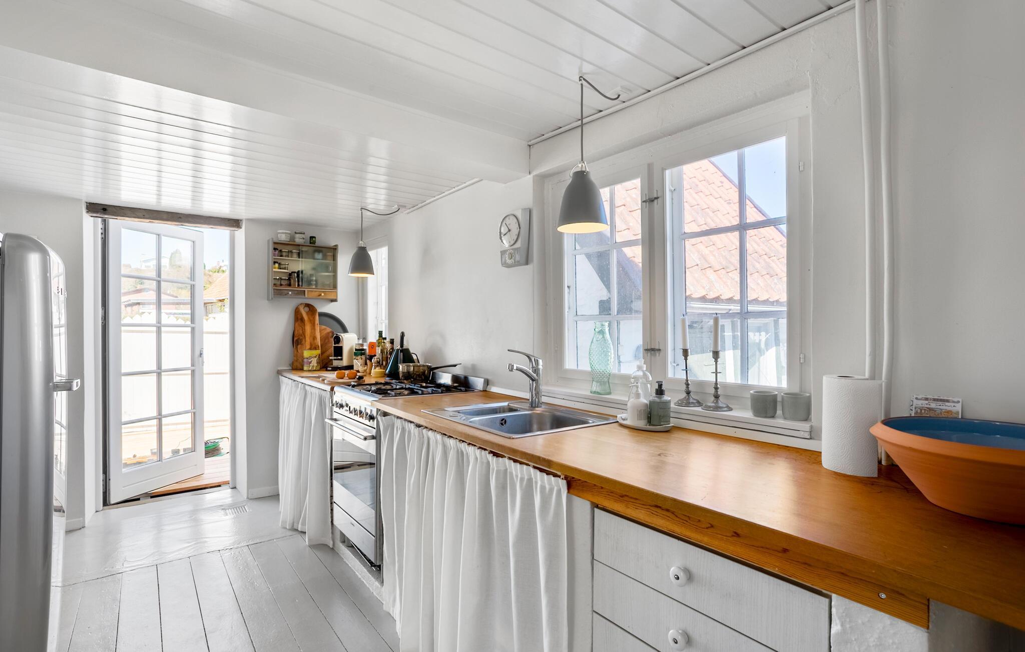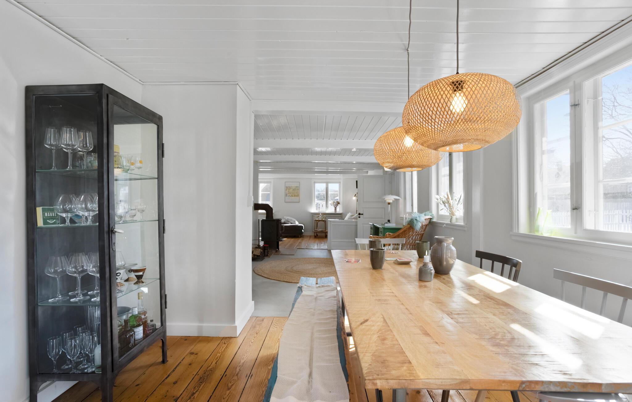 Dieses Ferienhaus bietet Ihnen eine charmante Mischung aus Tradition und individuellem Stil. Machen Sie es sich in den heimelig eingerichteten Räumen gemütlich. Entspannen Sie auf dem großen Sofa, schmökern Sie in einem Buch oder genießen Sie einfach eine ruhige Pause. Die Einrichtung mit Holzböden, hellen Wänden und passenden Farbakzenten schafft eine warme, persönliche Atmosphäre. Nehmen Sie Ihre Mahlzeiten am langen Esstisch ein oder frühstücken Sie in der schönen Küche, die durch zahlreiche liebevolle Details überzeugt. Auch auf dem Schlafboden lässt es sich gemütlich verweilen. Oder gehen Sie die Treppe hinauf in das Obergeschoss des Hauses, genießen Sie von dort den Meerblick und lassen Sie sich vom Licht der Ostsee verzaubern.