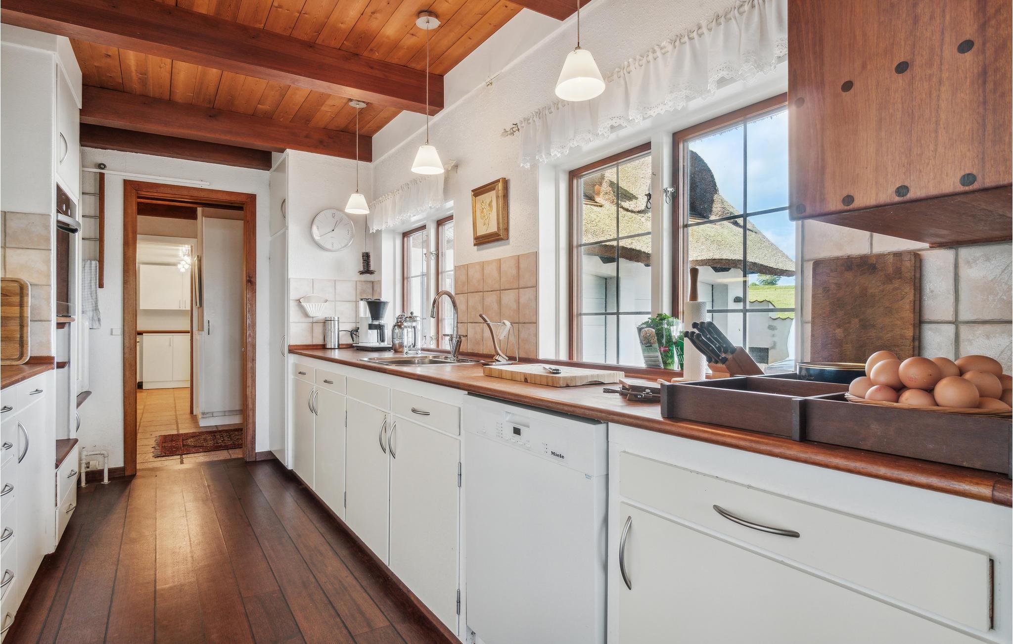 Freuen Sie sich auf einen schönen Urlaub in diesem schönen reetgedeckten Fachwerkhaus etwas außerhalb von Nexø auf dem Land. Die Ferienwohnung befindet sich im Erdgeschoss und bietet einige gemütliche Zimmer mit einigen schönen Details, nicht zuletzt die attraktiven Decken aus Holz. Das Schlafzimmer mit seinem Kamin ist besonders stimmungsvoll.