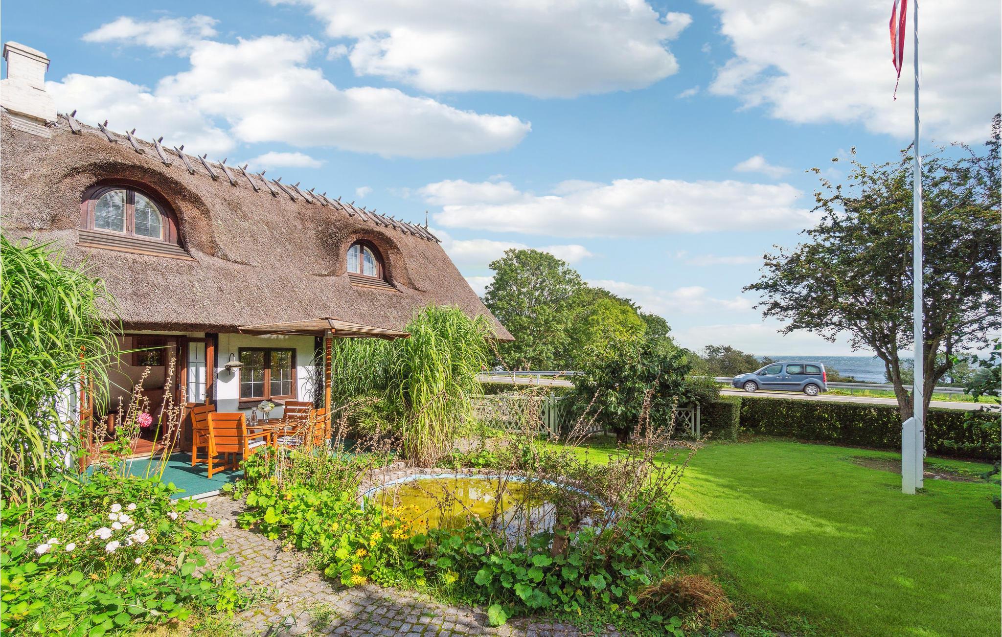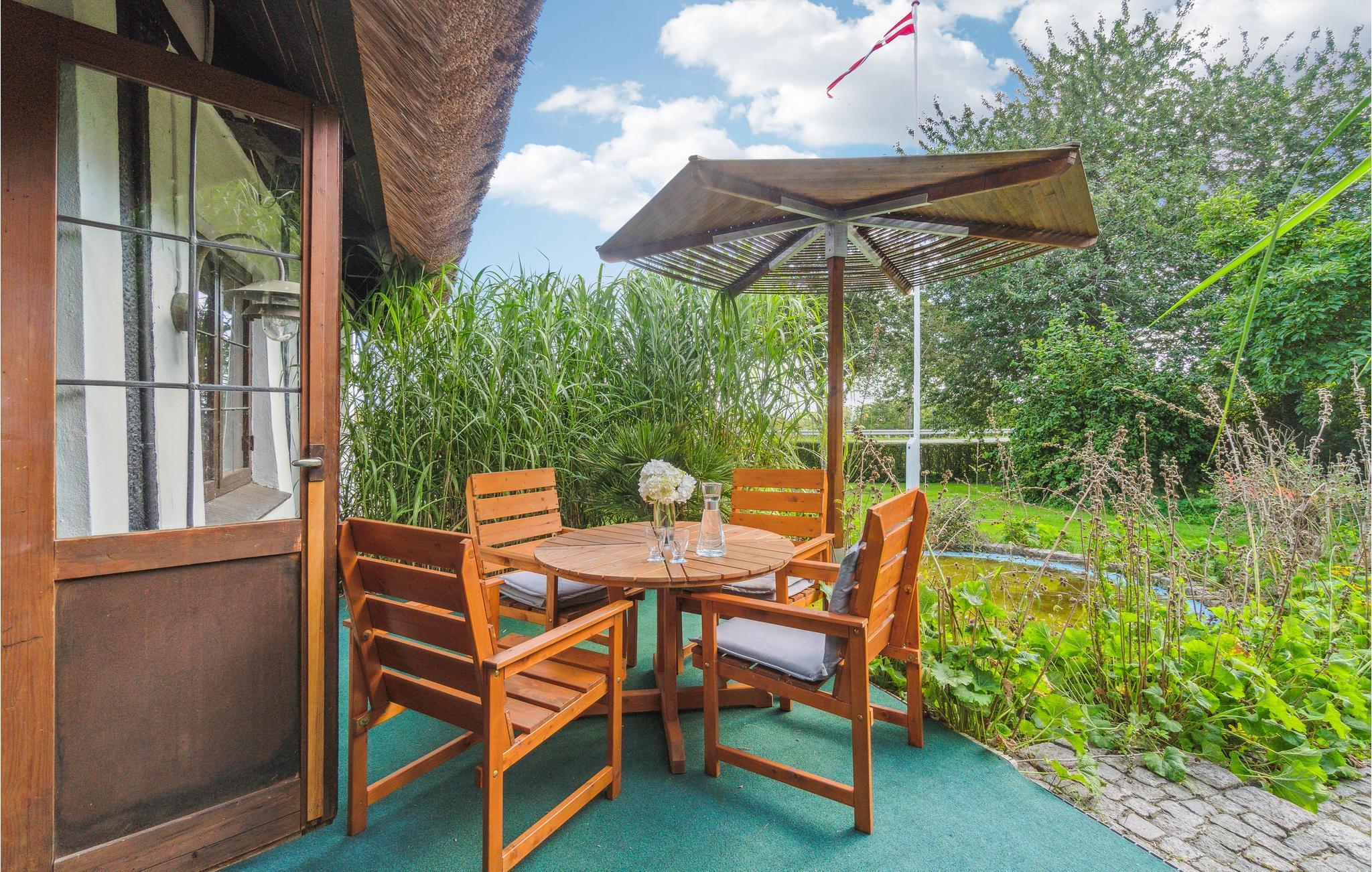 Charmantes reetgedecktes Fachwerkhaus mit Kamin, Meerblick und Garten nahe Nexø bietet gemütliche Atmosphäre und Ruhe.
