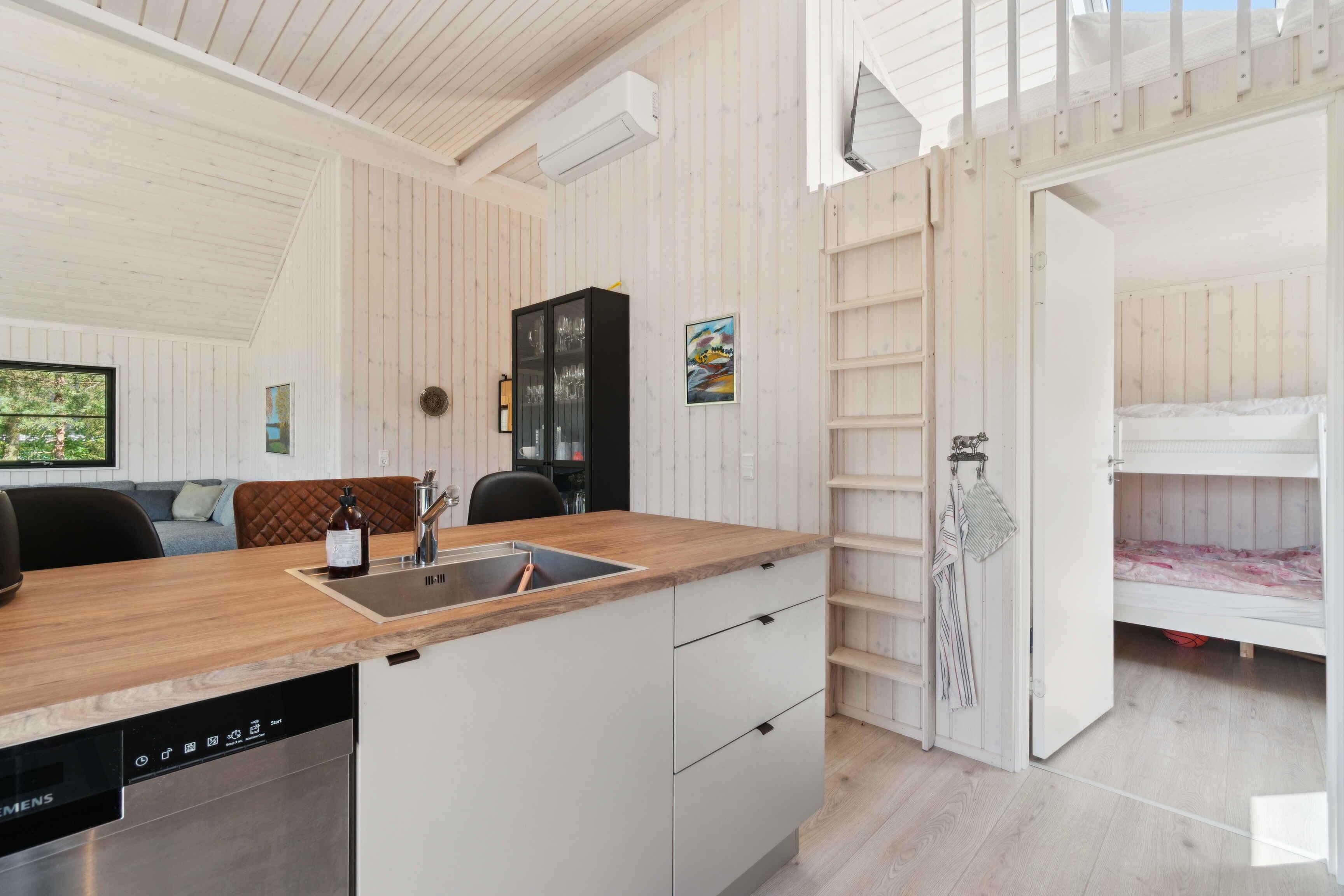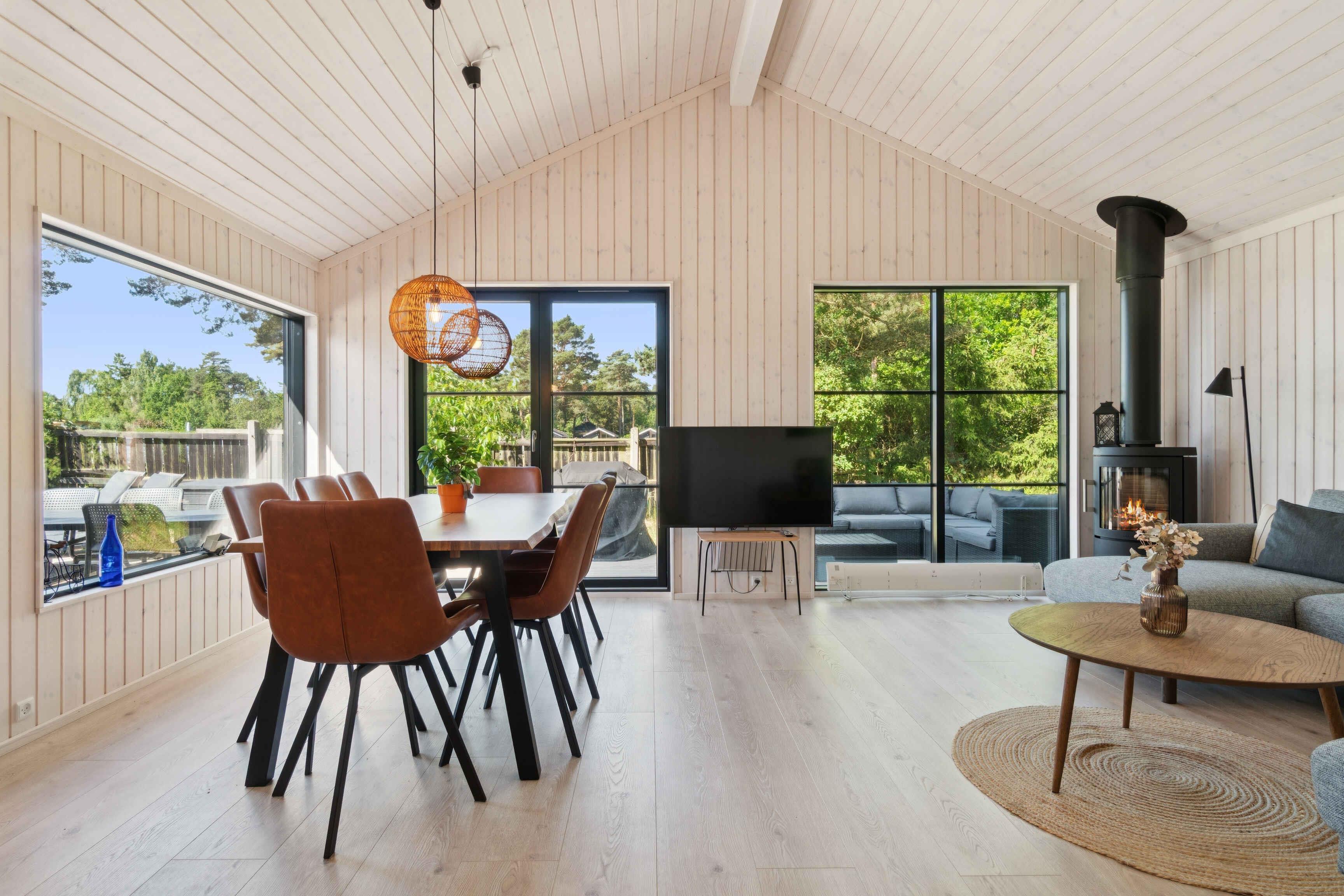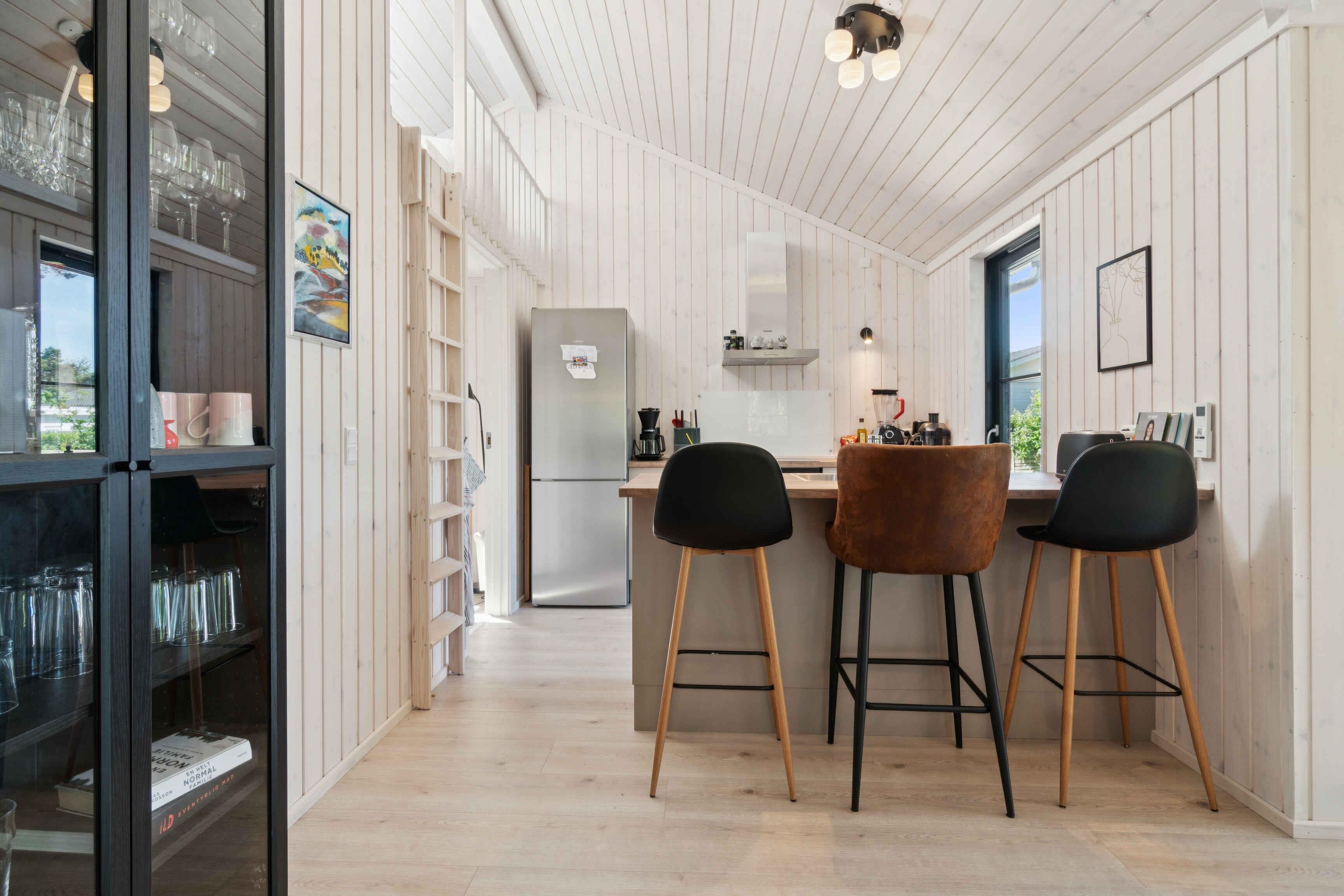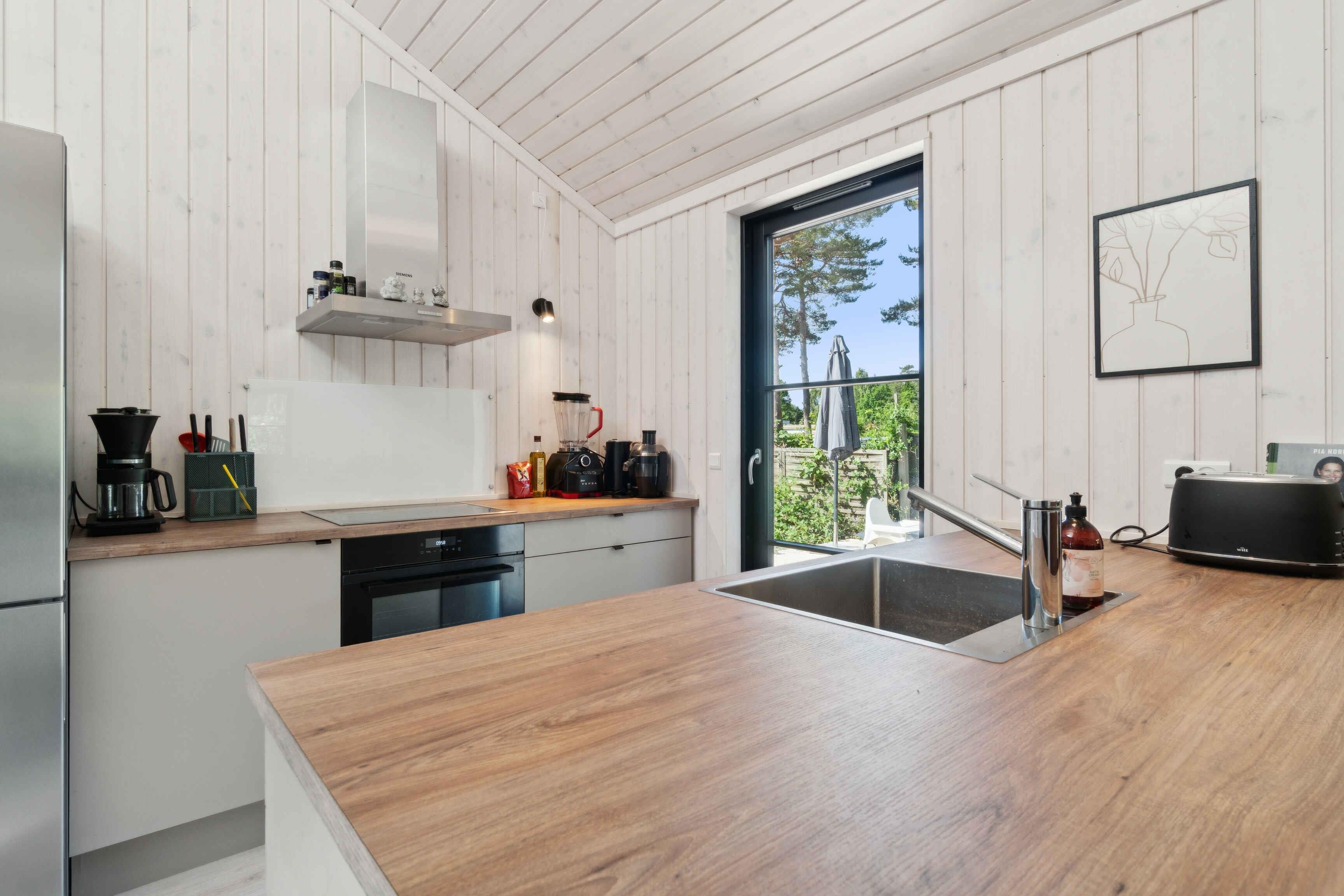 Freut euch auf einen erholsamen Urlaub in diesem modernen Ferienhaus in Strandnähe. Entspannt euch in stilvoller Umgebung mit großen Fenstern, viel Licht und herrlicher Aussicht. Bereitet köstliche Mahlzeiten in der einladenden Küche und genießt das gemütliche Wohnzimmer. Spürt die Wärme des Holzofens beim Lesen oder verbringt Abende mit Brettspielen und Plaudereien über den Tag. Der geräumige Außenbereich mit Holzterrasse lädt zur Entspannung und gemeinsamen Aktivitäten ein. Beginnt den Tag mit einer erfrischenden Außendusche, frühstückt an der klaren Meeresluft und beendet ihn mit einem Grillabend. Bornholms Südküste ist ganzjährig reizvoll mit Kieferwäldern, weißen Sandstränden und Dünen. Balka und Snogebæk bieten pure Urlaubsfreude – von Sandstrand bis zum malerischen Hafen mit alter Holzpier, lebhaften Märkten, modernem Räucherhaus und der romanischen Povls Kirche. Ihr befindet euch an der Südostküste, nahe Nexøs Sehenswürdigkeiten und dem traumhaften Dueodde-Strand.