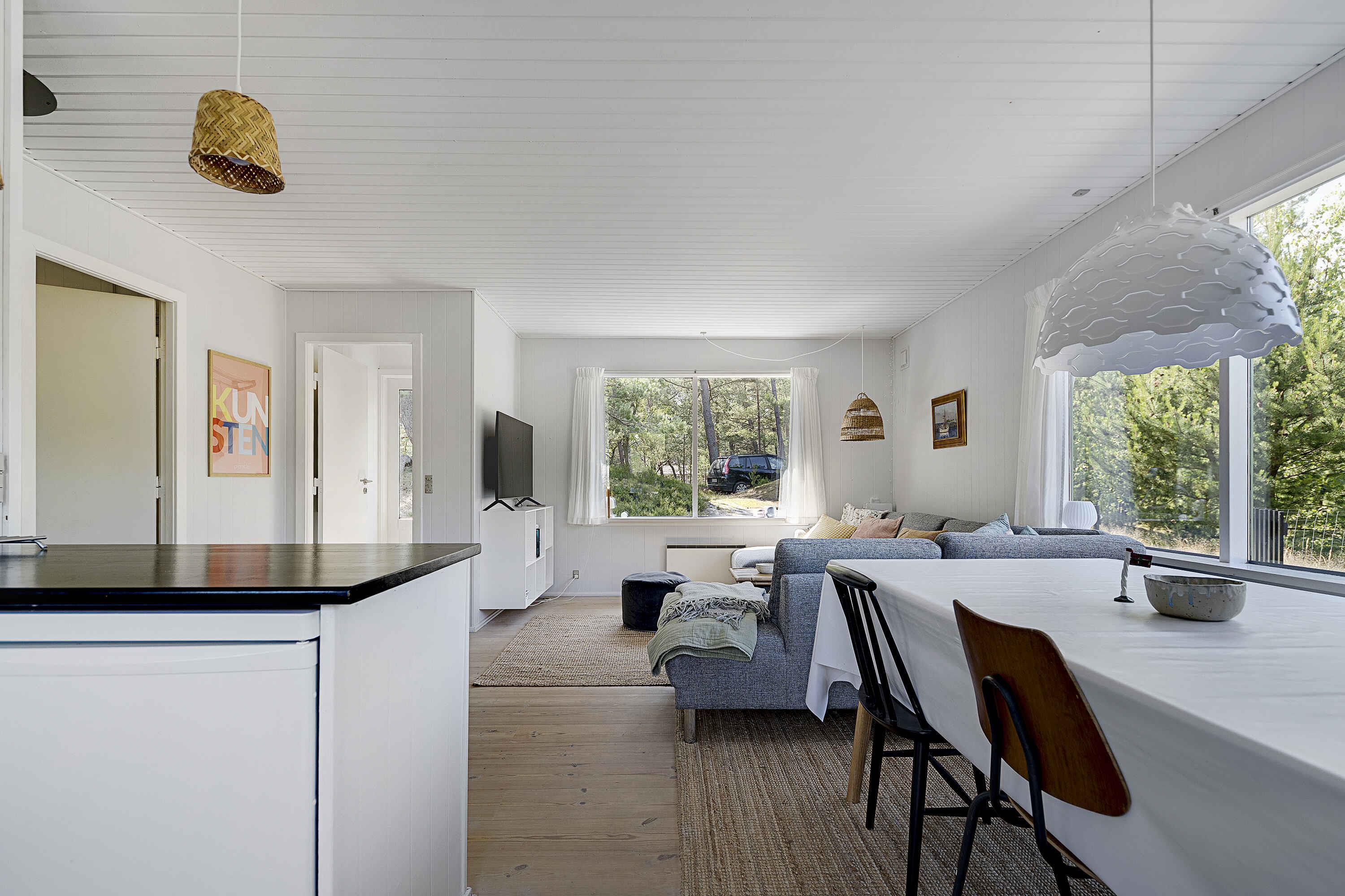 Willkommen in diesem charmanten Sommerhaus, idyllisch auf einem sonnigen und üppigen Naturgrundstück gelegen. Ein wunderschöner Sandstrand, der als einer der schönsten Dänemarks gilt, und eine bezaubernde Naturschönheit sind zu Fuß erreichbar. Dieses Ferienhaus finden Sie versteckt hinter dem Leuchtturm Dueodde, wo sich die majestätischen Dünen erstrecken. Im Inneren des Hauses erwartet Sie eine helle und gemütliche Atmosphäre, die Sie mit einer offenen Küche, einem gemütlichen Wohnzimmer und der Wärme des Holzofens umarmt. Das kürzlich renovierte Badezimmer sorgt für moderne Annehmlichkeiten. Mit insgesamt vier Schlafzimmern, aufgeteilt auf das Haupthaus und den Anbau, ist ausreichend Platz für alle vorhanden. Genießen Sie das Leben im Freien auf den beiden schönen Terrassen, die sowohl sonnige als auch schattige Bereiche bieten und sich bei jedem Wetter perfekt zum Entspannen eignen. Die Gegend ist ein Traum für Naturliebhaber mit wunderschönen Wegen zum Wandern und Radfahren. Die umliegende Wald- und Dünenlandschaft lädt zum Erkunden der herrlichen Natur ein. Wenn Sie Lust auf ein erfrischendes Eis oder ein köstliches Abendessen haben, können Sie in nur 15 Gehminuten die Gegend um Dueodde Fyr erreichen, wo eine Eisdiele und ein Restaurant auf Sie warten. Das Sommerhaus hat außerdem den Vorteil, dass es in der Nähe des charmanten Snogbæk liegt, wo Sie in den örtlichen Geschäften Ihren Einkaufswunsch erfüllen und die gemütliche Atmosphäre genießen können. Kommen Sie und erleben Sie einen fantastischen Urlaub in diesem wunderschönen Ferienhaus, in dem alle Zutaten für eine unvergessliche Zeit vorhanden sind. Achtung: Wird nicht für gewerbliche Nutzung vermietet.