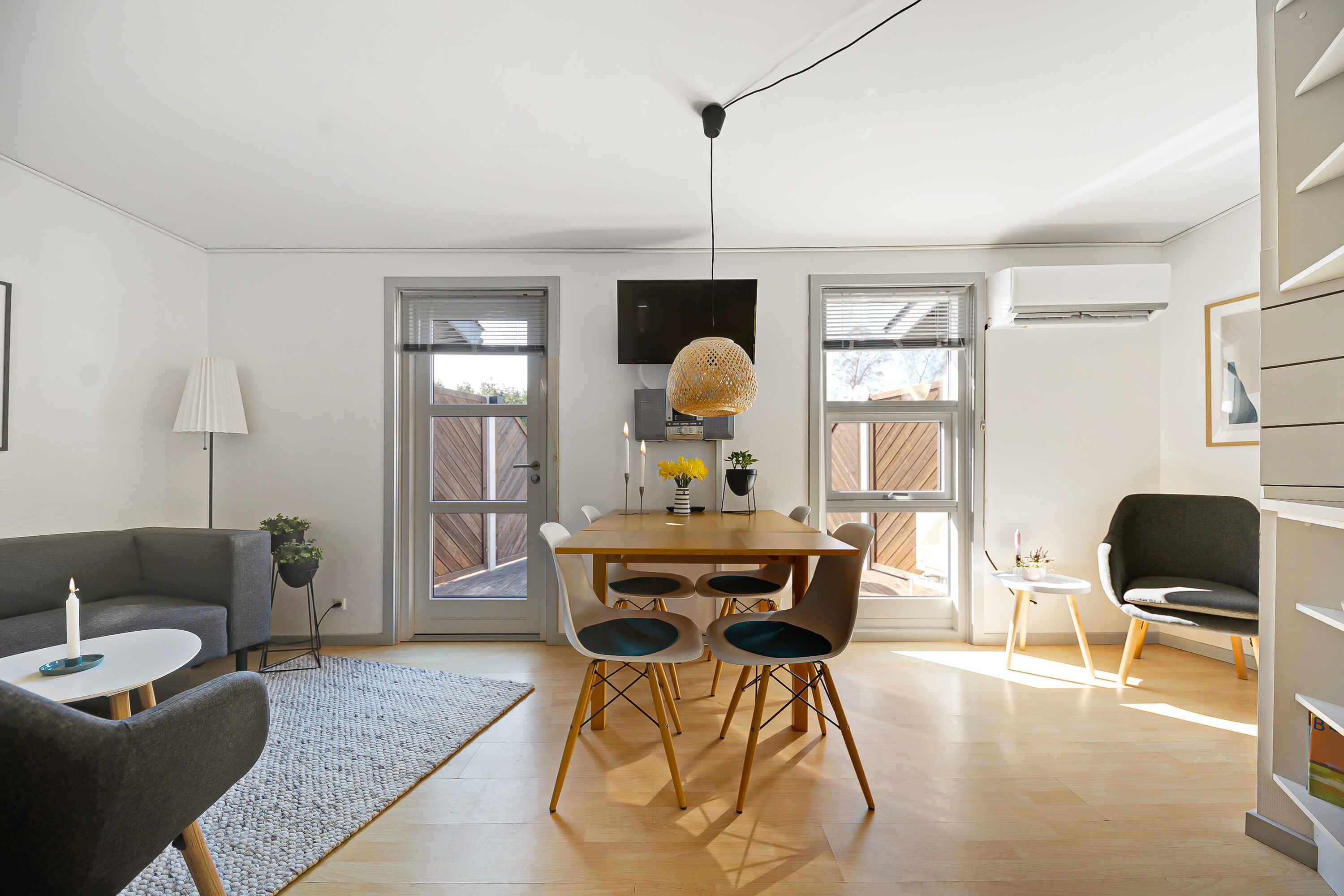 Wohnung in ruhiger Lage in der Nähe eines der besten Strände Bornholms. Das Hallenbad und die Sauna sind vom 01.04-24.10 geöffnet, das Freibad vom 20.06-29.08. Helle und moderne Einrichtung