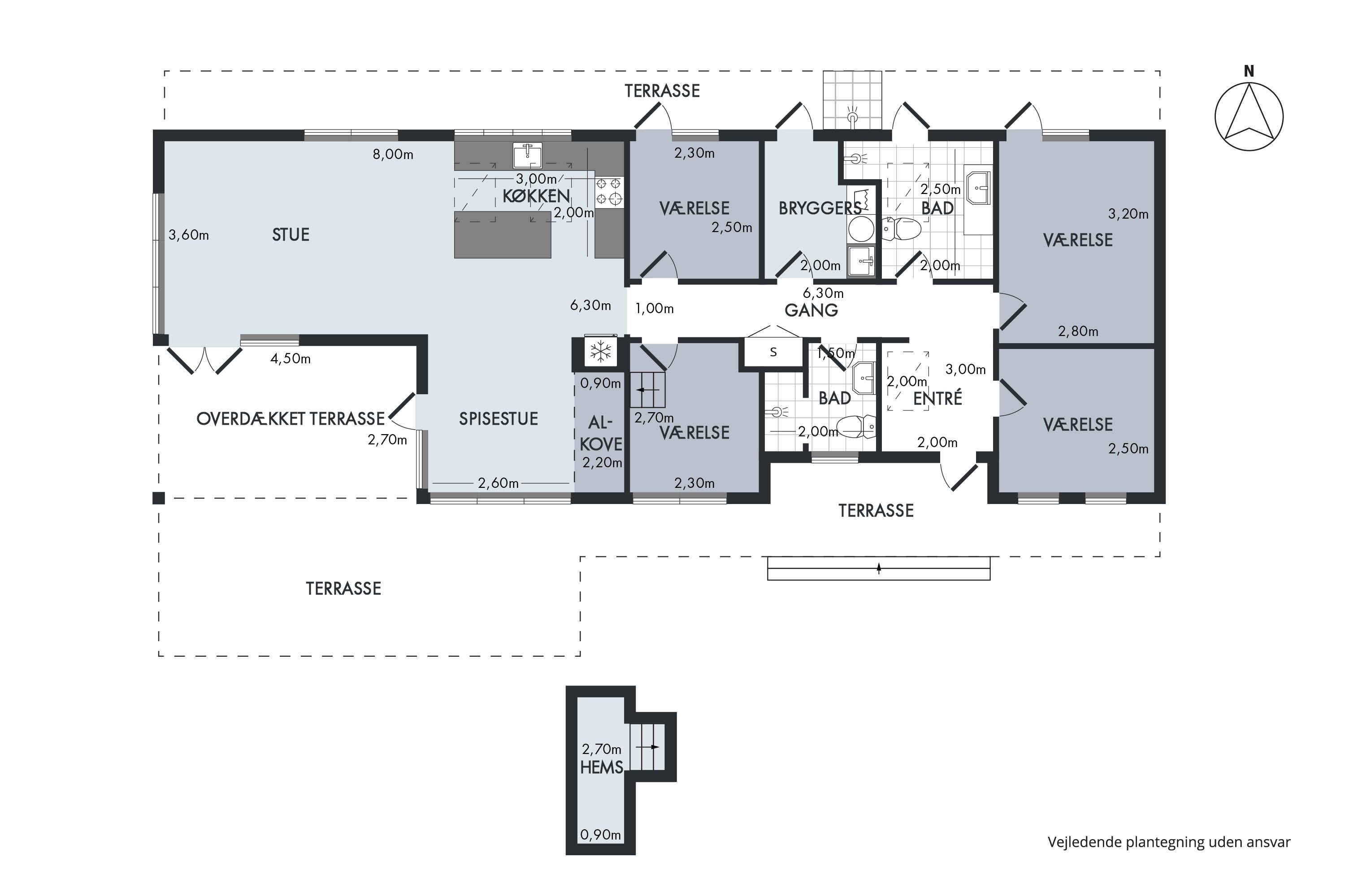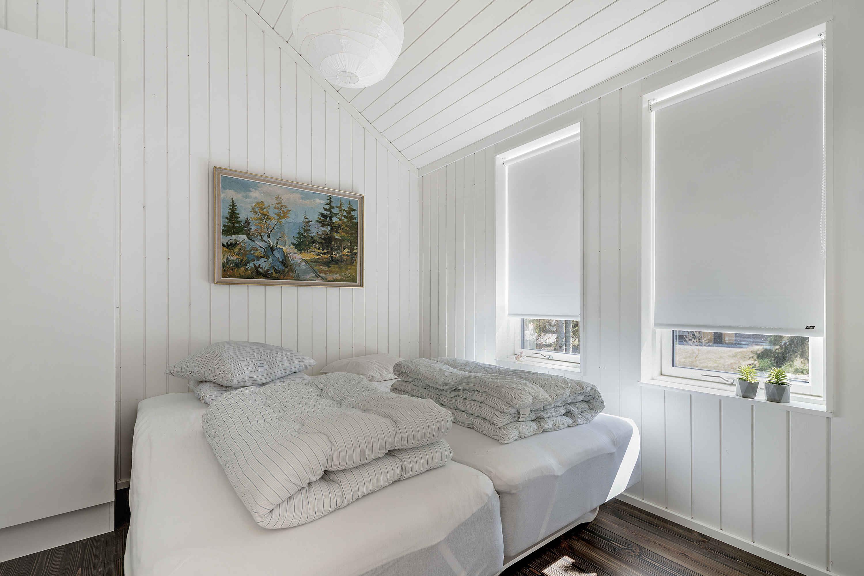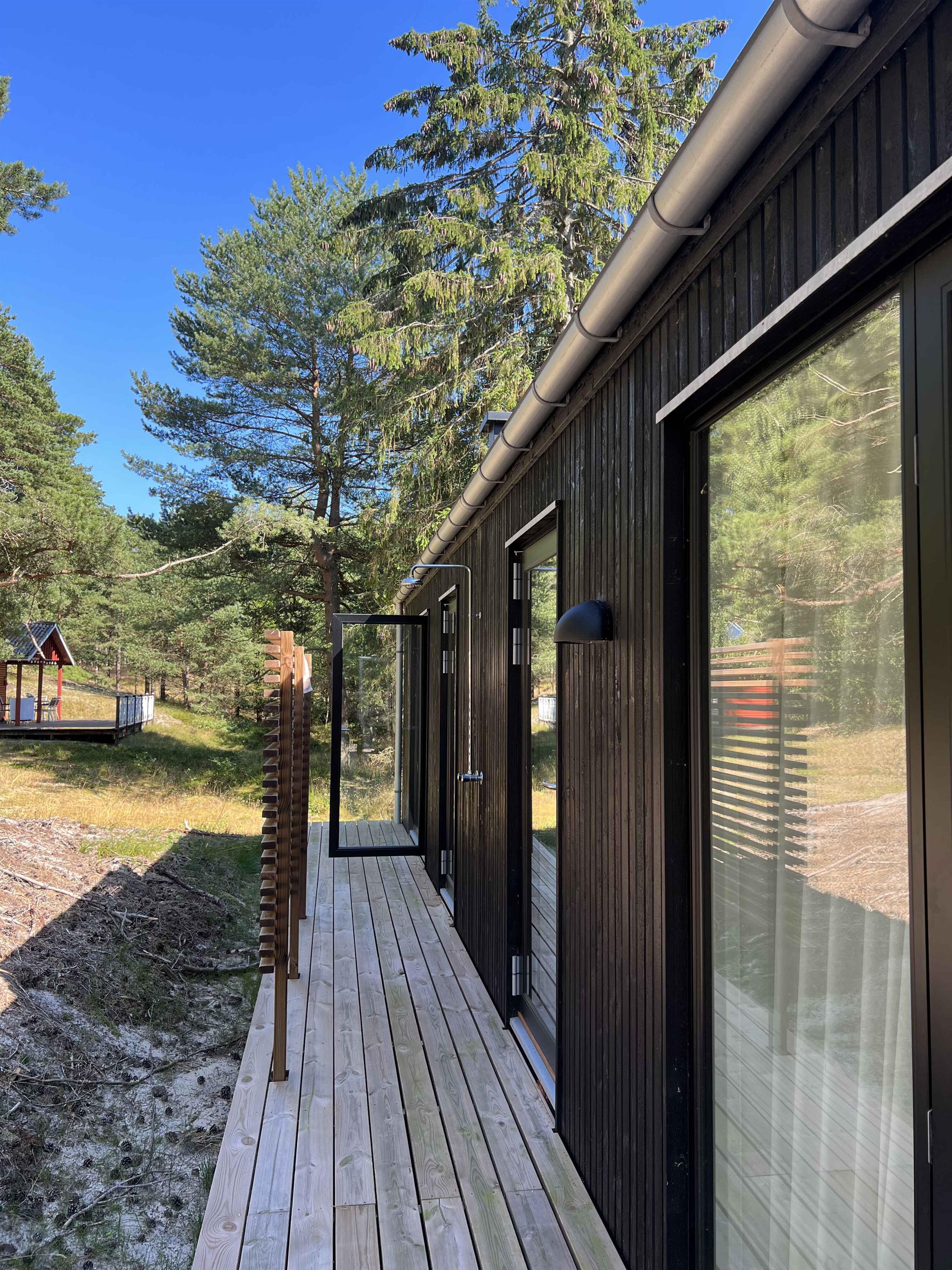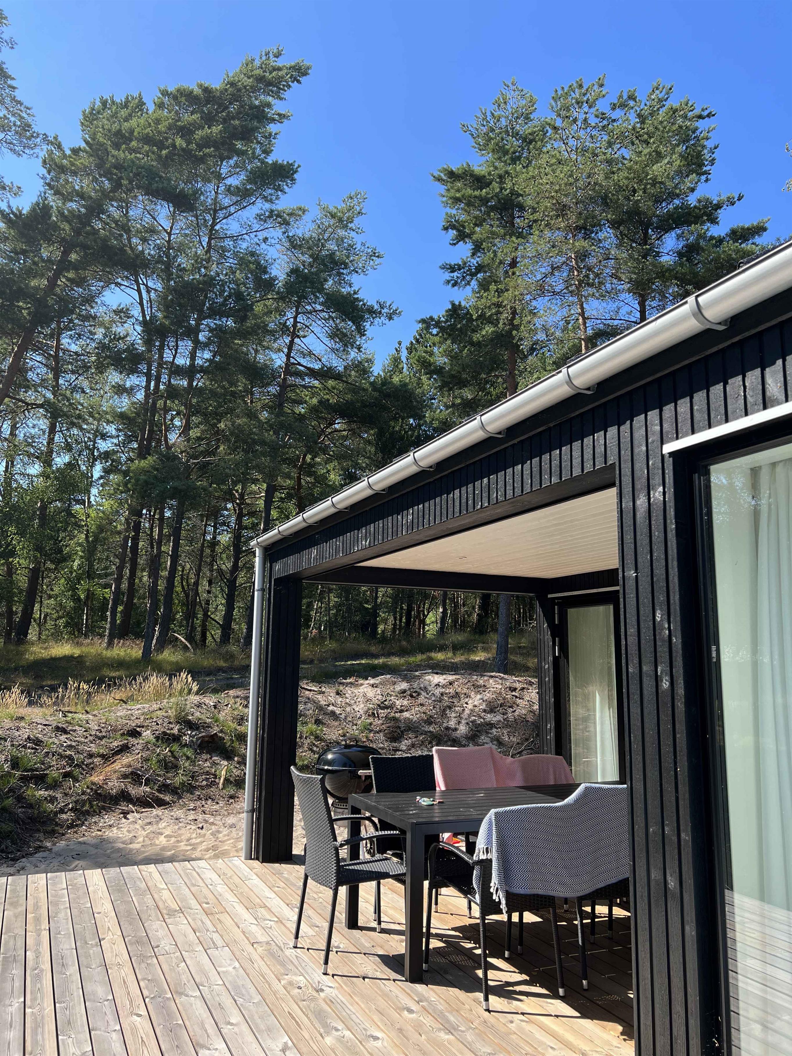 Das Haus wurde im Jahr 2021 gebaut und liegt nur wenige Gehminuten (ca. 1,4 km) vom schönen Strand von Dueodde mit seinem Eishaus und gemütlichen Restaurants entfernt. Ganz in der Nähe des Hauses befinden sich der spannende Bornholmertårn und das Museum des Kalten Krieges. Zum örtlichen Golfplatz ist es nicht weit. Das Haus verfügt über eine große, helle Wohnküche, vier schöne Zimmer mit Doppelbetten und zwei der Zimmer mit Dachboden, einladende Bäder mit Dusche und einen großen Hauswirtschaftsraum mit Waschmaschine und Trockner. Das Haus ist mit modernen Elektrogeräten ausgestattet und sehr gut isoliert. Geheizt wird mit einer Wärmepumpe, elektrischen Heizkörpern und Fußbodenheizung in den Bädern und im Hauswirtschaftsraum. Es gibt Internet, Flachbildfernseher, DVD-Player, X-Box-Konsole, Apple TV und Google Chromecast. Im Außenbereich gibt es auf beiden Seiten des Hauses einen Balkon und eine nach Süden ausgerichtete Terrasse mit offenen und überdachten Bereichen. Sowohl von der Wohnküche als auch von mehreren Schlafzimmern, dem Hauswirtschaftsraum und einem Badezimmer hat man direkten Zugang zum Balkon und zur Terrasse. Im Norden verfügt das Haus über eine Außendusche mit kaltem und warmem Wasser. Es gibt eine gute Zufahrt für Autos über eine gemeinsame Straße mit dem Nachbarhaus. Das Haus liegt in einem schönen, hügeligen Waldgebiet mit umliegenden Kiefern. Es ist zu beachten, dass das Haus auf einer Höhe liegt, so dass es für sehr mobilitätseingeschränkte Personen schwierig sein kann, das Haus über eine leichte Steigung mit Trittsteinen und eine niedrige Treppe zum Haupteingang zu erreichen (kein Geländer). Aufladung elektrische Autos ist beim 16A, 230V CEE Ladepunkt möglich. WICHTIG: Haustiere sind im Haus leider nicht erlaubt. Achtung: Wird nicht für gewerbliche Nutzung vermietet.