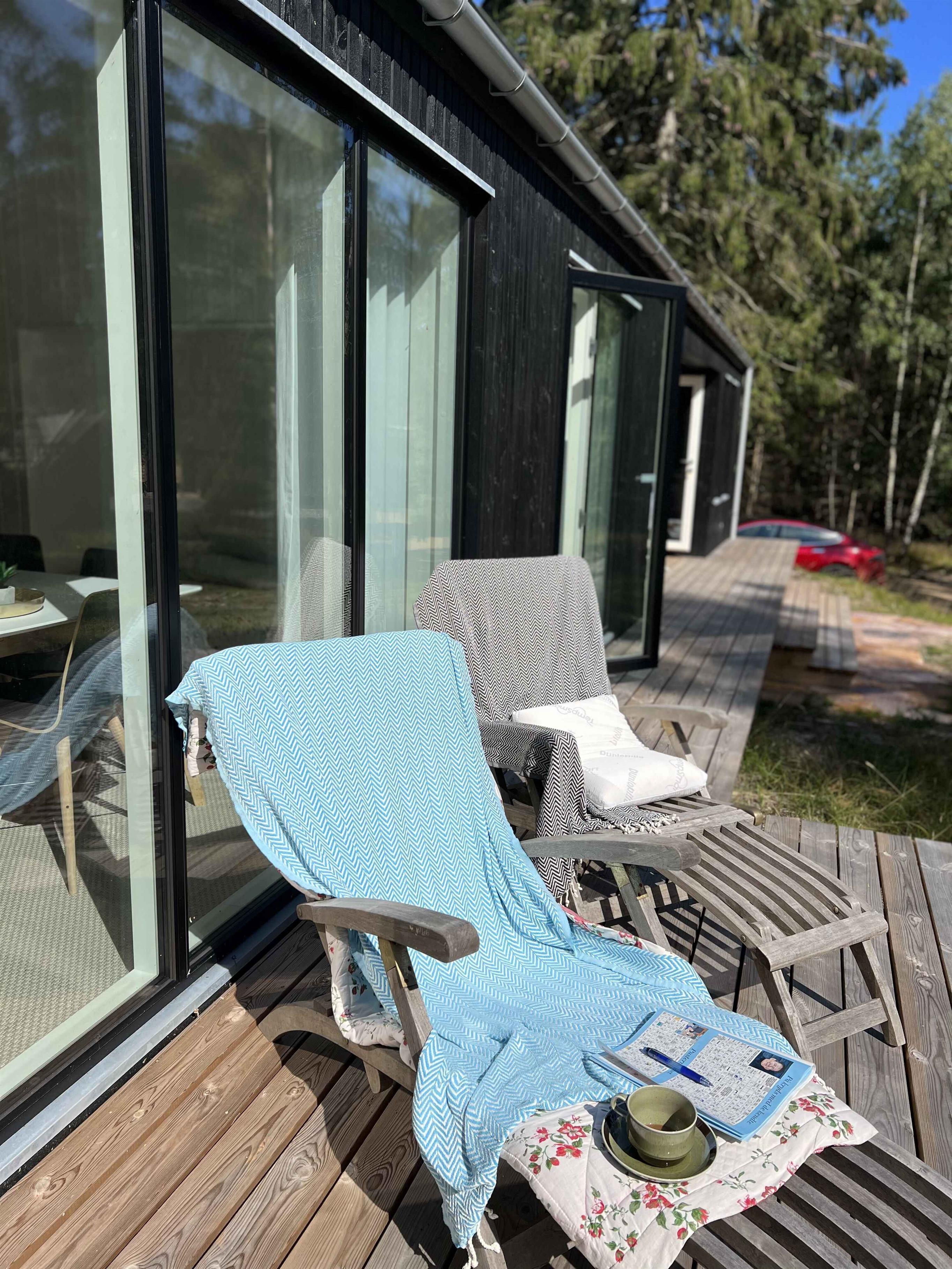 Neues, architektgezeichnetes Ferienhaus in Dueodde mit viel Platz und gemütlicher, moderner Einrichtung. Gebaut mit dem Wunsch, Freude und Entspannung für Gäste jeden Alters zu schaffen, und geeignet für herrliche Ferien bei jedem Wetter.