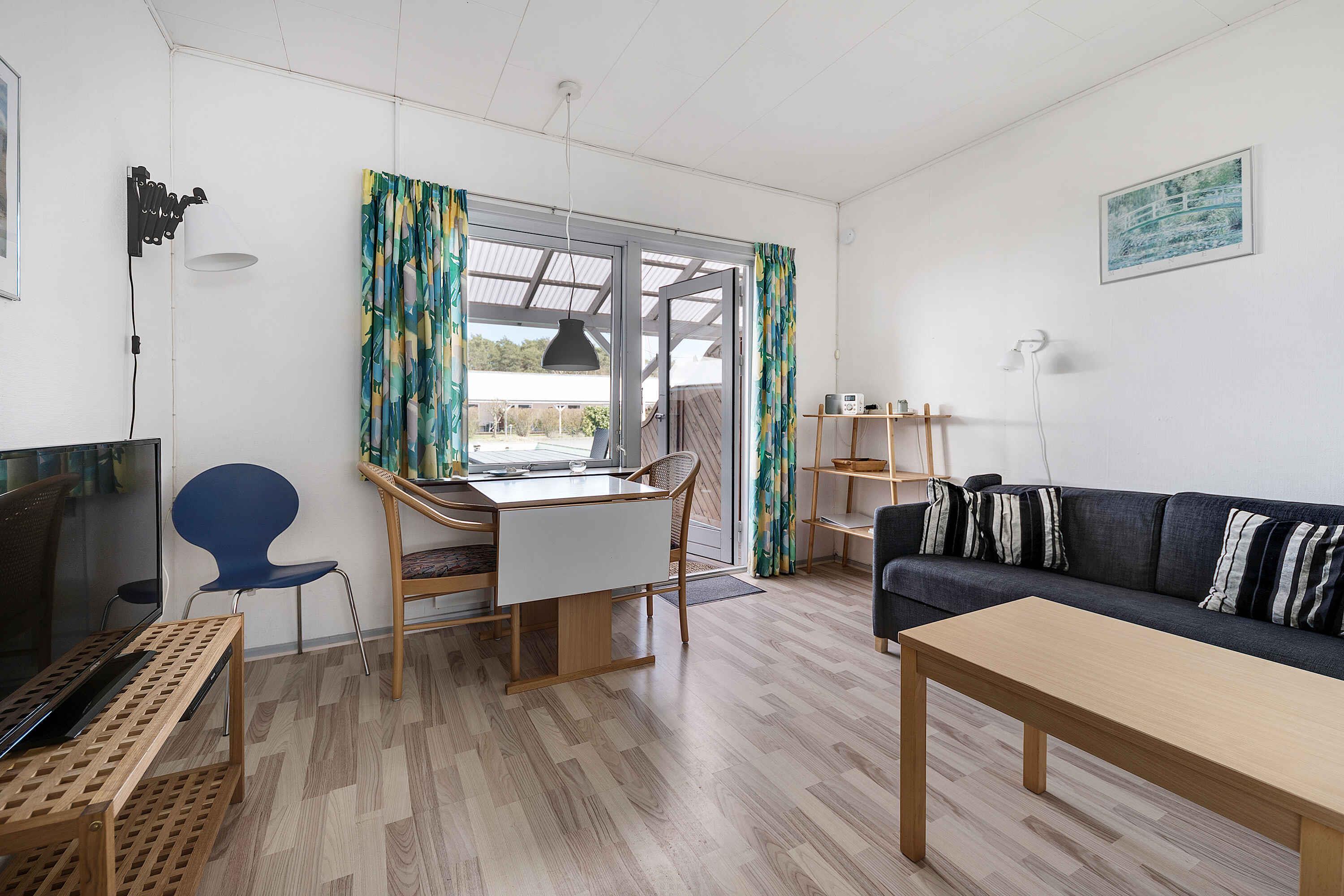 Gemütliche kleinere Ferienwohnung mit eigener kleiner Terrasse mit Blick auf den Außenpool. 300 Meter vom schönen Strand von Dueodde und in der Nähe der Städte Snogebæk und Nexø