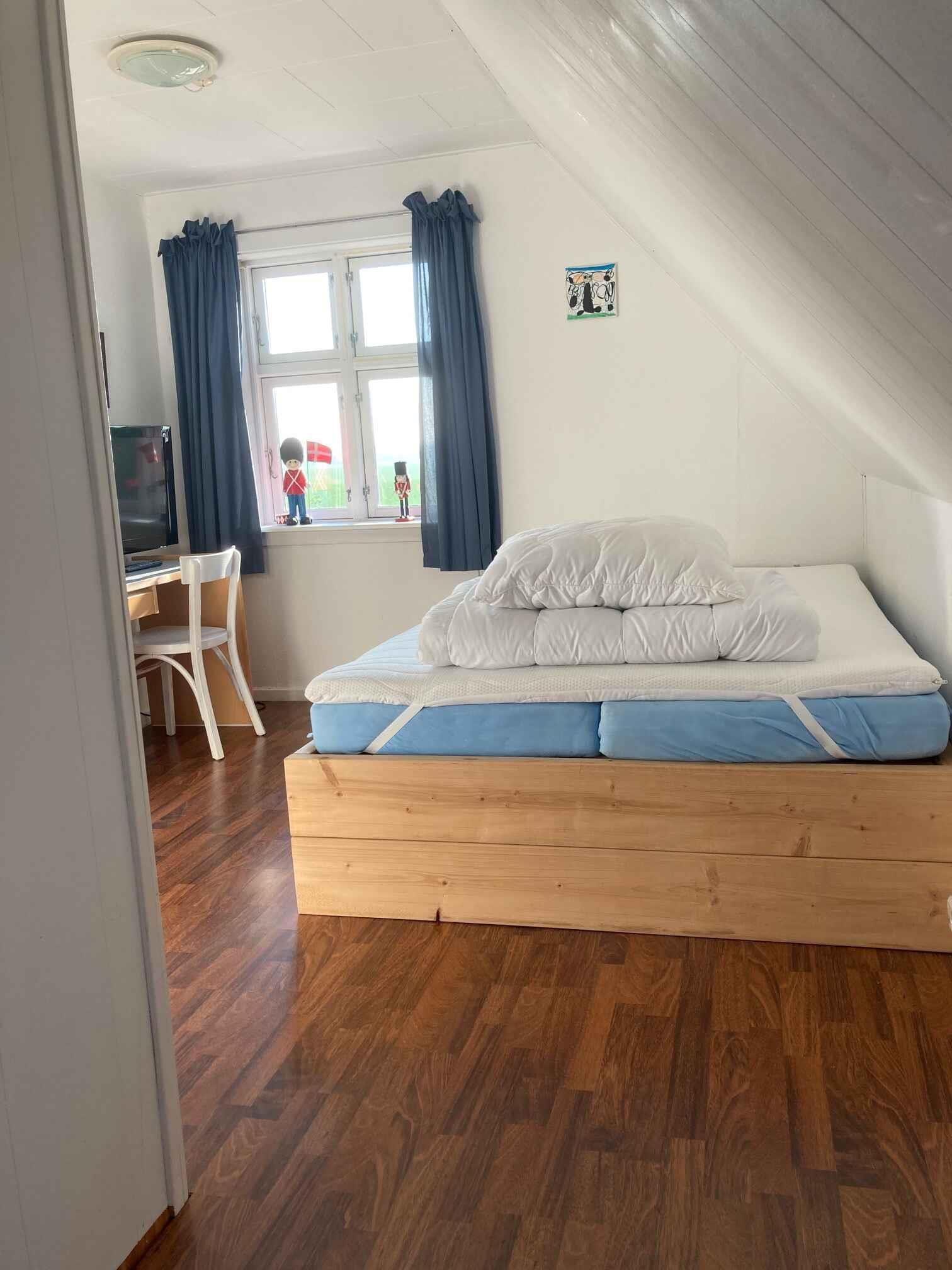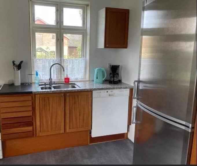 Das Sommerhaus wurde ursprünglich 1914 als Hauptgebäude für Poulsker Elværk erbaut. Seit 2021 wird es kontinuierlich renoviert. Das Ferienhaus erstreckt sich über zwei Etagen und bietet eine geräumige Unterkunft von 126 Quadratmetern, die Platz für bis zu 6 Personen in 3 gemütlichen Zimmern bietet. Im Erdgeschoss finden Sie eine einladende Atmosphäre mit einer gut ausgestatteten Küche, einem gemütlichen Wohn- und Esszimmer, einem komfortablen Schlafzimmer und einem praktischen Badezimmer. Es gibt auch einen Hauswirtschaftsraum/Waschraum, von dem aus Sie in den Hinterhof treten und die Natur genießen können. Im ersten Stock warten zwei weitere Schlafzimmer und ein funktionales Bürogebiet, perfekt für diejenigen, die während ihres Aufenthalts etwas Arbeitsplatz benötigen. Mit Blick auf Felder auf beiden Seiten des Hauses können Sie oft Hasen und Fasane entdecken, die zur idyllischen Atmosphäre beitragen. Die Küche ist gut ausgestattet mit modernen Annehmlichkeiten wie einer Mikrowelle, einem Wasserkocher, einer Kaffeemaschine und einer Nespresso-Maschine, sodass Sie köstliche Mahlzeiten für die ganze Familie zubereiten können. Im Wohnzimmer können Sie Ihre Lieblingsprogramme ganz einfach über Chromecast auf dem Fernseher streamen. Der Hinterhof ist eine private Oase mit einer älteren Terrasse, perfekt für gemütliche Mahlzeiten unter freiem Himmel, und einem großen Rasen, auf dem viel Platz zum Spielen und Entspannen ist. Mit nur 5 Minuten Fahrt zum Strand von Dueodde, der mit seinem ultrafeinen Sand als einer der besten Strände Europas gilt, ist dieses Ferienhaus der ideale Ausgangspunkt für Strandliebhaber. Am Strandparkplatz finden Sie Annehmlichkeiten wie eine Eisdiele, einen Kiosk, Toiletten und ein Restaurant. Wenn Sie ein privateres Stranderlebnis wünschen, finden Sie den Namen der Straße zum Ferienhaus. Wenn Sie Lust auf Brunch oder Mittagessen haben, liegt das Café Ø nur wenige Häuser entfernt und lockt mit köstlichem Bio-Essen. Das Dorf Snogebæk ist nur 5 Autominuten entfernt und bietet nicht nur einen Dagli'Brugsen, sondern auch verschiedene Restaurants, darunter Sørens Kneipe. Sie können auch Kjærstrup Chocolade besuchen, das ein Geschäft in der Stadt hat. In Nexø, etwas weiter entfernt, finden Sie weitere Supermärkte, Apotheken, Restaurants und andere Annehmlichkeiten. Bitte beachten Sie, dass das Ferienhaus nicht an Jugendgruppen vermietet wird, um eine ruhige und entspannte Atmosphäre für alle Gäste zu gewährleisten.