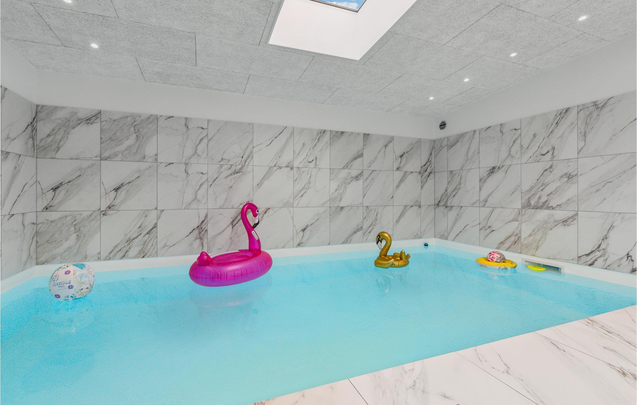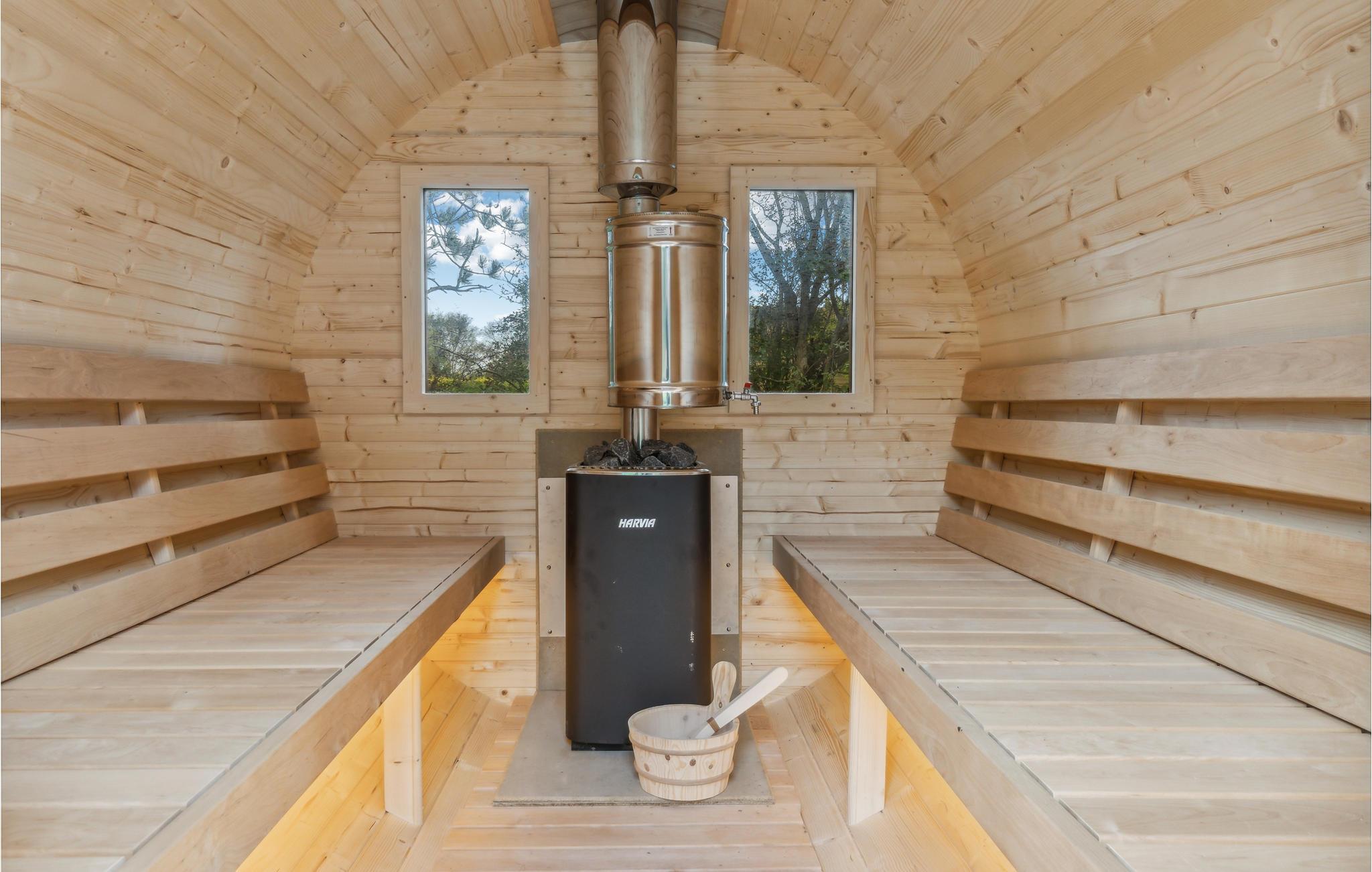 Alles was Sie für Ihren komfortablen Urlaub brauchen, finden Sie hier vor. Packen Sie nur noch Ihre Großfamilie ein und beziehen dieses gut geschnittene Ferienhaus. Hier finden Sie alle zur Ruhe und können Ihren Alltag hinter sich lassen. Der Poolbereich mit separatem Kinderpool verspricht stundenlangen Badespaß unabhängig vom Wetter. Im hübschen Wohnraum mit moderner Küche können Sie gemeinsam Ihre Lieblingsspeisen zubereiten und am Esstisch einnehmen. Auch die überdachte Terrasse eignet sich hervorragend dazu. Beenden Sie das Frühstück im Freien, während Ihre Kinder auf dem Trampolin in luftige Höhen springen und sich auf dem Spielturm vergnügen. Planen Sie auch Saunaabende mit der ganzen Familie, die in der Fasssauna Platz finden und entspannen sich beim Schwitzen.