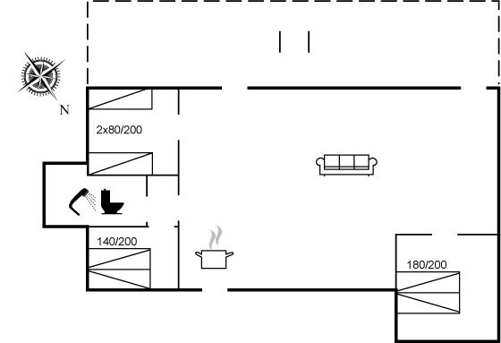 Die Schlafplätze verteilen sich auf 3 Schlafräume. 4 Schlafplätze in Doppelbetten. 2 Schlafplätze in Einzelbetten.