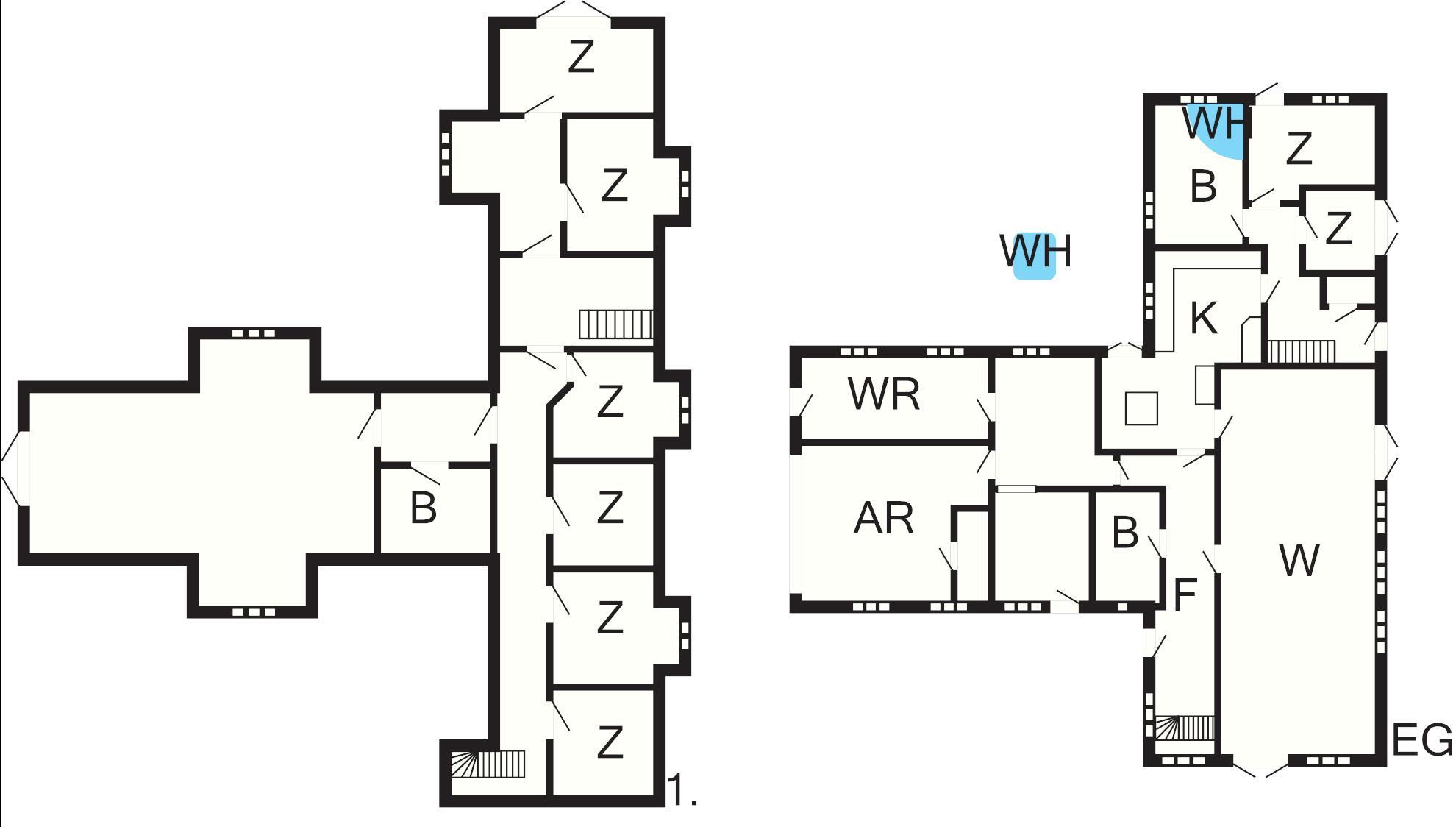 Bad: WC, Waschb., Wanne, Dusche, Fußbodenheiz.