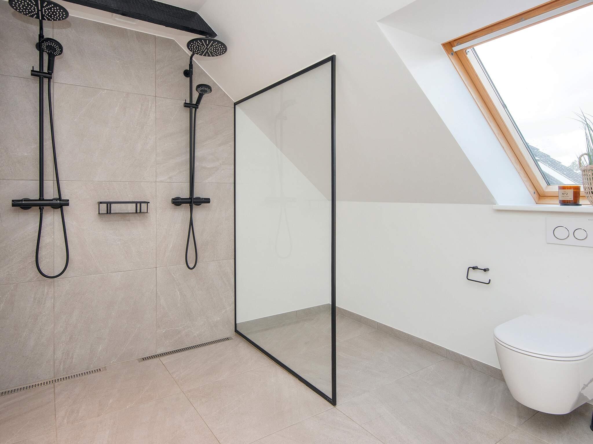Bad: WC, Waschb., Dusche, Fußbodenheiz.