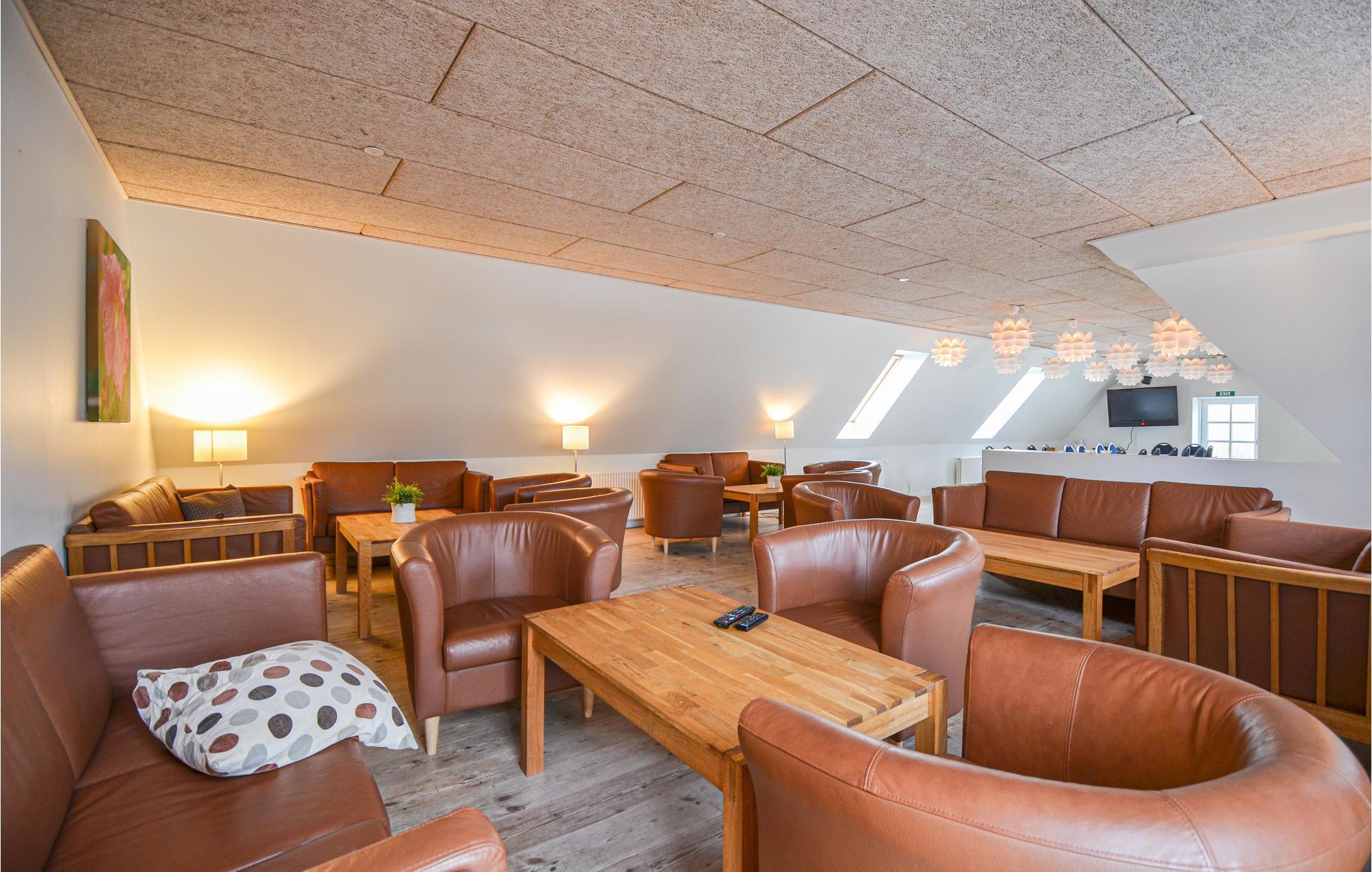 Dieses große Feriendomizil nahe Nimtofte auf Djursland bietet ideale Voraussetzungen für einen Aufenthalt mit mehreren Familien oder einer größeren Gruppe. Das historische Gebäude wurde umfassend modernisiert und besticht durch eine einladende Atmosphäre und viel Platz. Kochen Sie gemeinsam in der geräumigen Landhausküche und nehmen Sie Ihre Mahlzeiten am langen Esstisch ein. Im Obergeschoss des Hauptgebäudes steht ein Konferenzraum mit Flachbildschirm und WLAN-Anschluss zur Verfügung. In sechs separaten Wohnungen im Seitengebäude können sich alle Gäste zurückziehen. Whirlpool und Fernseher sind in jeder Einheit vorhanden. Weitere Schlafplätze lassen sich im Haus bei Bedarf problemlos einrichten. Im hinteren Teil des Hauptgebäudes wohnt der Hausmeister in einer separaten Wohnung mit eigenem Eingang und Parkplatz.
