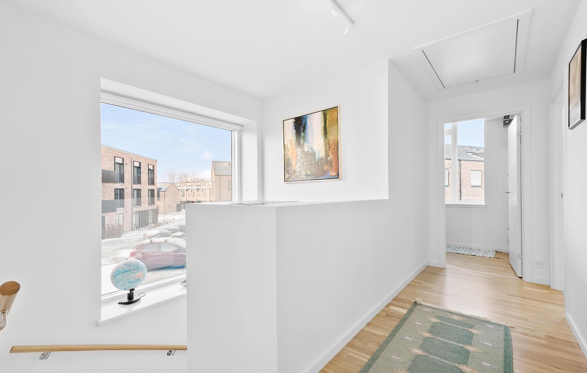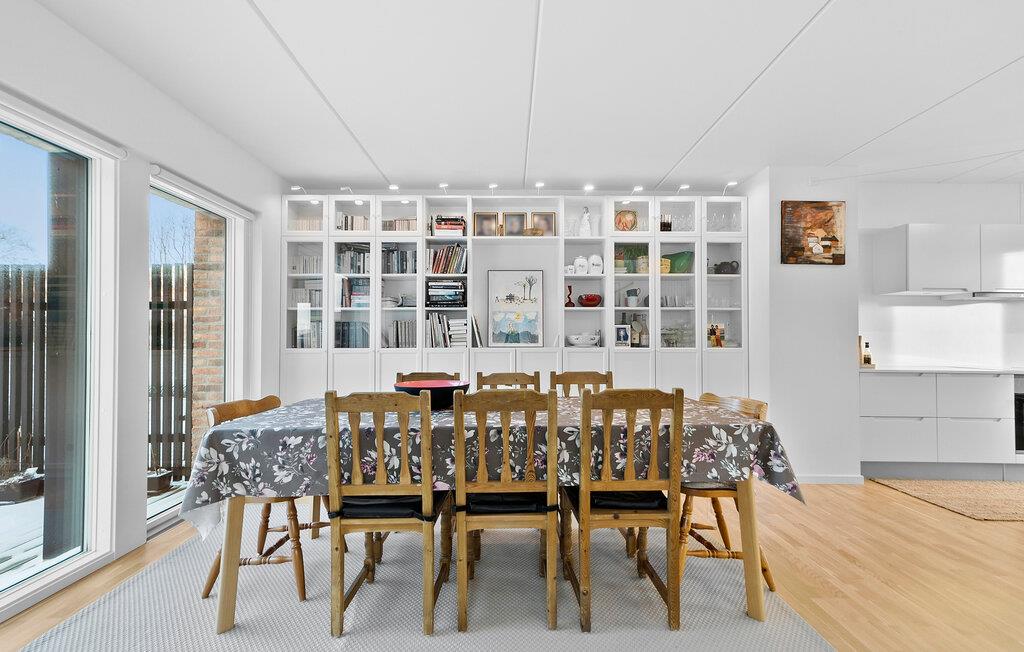 Modernes, helles Ferienhaus in Nivå mit zwei Terrassen und nahe dem Strand, ideal für Familien und Naturliebhaber.