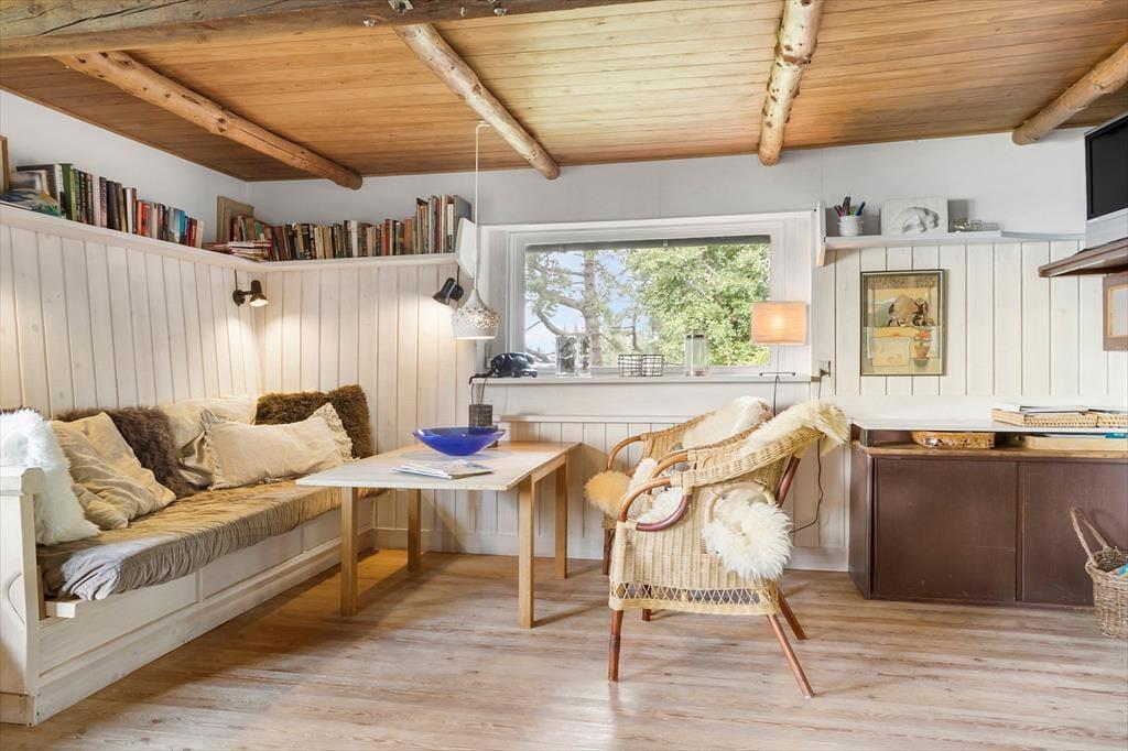 Ein weiterer Ausgang führt dich auf eine überdachte Terrasse an der Ostseite, sodass du dich zu jeder Zeit zwischen einem sonnigen und einem geschützten Aufenthaltsplatz entscheiden kannst. Der Anbau des Hauses ist von der Küche aus zugänglich. Er beinhaltet einen gemütlichen Aufenthaltsraum, von dem eine doppelte Terrassentür leichten Zugang zu einer gen Nordwesten weisenden Terrasse ermöglicht. Die großen Terrassentüren schaffen eine wunderbare Verbindung zur umliegenden Natur. Im Anbau ist darüber hinaus das Badezimmer mit WC und Dusche untergebracht. Das Bad präsentiert sich ebenso gemütlich und funktionell wie der Rest deines Ferienhauses. Über eine Treppe erreichst du den zweiten Schlafraum des Urlaubsdomizils, in dem drei weitere Betten zur Verfügung stehen. Die Aussicht ist in diesem Schlafraum wunderschön. Durch das Fenster blickst du weit über das Naturgebiet Nordby Bakker. Zudem verwöhnt das Fenster mit einem reizvollen Tageslichteinfall. Bei diesem Ferienhaus handelt es sich um ein ganz besonderes Exemplar, das mit einem Maximum an Charme und Nostalgie verzaubert. Es bietet Platz für bis zu sechs Personen und begeistert mit seiner traumhaft schönen Lage. Unvergessliche Urlaubserlebnisse sind dir und deinen Lieben bei diesem Ferienhaus garantiert.