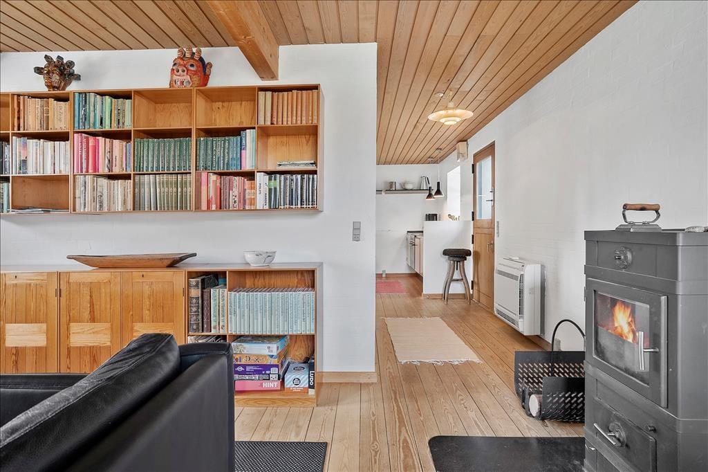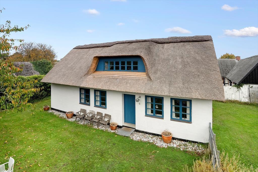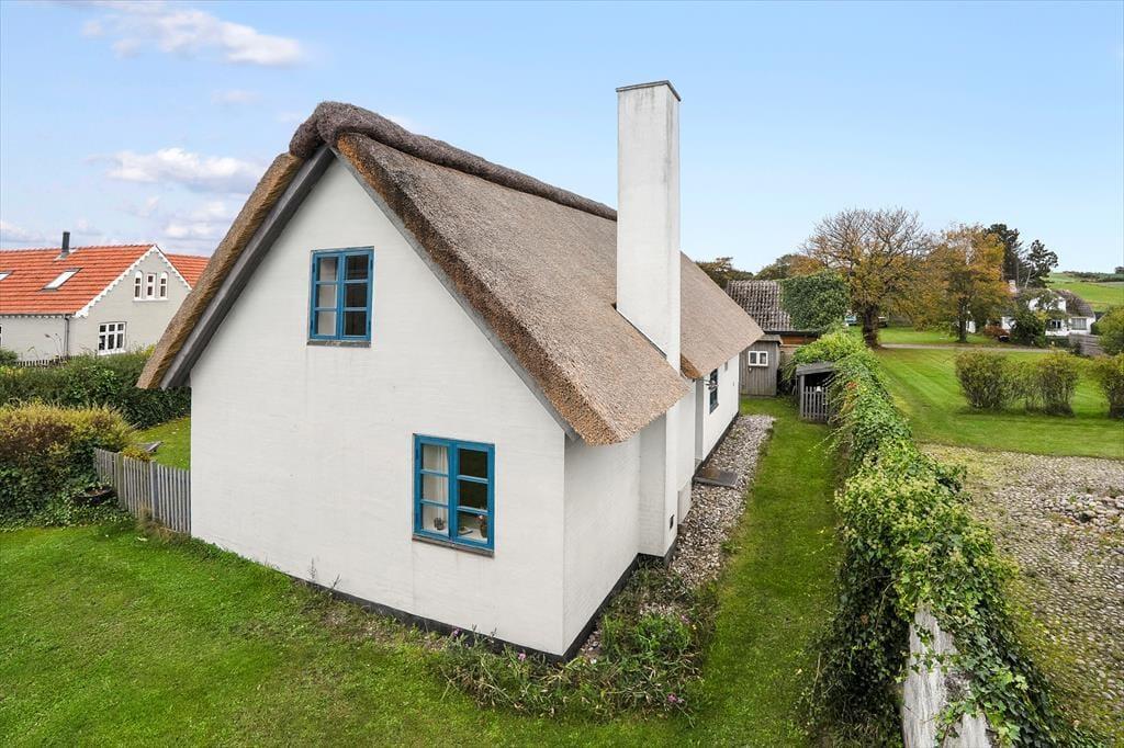 Das Haus wurde 1981 gebaut und ist eine schöne Kombination aus einem authentischen Reetdachhaus und Sprossenfenstern mit moderner Einrichtung und Komfort. Im Erdgeschoss gibt es eine offene Verbindung vom Wohnzimmer mit Kaminofen zur gut ausgestatteten Küchenecke; Holzfußboden im ganzen Raum sowie ein Ausgang zum Garten Richtung Süden und Norden. Ein Badezimme mit Dusche, einen Haushaltsraum mit Wäschetrockner und Gefrierschrank. Im ersten Stock ist ebenfalls ein Holzfußboden ausgelegt und im Giebel Richtung Osten gibt es ein Schlafzimmer mit doppelter Boxmatratze sowie Schränke. Im Giebel Richtung Westen gibt es eine teilweise sichtgeschützte Schlafecke mit einer doppelten Futon-Matratze.