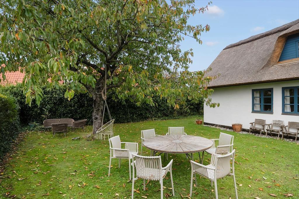Der größte Teil des geschlossenen Gartens liegt südlich vom Haus mit einer Hecke zum Nachbarn und einem Zaun zur Einfahrt/Parkplatz abgegrenzt. Ein Grill und schöne Gartenmöbel stehen zur Verfügung. Sie befinden sich mitten zwischen den alten schönen und traditionellen Häusern von Nordby, und Sie sind etwas abseits vom Trubel der vielen vorbeilaufenden Touristen. Trotzdem sind es nur 250 Meter bis zum Teich und noch näher zu einem Café und einem Delikatessengeschäft in einem alten Kaufmannshaus.