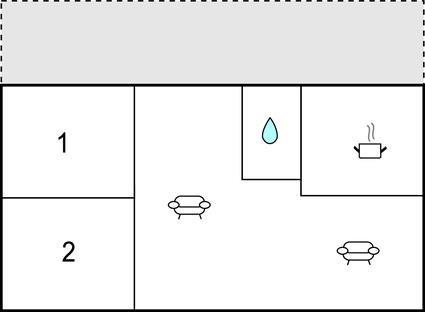 Badezimmer (nr. 1) - WC. Warmes und kaltes Wasser. Dusche