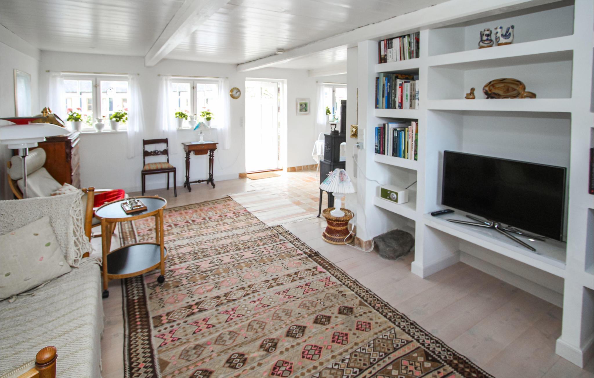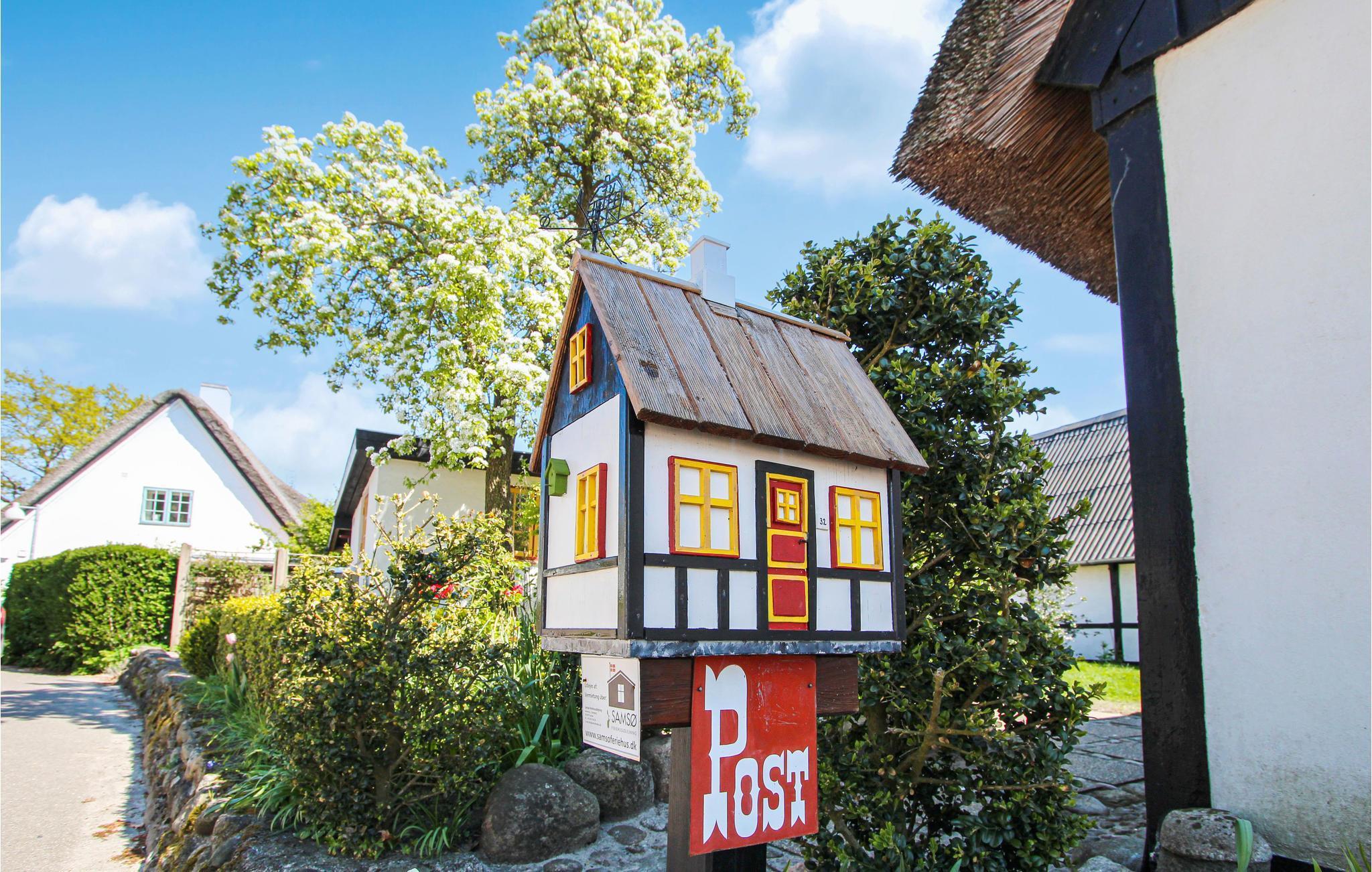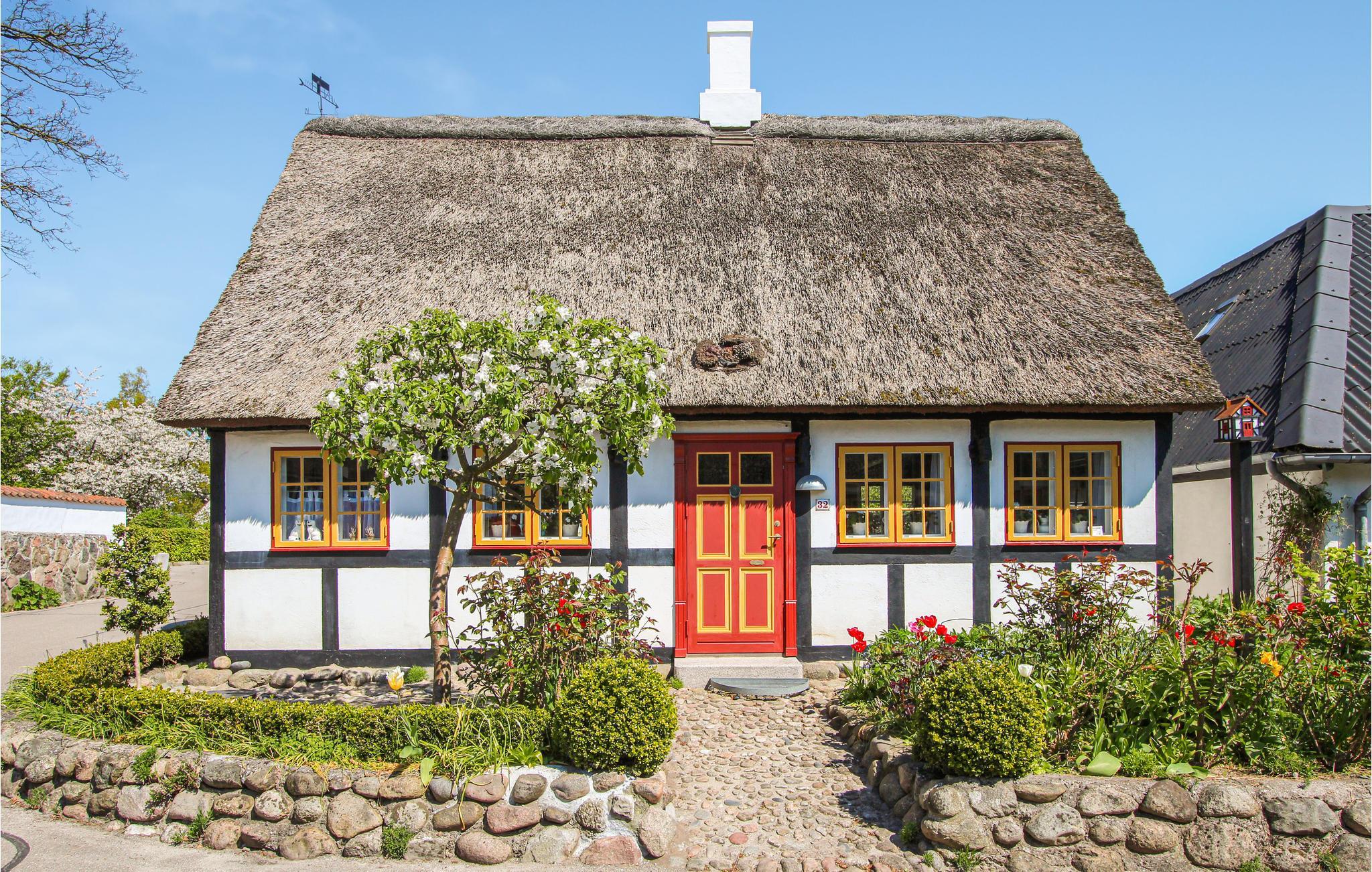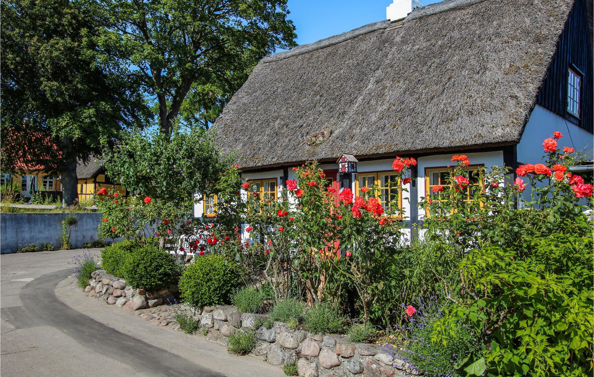 Idyllisches, reetgedecktes Fachwerkferienhaus auf Samsø mit Kaminofen und Hofgarten für entspannte Urlaubstage.
