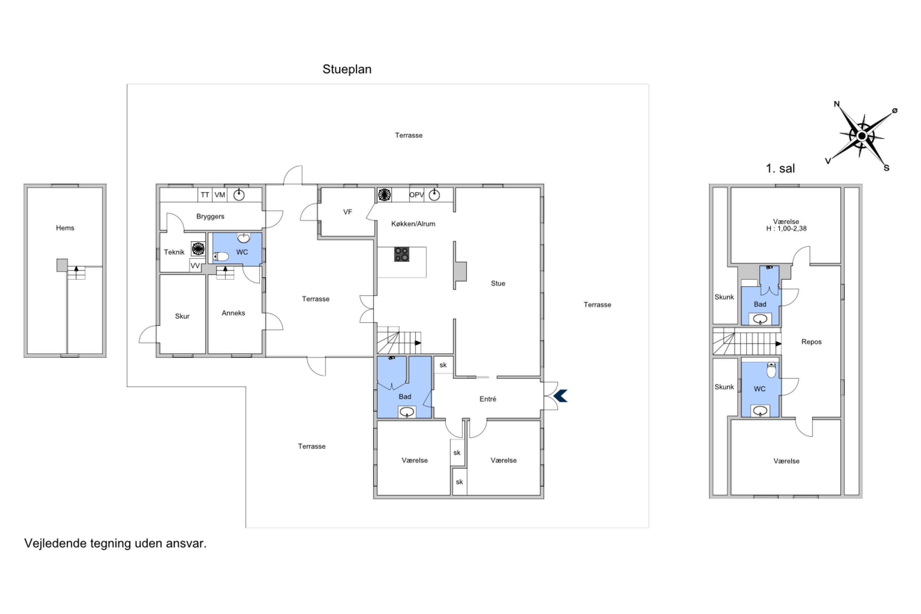 The house contains 4 large beautiful bedrooms as well as an annex with a loft with space for 2 people, a large open living room with a fantastic view and only approx. 45 m to the water's edge.