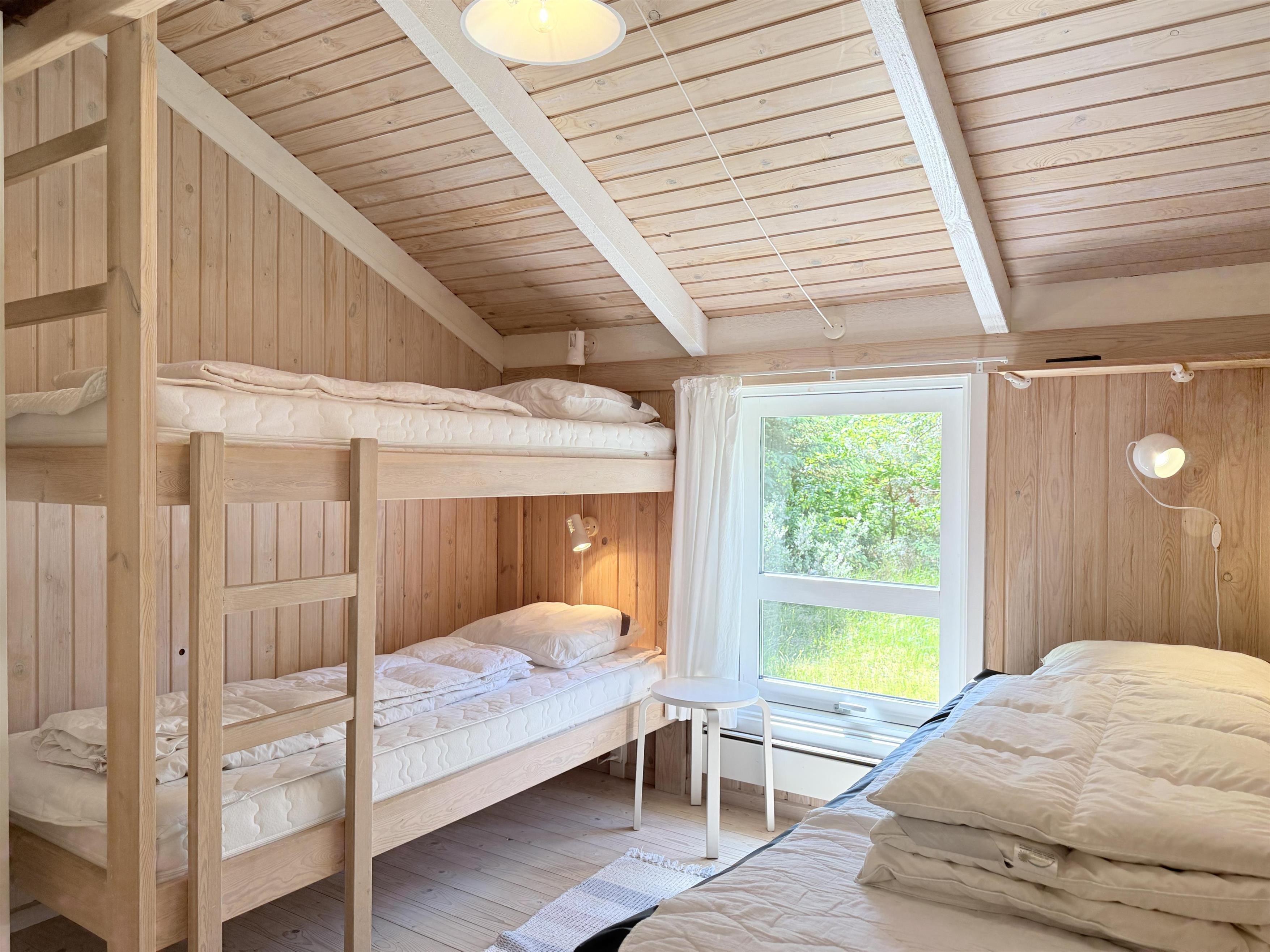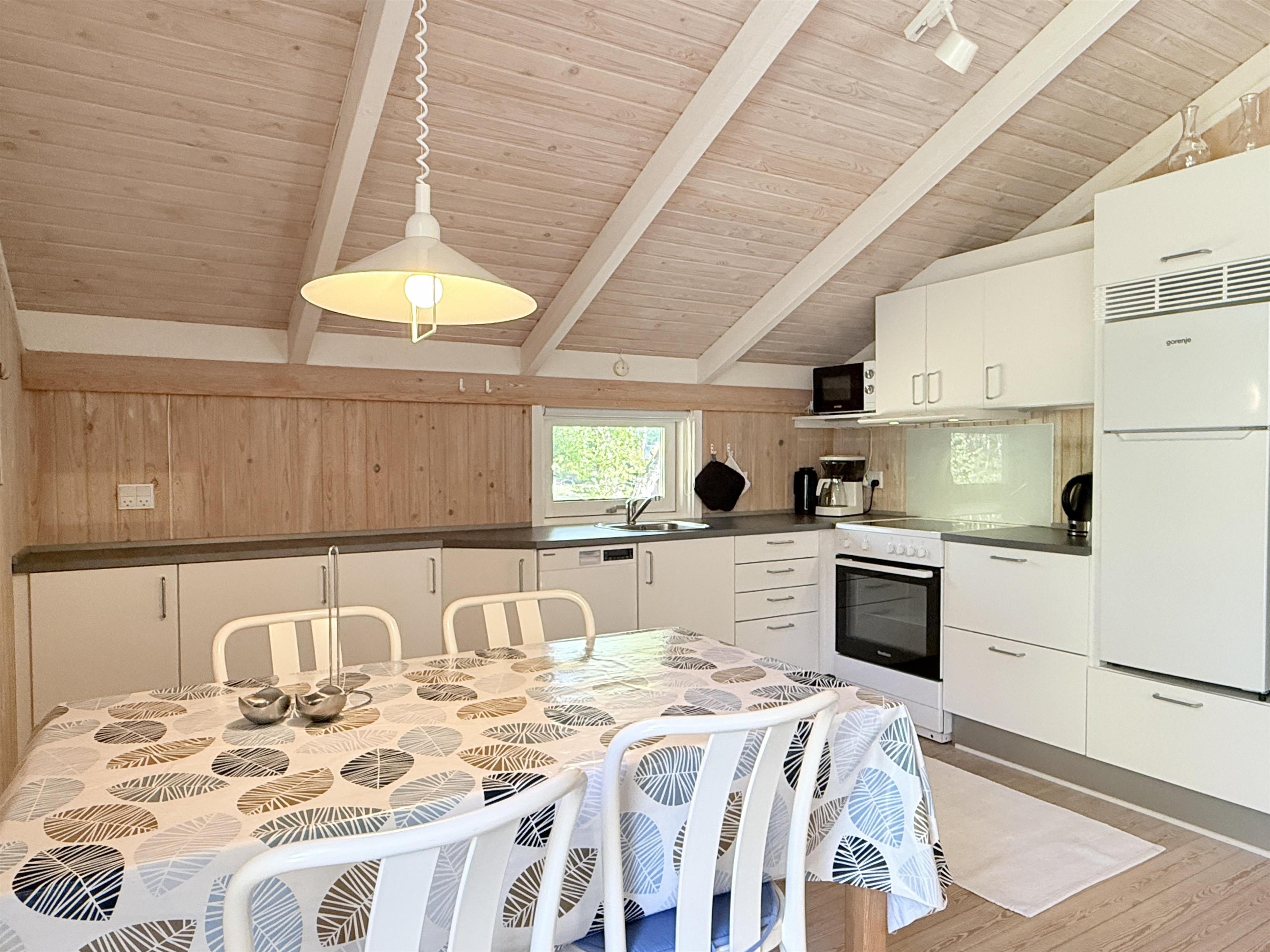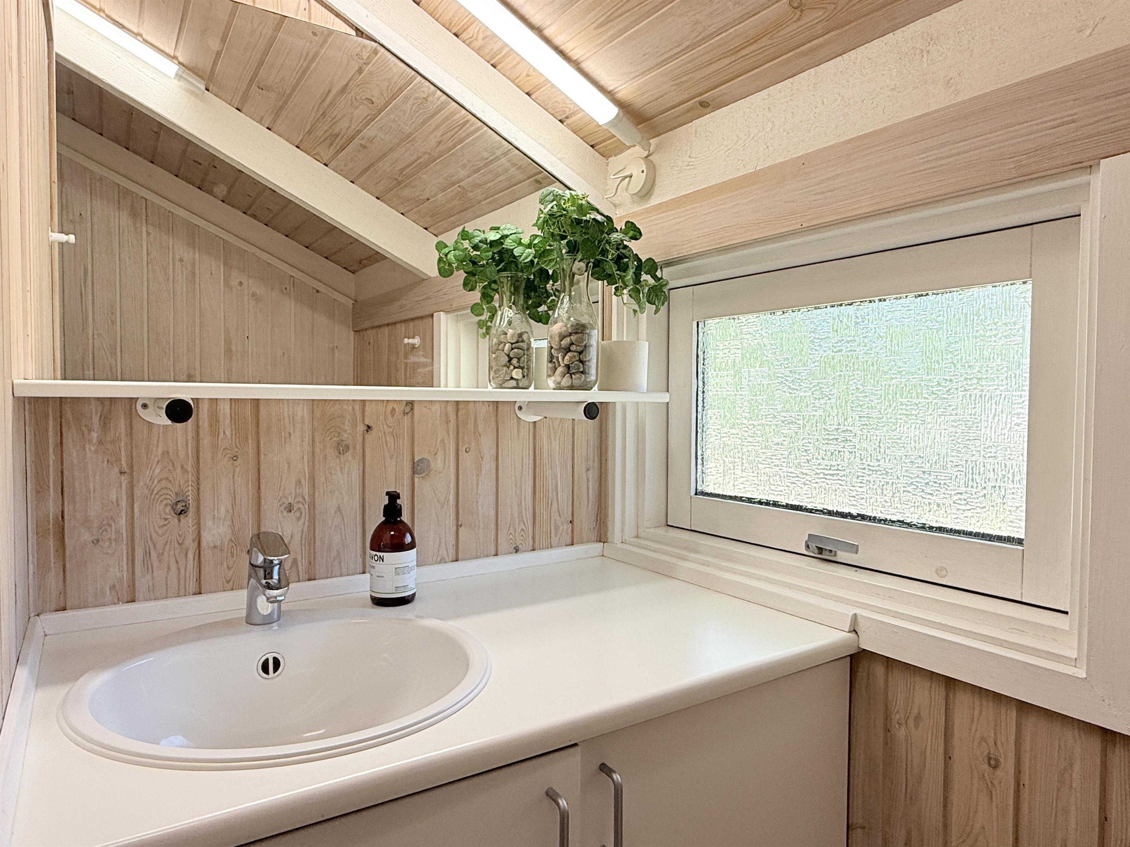 Neues sehr gut gepflegtes funktionell eingerichtetes Sommerhaus mit Platz für 5 Personen. Es hat ein Badezimmer mit Dusche, und 2 Schlafzimmer. Eines mit Doppelbett (140), und eines mit Etagenbett und ein Einzelbett. Grosse Küche mit Essplatz und Wohnzimmer in einem Raum. Direktem Ausgang zur Terrasse. Mit hellen Holzwänden und vielen grossen Fenstern, das eine gemütliche Atmosphähre gibt. Das Sommerhaus liegt in einer wunderschönen Umgebung, das eine gute Ferienstimmung gibt.
