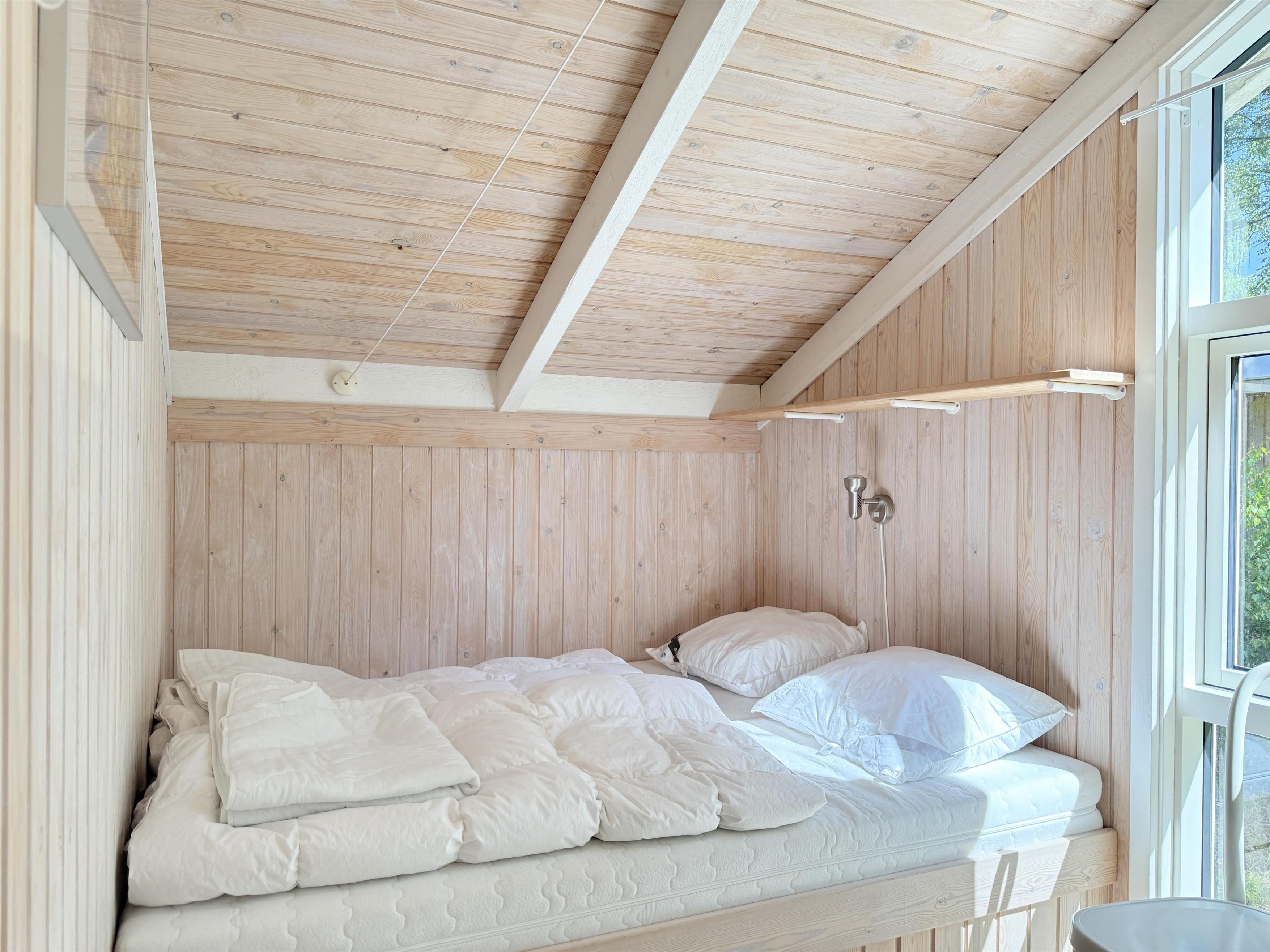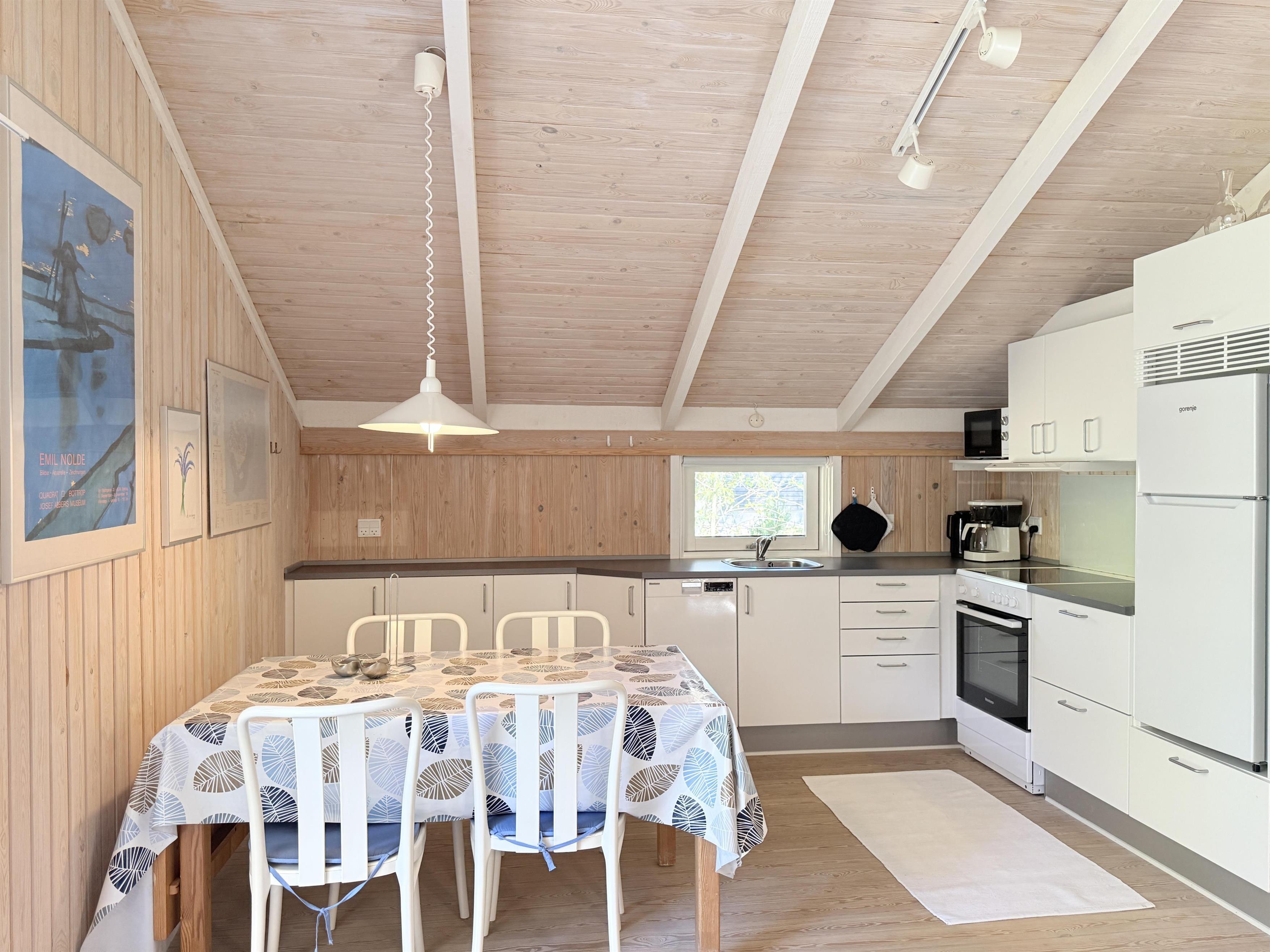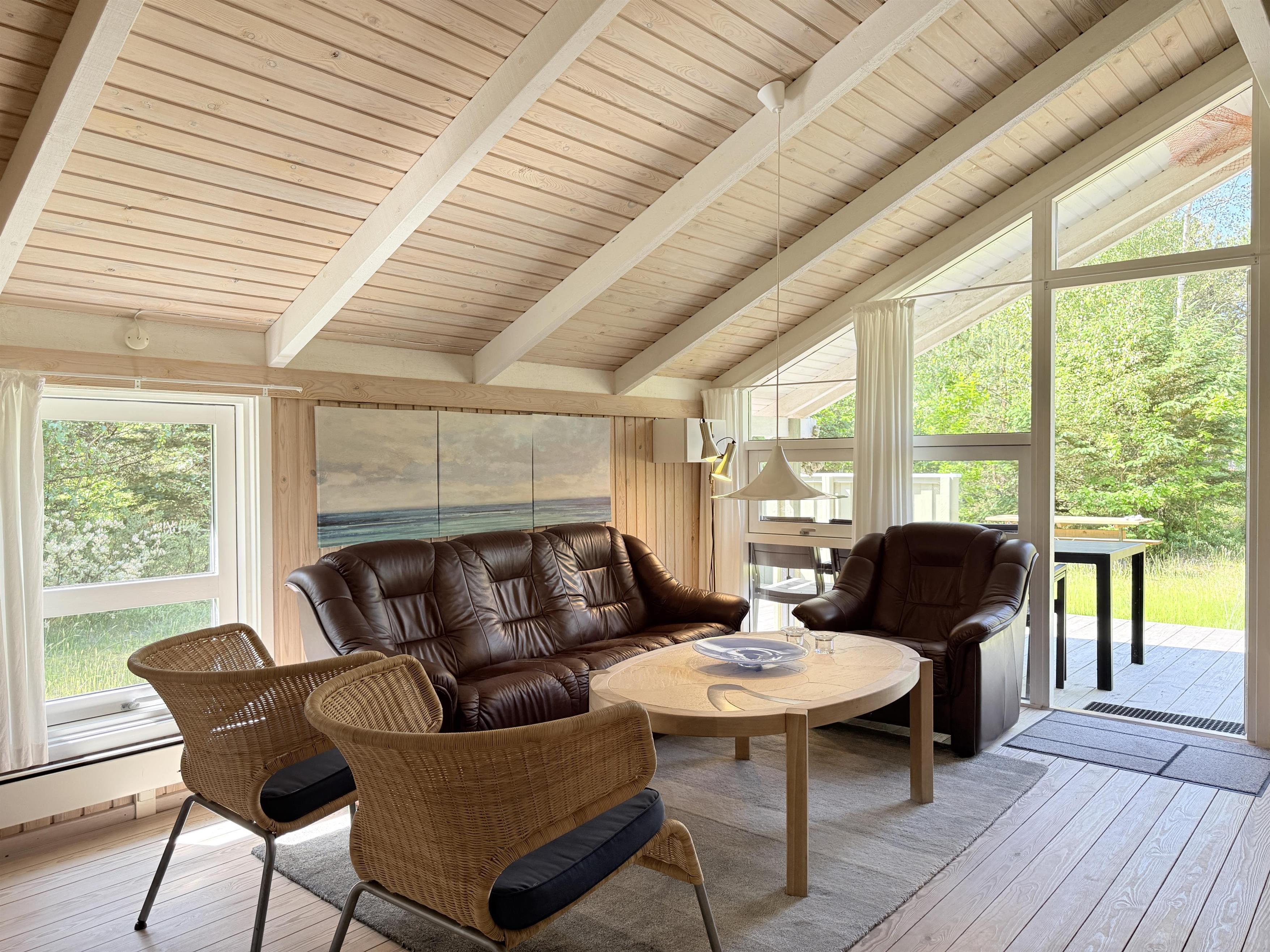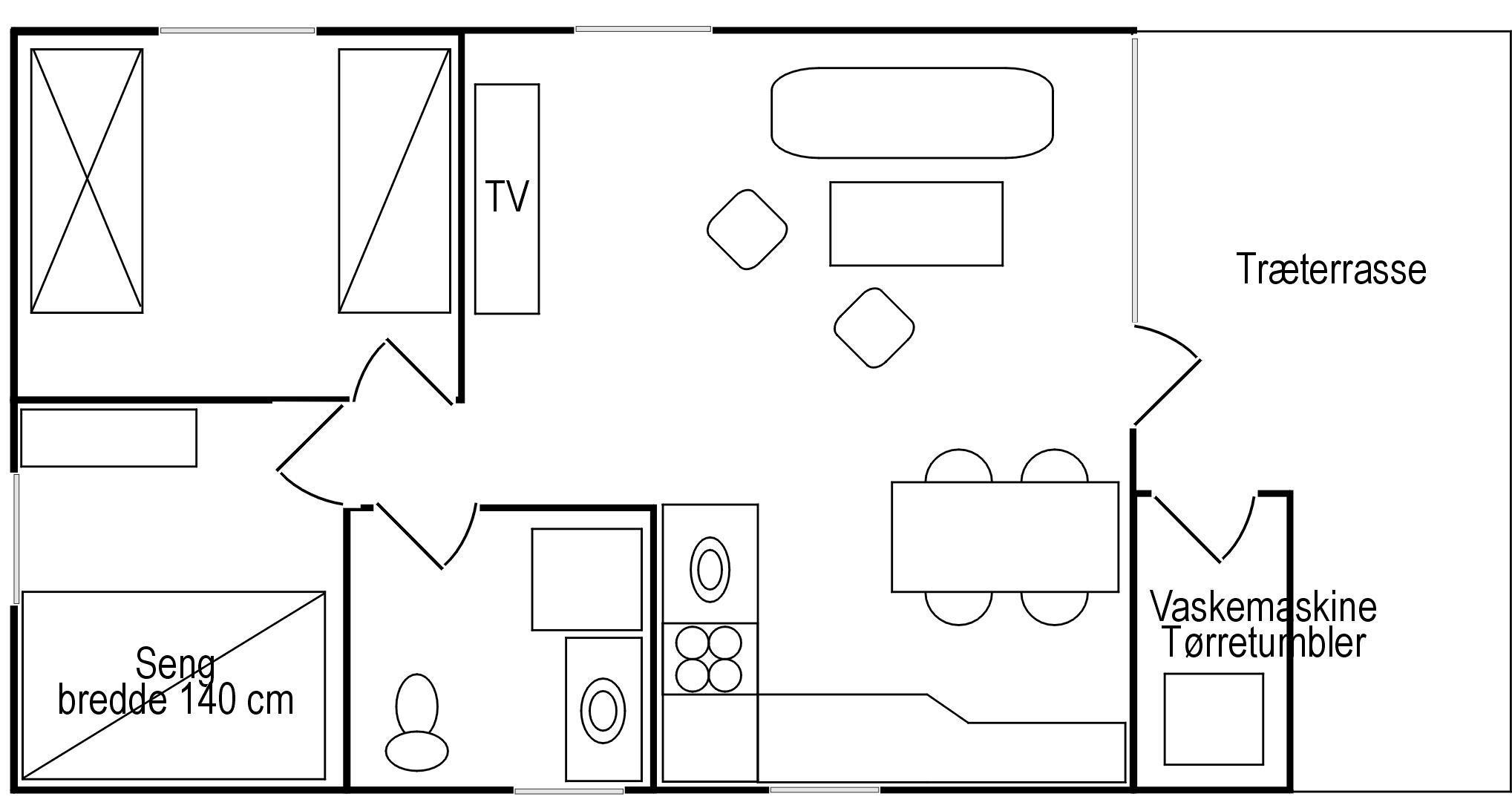 Neues sehr gut gepflegtes funktionell eingerichtetes Sommerhaus mit Platz für 5 Personen. Es hat ein Badezimmer mit Dusche, und 2 Schlafzimmer. Eines mit Doppelbett (140), und eines mit Etagenbett und ein Einzelbett. Grosse Küche mit Essplatz und Wohnzimmer in einem Raum. Direktem Ausgang zur Terrasse. Mit hellen Holzwänden und vielen grossen Fenstern, das eine gemütliche Atmosphähre gibt. Das Sommerhaus liegt in einer wunderschönen Umgebung, das eine gute Ferienstimmung gibt.