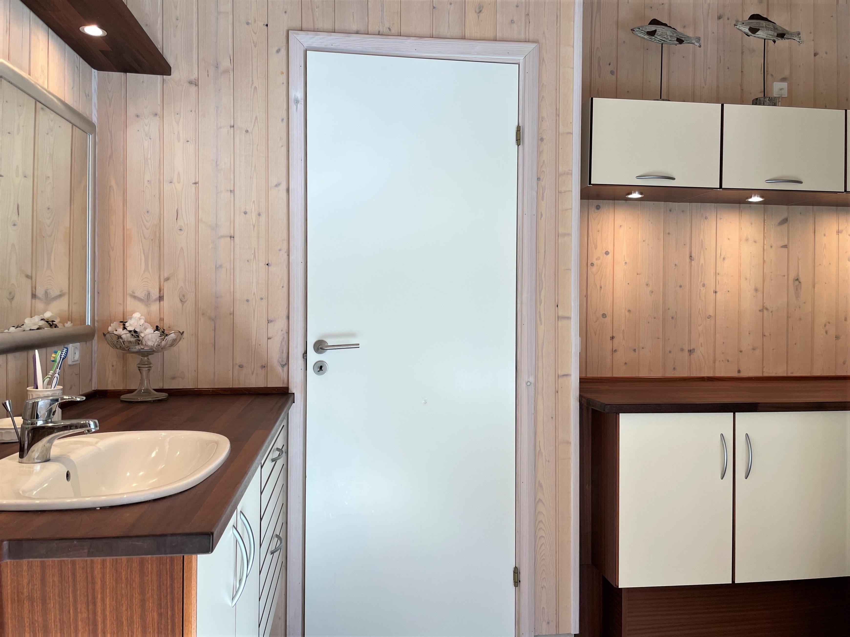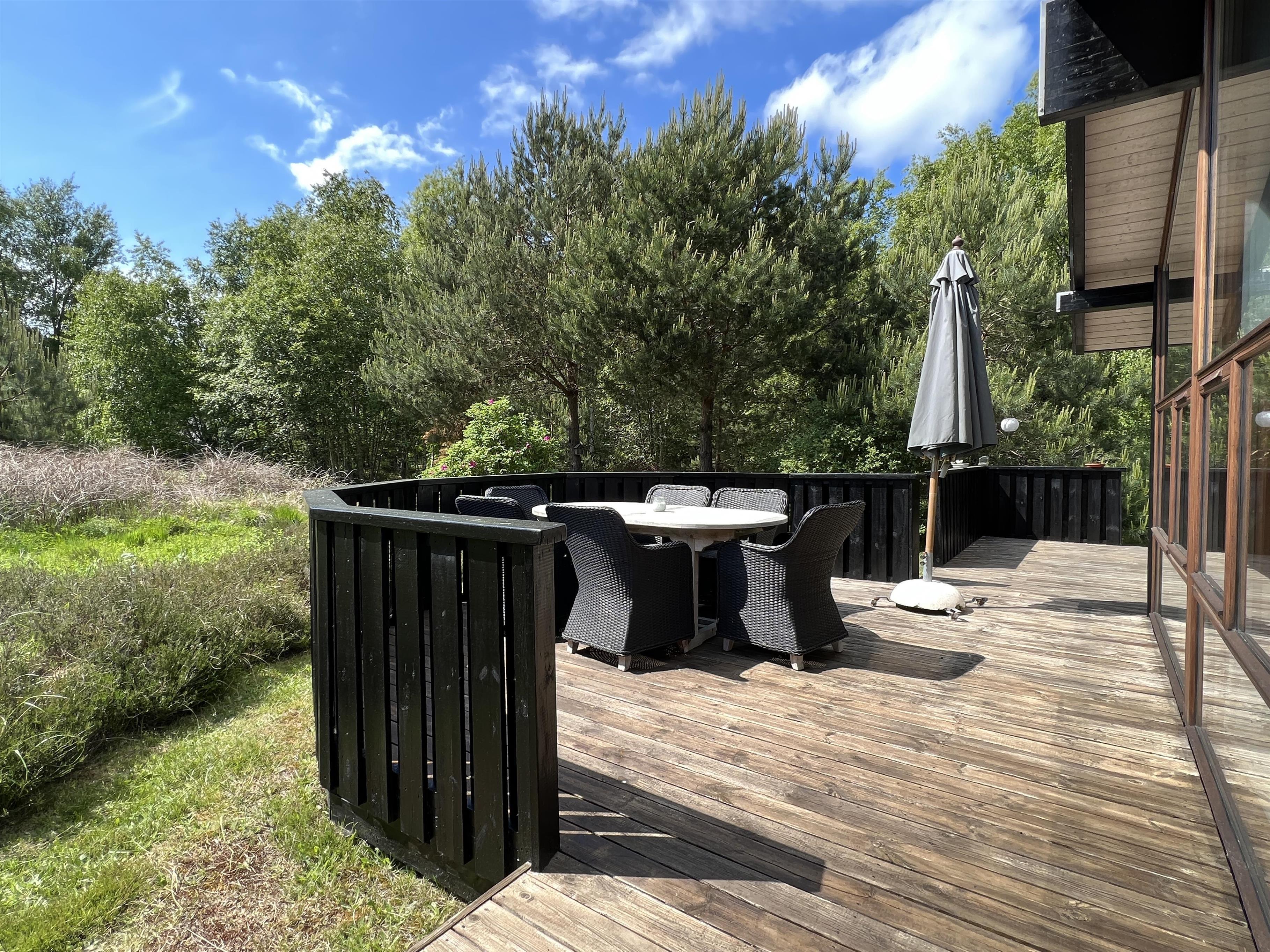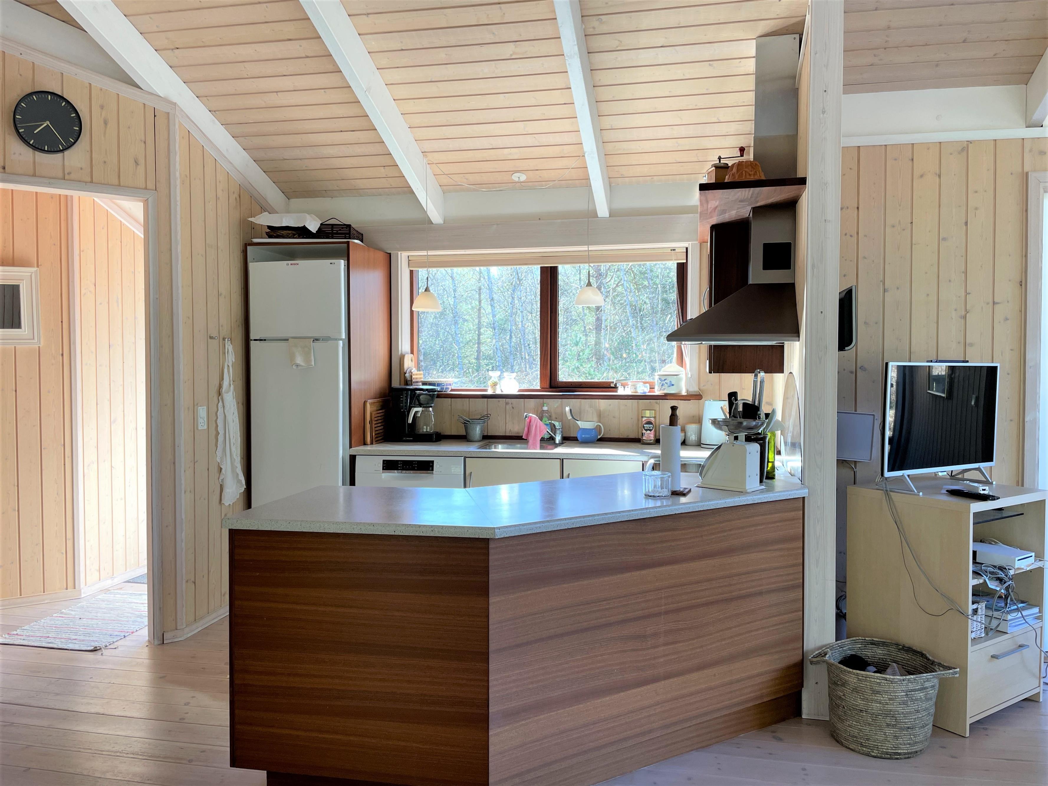 Ein wirklich schönes gut gepflegtes Sommerhaus das friedlich inmitten im Heidegebiet im Nordmarken liegt. Das Haus hat eine moderne Einrichtung, und eine Holzterrasse rund ums Haus, mit Möglichkeiten im Windschatten und Sonnenecken Erholung zu finden. Zudem hat das Haus eine gut funktionierende Küche mit offener Verbindung zum Wohnzimmer mit Tv, wo sie sich vor dem Holzofen gemütlich machen können. Die Grossen Fensterbereiche lassen viel Licht ins Haus, und man fühlt sich nahe der Natur. 3 Schlafzimmer, mit guten Betten, wo 2 mit Doppelbetten und eines mit 2 Einzelbetten ausgestattet ist. Das Haus hat 2 Badezimmer, wo sich Dusche, SPA und Wickeltisch befinden. Im Store Jolle 6 findet man eine richtige Sommerhaus Atmosphäre, in den Wintermonaten vor dem Holzofen,und in den Sommermonaten auf der Terrasse mit langen Sommerabenden. Das Haus hat eine Klimaanlage und ein Anbau mit Waschraum mit Waschmaschine, Tumbler, Bügelbrett mit Bügeleisen. In der schönen Umgebung hat es viele Möglichkeiten für Fahrradtouren/Gehtouren, zum Strand nördlich, oder südlich zum Wattenmeer Bovet. Nahe vom Haus befindet sich auch der schön gelegene Golfplatz, und Østerby Hafen mit Restaurants, gemütlichem Hafenviertel, Fischhandel, Einkaufsmöglichkeiten, und alles können sie Fahrradabstand erreichen.