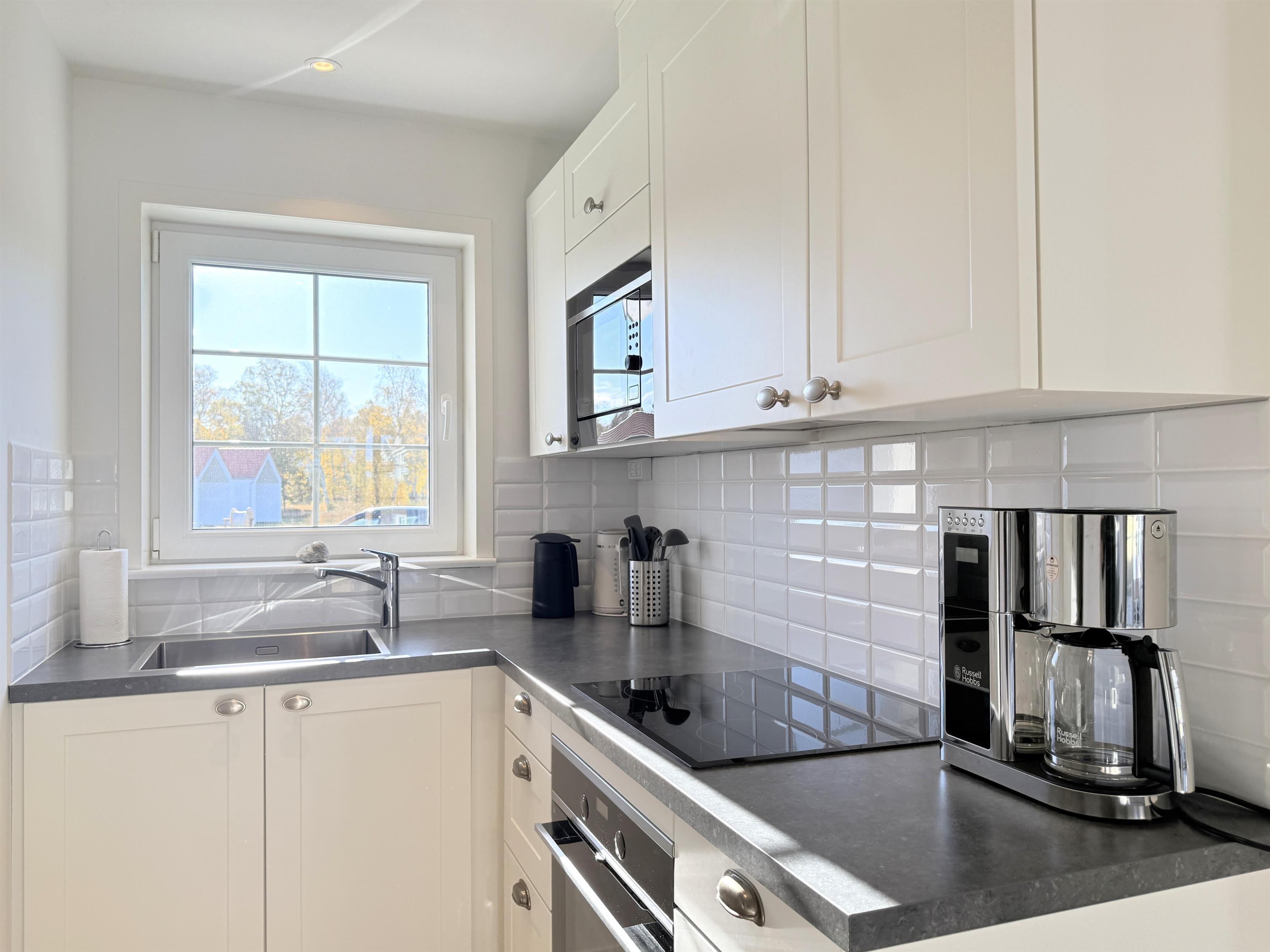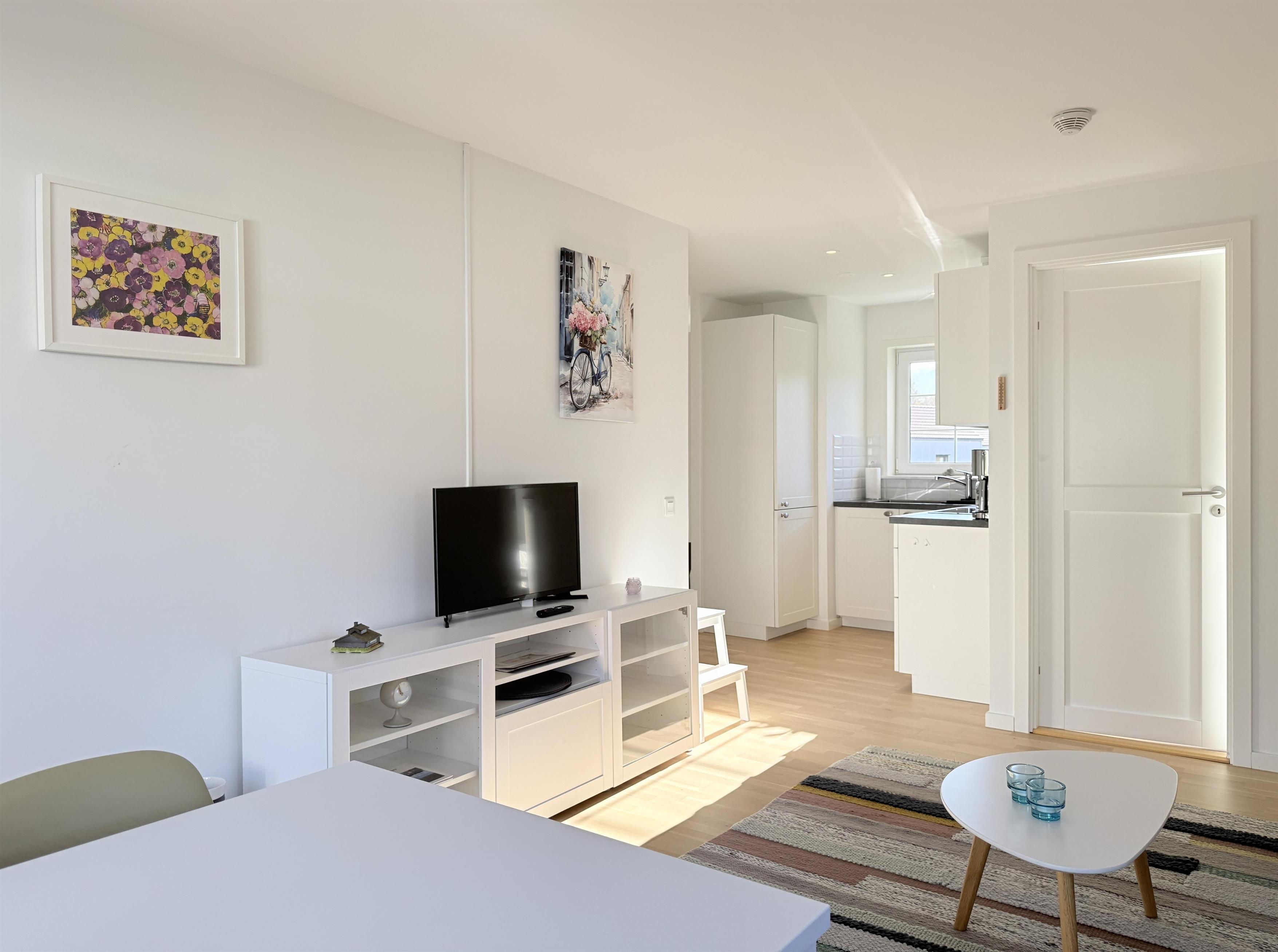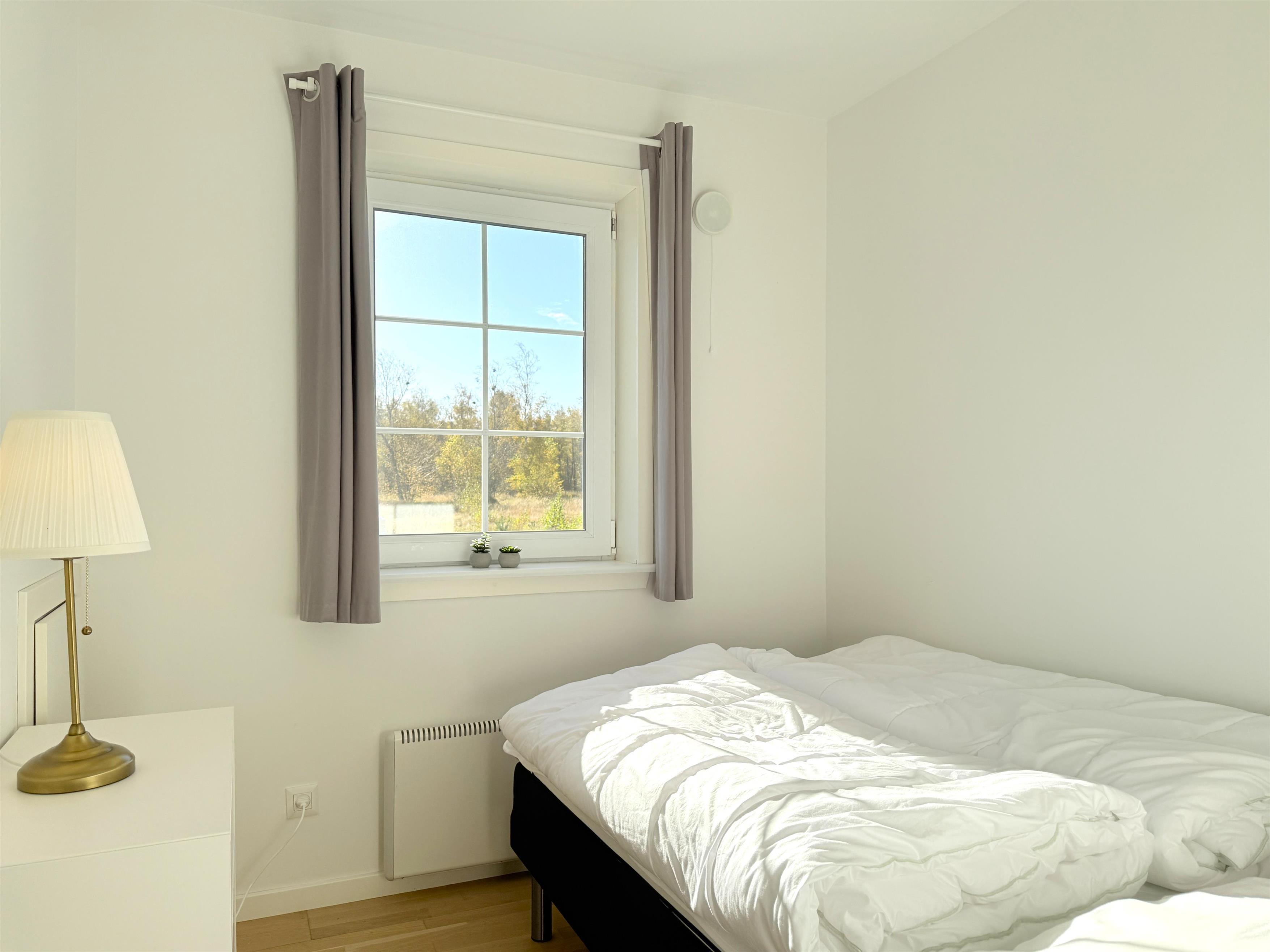 Schönes, neu renoviertes Golfhaus in herrlicher Lage in Nordmarken. Das Haus ist ein Doppelhaus und Teil des Ferienhausdorfs am Læsø Seaside Golfplatz. Das Haus hat einen überdachten Eingang mit kleiner Terrasse, eine schöne Eingangshalle und ein Badezimmer mit Dusche. Schöne Küche, gemütliches Wohnzimmer mit Esstisch und Sofa und Fernseher mit Chromecast. Es gibt ein großes Fenster mit schöner Aussicht und Zugang zur Terrasse. Von der Terrasse aus hat man einen Blick auf das Golfhotel und die Stranddünen. Das Haus hat 2 Zimmer – eines mit 2 Einzelbetten und eines mit einem 120-Bett. Das Haus ist für 4 Personen geeignet und es besteht die Möglichkeit, das Schlafsofa im Wohnzimmer zu nutzen. Das Haus ist mit einer Luft-Luft-Wärmepumpe und Glasfaser-Internet ausgestattet. Es sind nur ca. 100 Meter bis zu einer Ladestation für Elektroautos.
