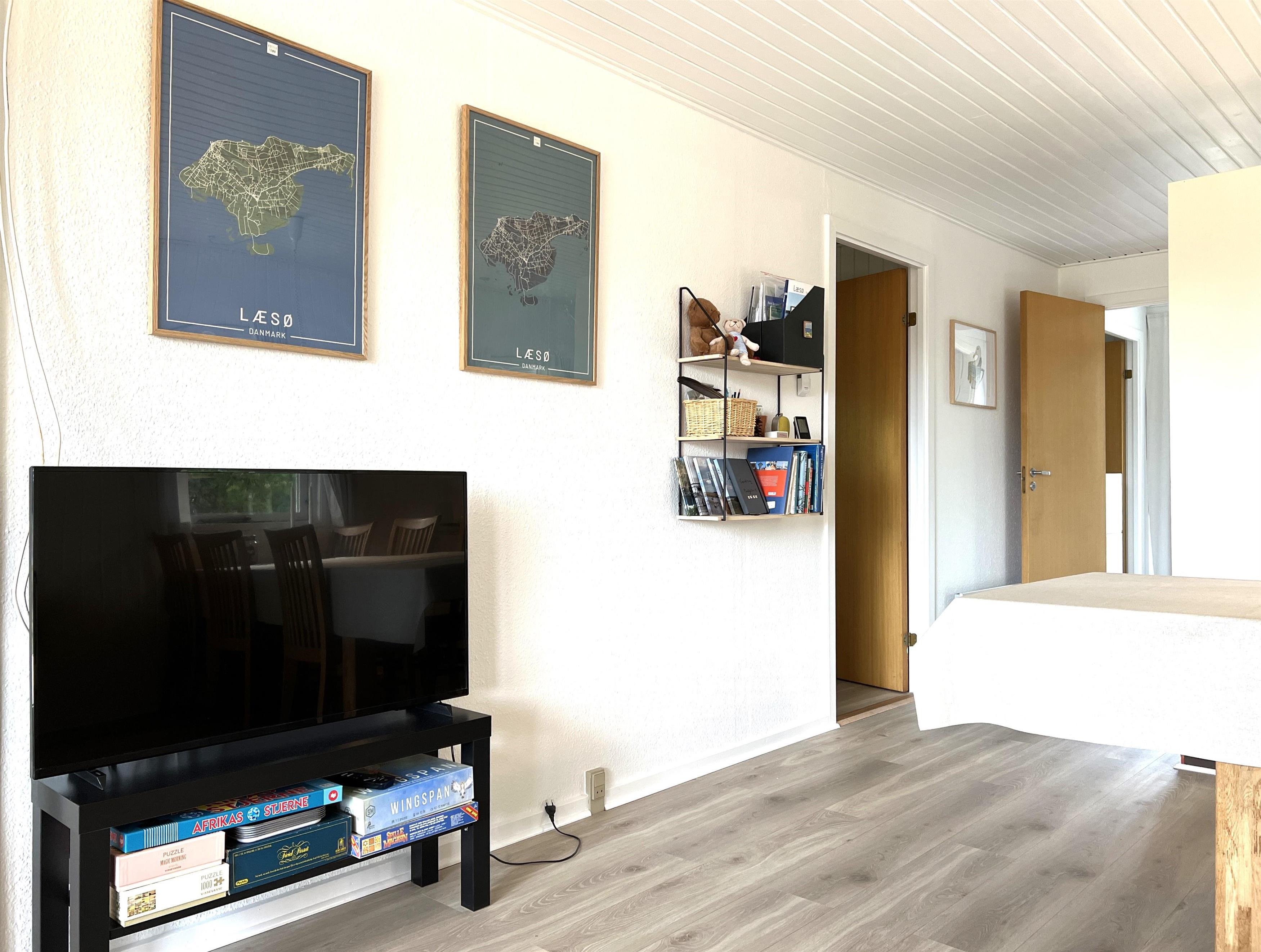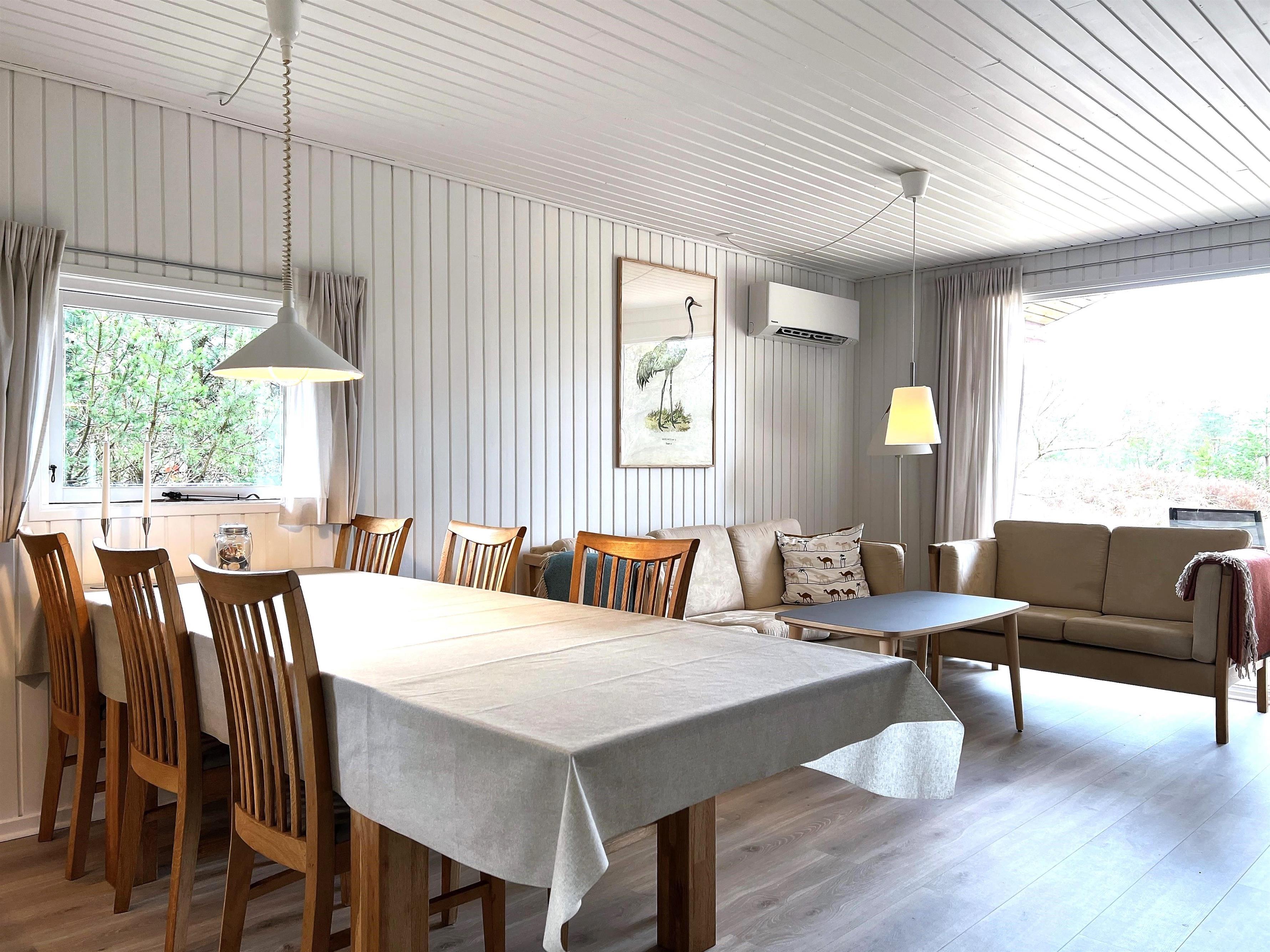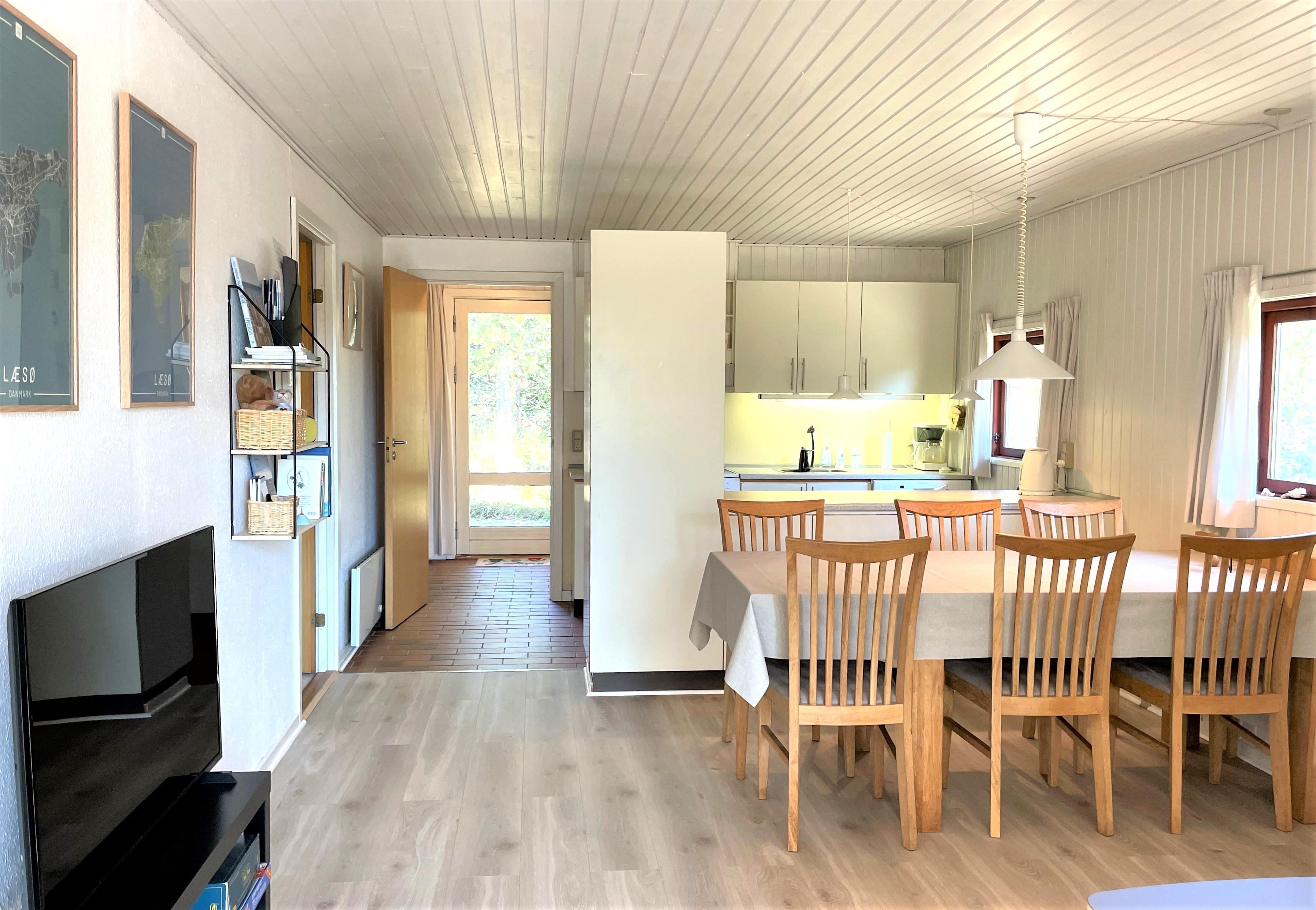 Ein wirklich schönes, helles Sommerhaus im wunderschönen Natur-/Heidegebiet in Nordmarken. Das Haus selbst verfügt über eine gut ausgestattete große Küche in offener Verbindung mit einem Essbereich und einem schönen Wohnzimmer. Es gibt drei schöne Schlafzimmer, eines mit einem Doppelbett, eines mit zwei Einzelbetten und eines mit einem Einzelbett. Die Liebe zu Læsø kann man deutlich an der gemütlichen Inneneinrichtung des Hauses spüren. Brandneues, schönes Badezimmer mit Dusche. Vom Wohnzimmer aus gibt es einen Ausgang auf eine schöne neue Holzterrasse mit Sonnenliegen und Gartenmöbeln.