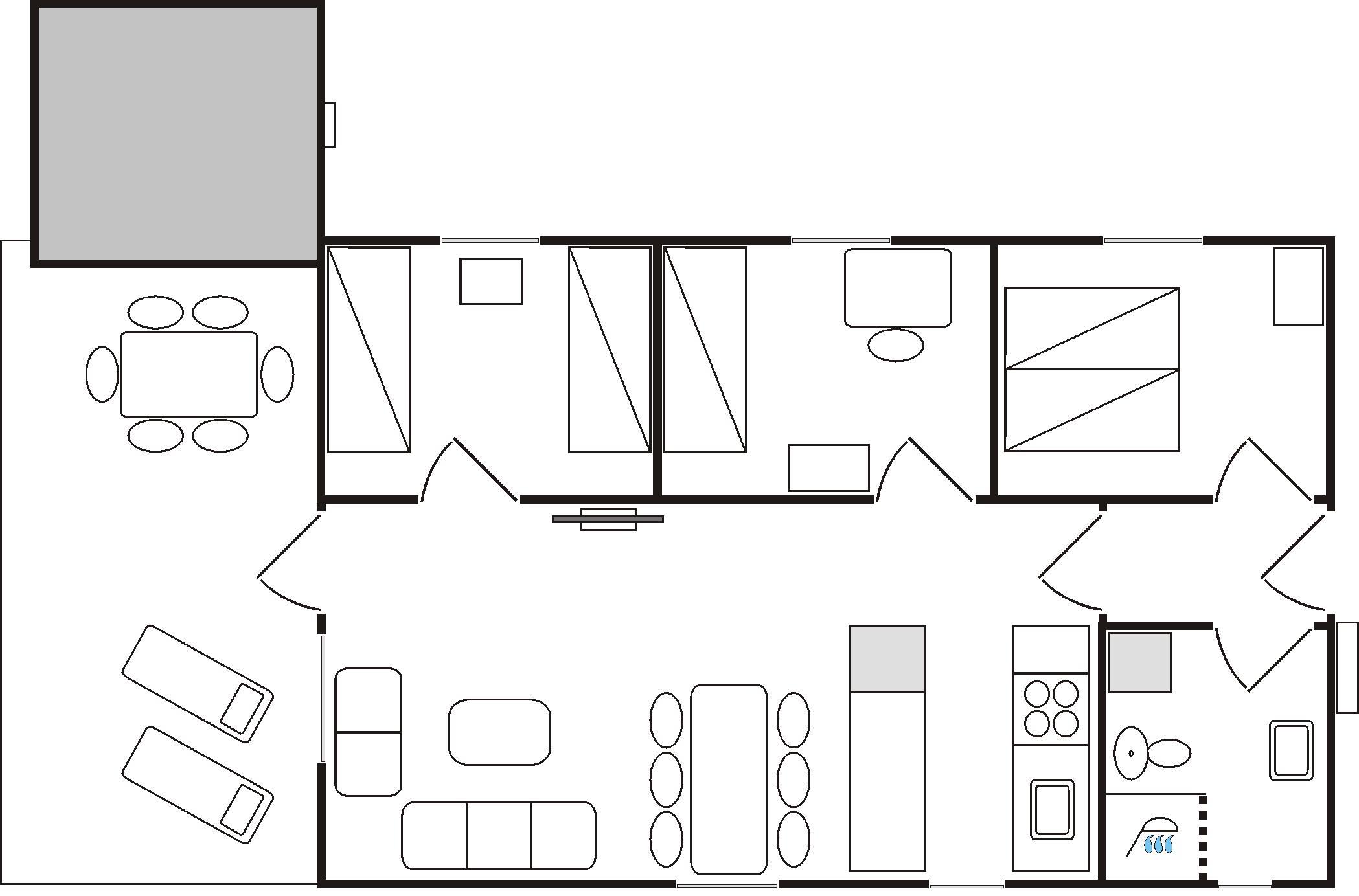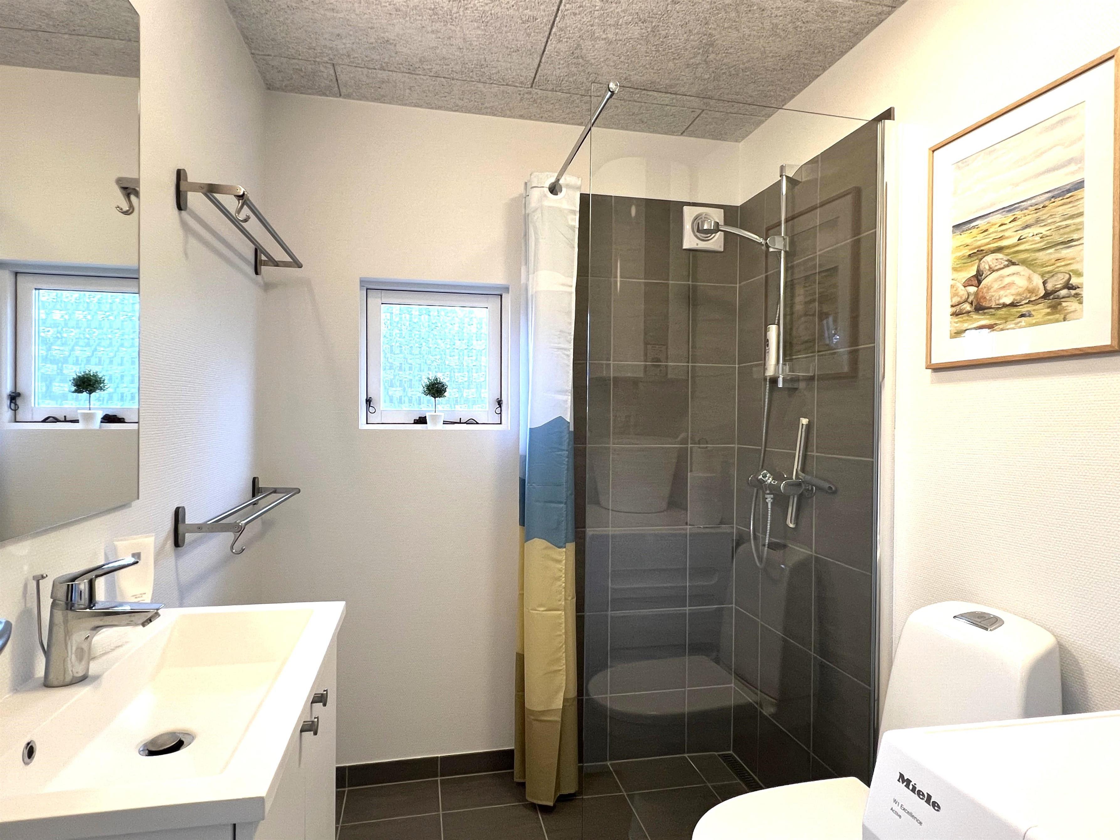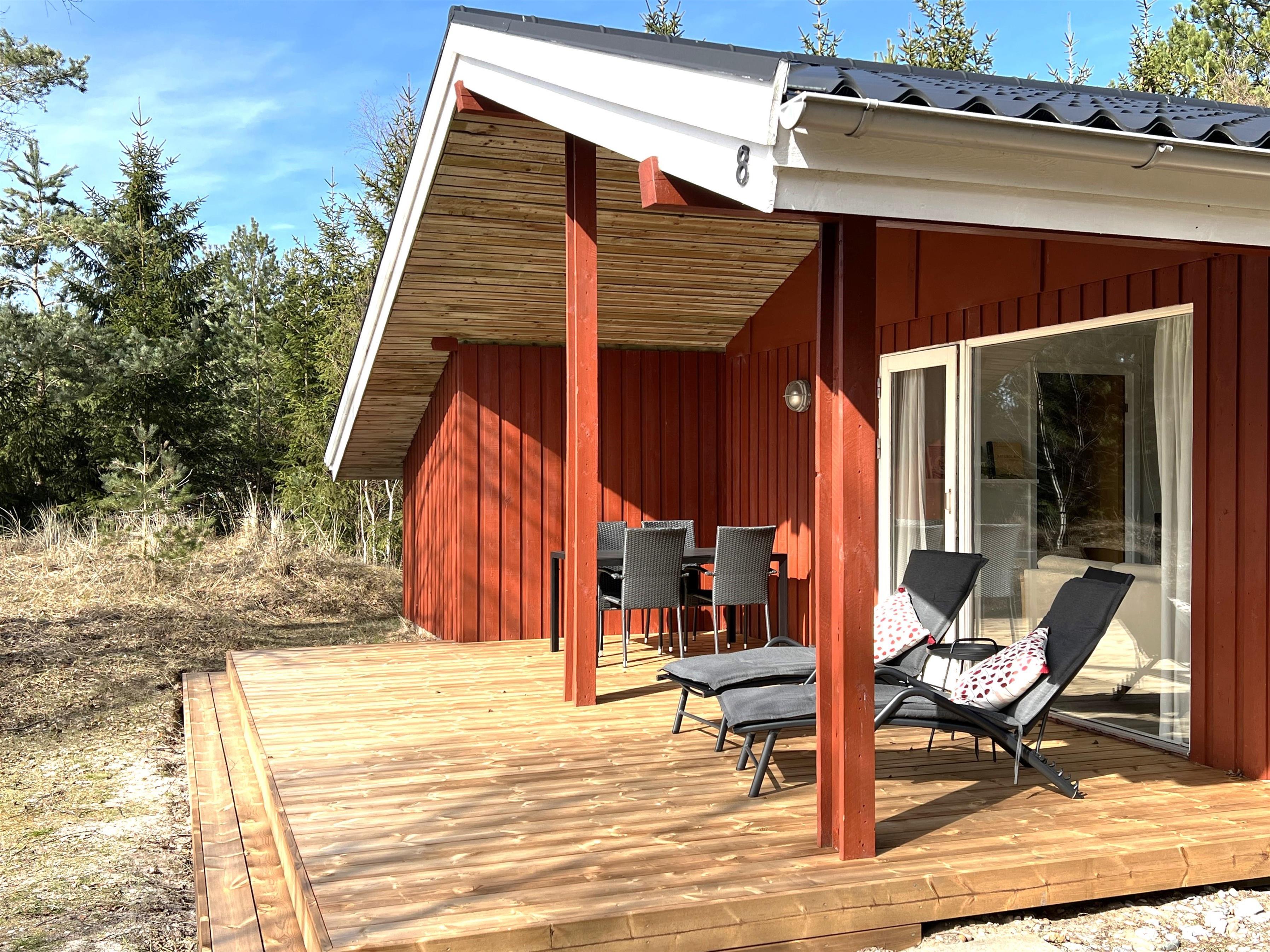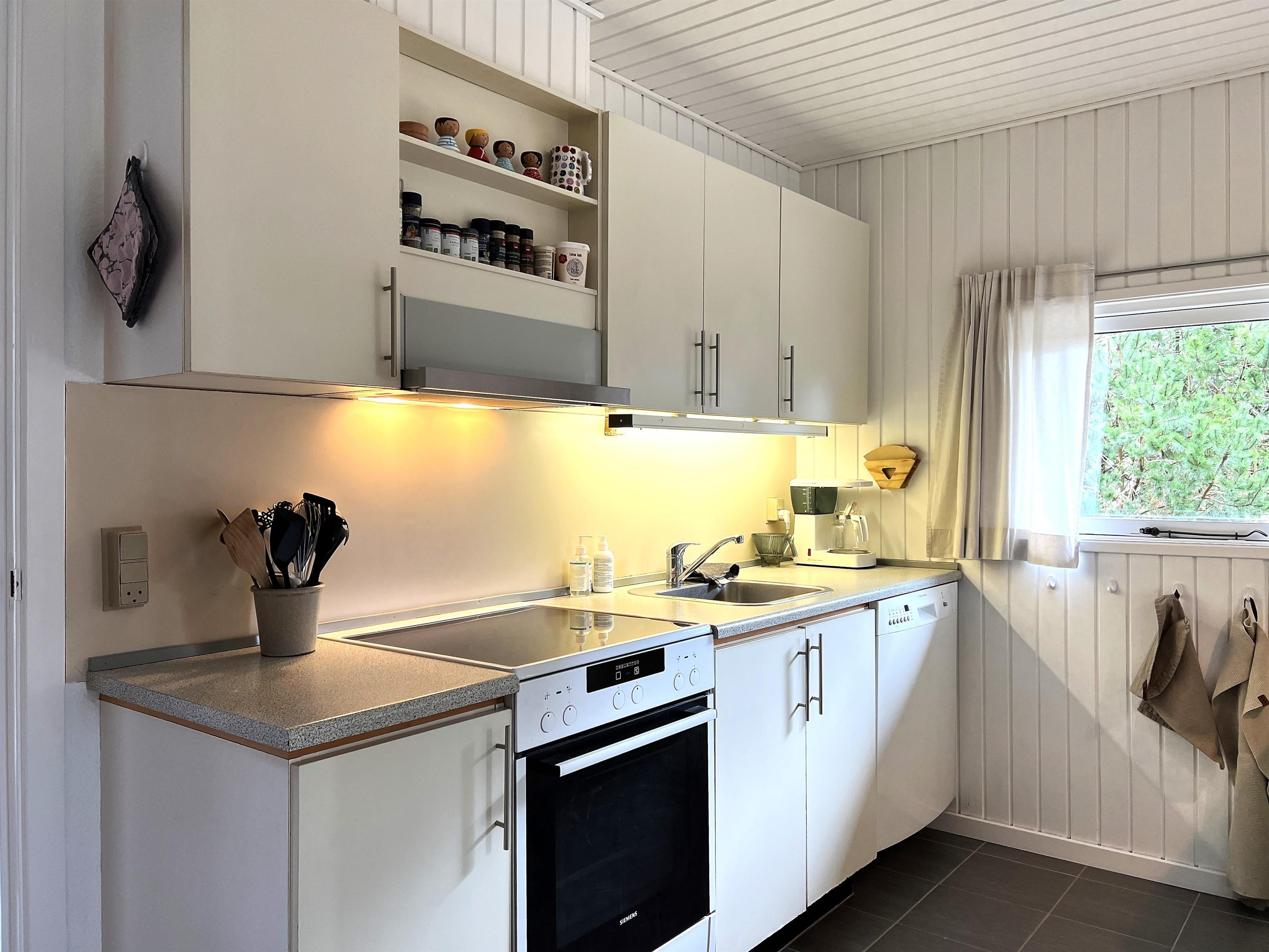 Ein wirklich schönes, helles Sommerhaus im wunderschönen Natur-/Heidegebiet in Nordmarken. Das Haus selbst verfügt über eine gut ausgestattete große Küche in offener Verbindung mit einem Essbereich und einem schönen Wohnzimmer. Es gibt drei schöne Schlafzimmer, eines mit einem Doppelbett, eines mit zwei Einzelbetten und eines mit einem Einzelbett. Die Liebe zu Læsø kann man deutlich an der gemütlichen Inneneinrichtung des Hauses spüren. Brandneues, schönes Badezimmer mit Dusche. Vom Wohnzimmer aus gibt es einen Ausgang auf eine schöne neue Holzterrasse mit Sonnenliegen und Gartenmöbeln.