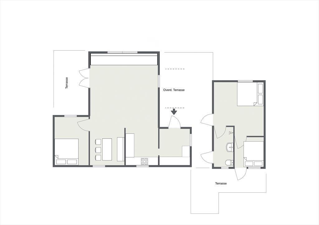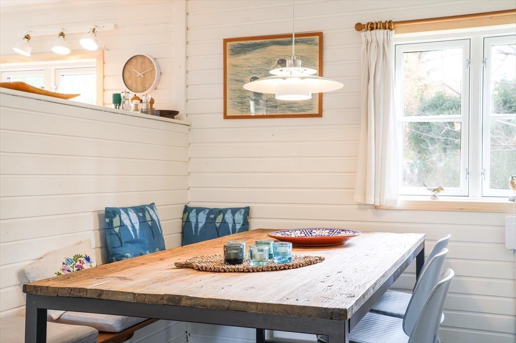 Dein Urlaubsdomizil begrüßt dich mit einer gemütlichen Wohnatmosphäre und typisch dänischer Ferienhausstimmung. Das helle, einladende Ferienhaus bietet angenehm viel Platz, sodass du es dir im Kreise deiner Lieben im schönen Küchen-, Wohn- und Essbereich so richtig gemütlich machen kannst. In stimmungsvoller Runde sitzt ihr sicherlich gern am Sofatisch beisammen, genießt eure Lieblingsgetränke und schmiedet Pläne für den kommenden Tag. Da die Küche offen an den Wohn- und Essbereich schließt, genießt du selbst während der Zubereitung der täglichen Mahlzeiten die Nähe und Gesellschaft deiner Mitreisenden. Zum Ferienhaus gehört ein schönes Nebengebäude, das über eine überdachte Terrasse zugänglich ist. Das Nebengebäude beinhaltet zwei helle Schlafräume und das angenehm helle Badezimmer.