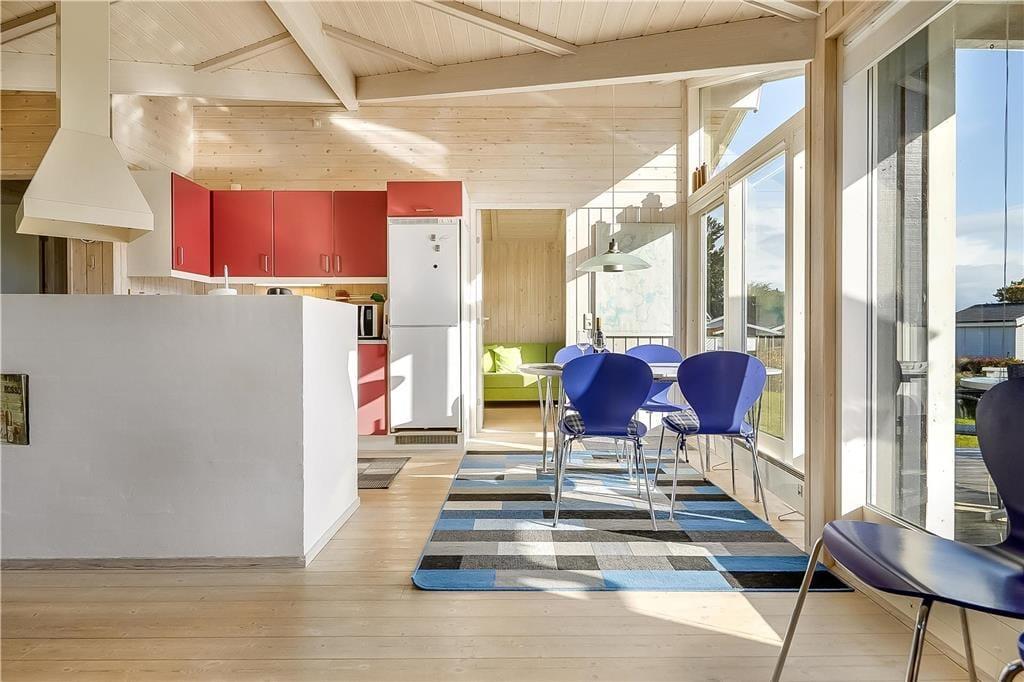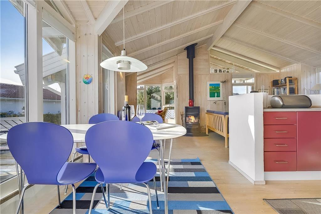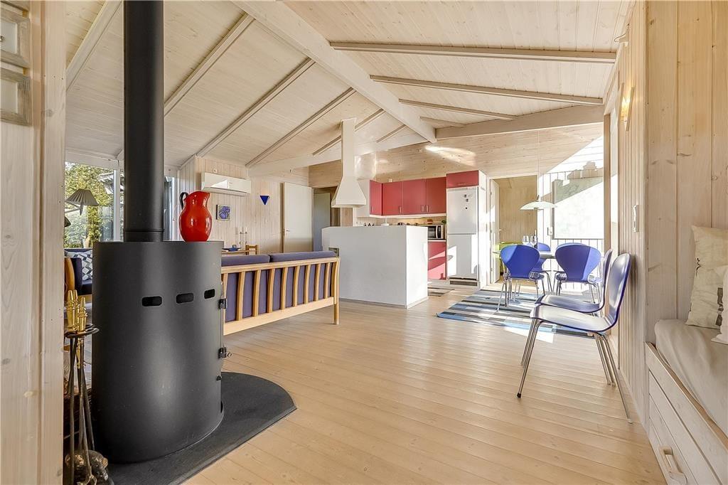 Wenn du das Haus betrittst, empfängt dich eine helle und freundliche Atmosphäre. Der Wohnbereich verbindet Essen und Entspannung und die großen Fenster lassen die Natur fast in den Raum hineinfließen. An kühleren Tagen bietet der Kaminofen einen angenehmen Mittelpunkt, an dem Gespräche entstehen und die Zeit ganz von selbst langsamer wird. Die Küche liegt so, dass du beim Kochen weiterhin am gemeinsamen Leben teilnimmst. Alles hier lädt dich ein, zur Ruhe zu kommen und den Augenblick zu genießen.