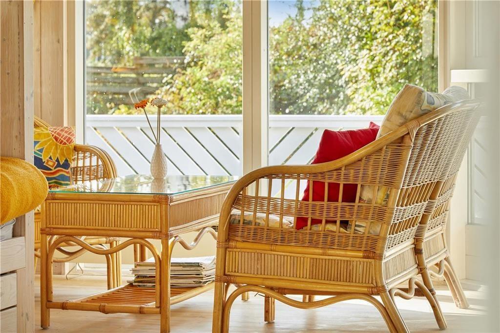 Draußen entfaltet sich der Urlaub richtig. Auf der Terrasse kannst du im sanften Tageslicht sitzen und den Blick über die Küstenlandschaft schweifen lassen. Der Morgen beginnt ruhig mit einer warmen Tasse in der Hand, während du über das Wasser schaust, das sich ständig verändert. Ein kurzer Spaziergang führt dich zum Hafen, wo Fischerboote und kleine Segelboote sanft im Wasser liegen. Am Strand kannst du am Ufer entlanggehen, den Sand unter deinen Füßen spüren und dem Rauschen der Wellen lauschen. Wenn der Abend kommt, färbt sich der Himmel in weiche, warme Töne und die Urlaubsstimmung legt sich sanft über alles.