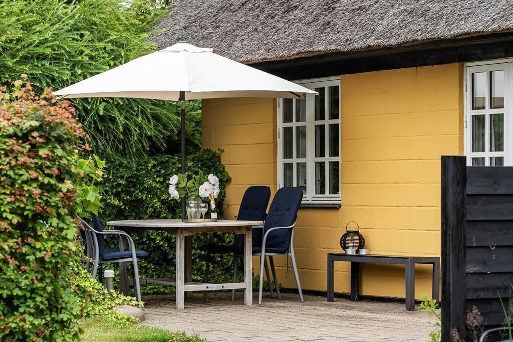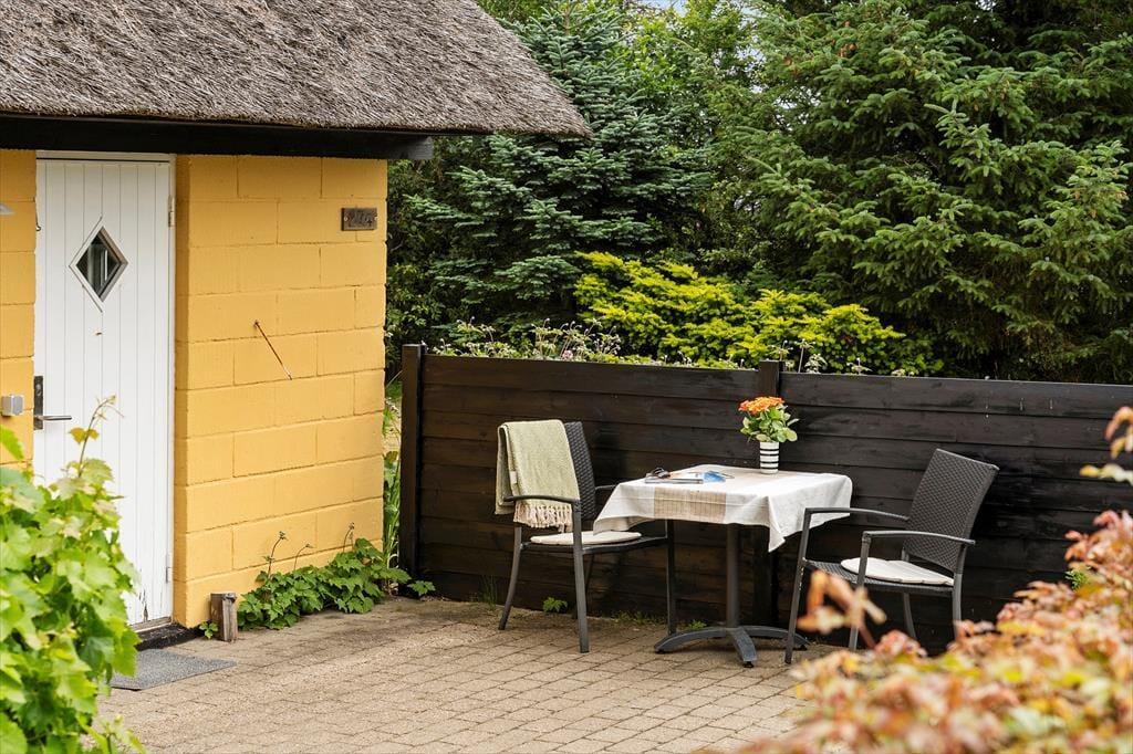 Der uneinsehbare Garten ist wie geschaffen für Spiel und Erholung. Hier gibt es eine große Rasenfläche mit viel Platz zum Fußballspielen, Frisbee werfen oder einer Partie Wikingerschach. Die Bepflanzung rund um das Grundstück sorgt für Windschutz und bildet kleine gemütliche Ecken, in denen ihr euren eigenen Platz an der Sonne oder im Schatten finden könnt – je nach Lust und Laune. Setzt euch mit einem guten Buch in die Gartenmöbel, genießt eine Tasse Kaffee auf der Terrasse oder entspannt in einem der beiden Liegestühle, während die Kinder spielen. Im Geräteschuppen findet ihr verschiedene Outdoorspiele und Bälle, die frei genutzt werden können – alles bereit für schöne gemeinsame Momente unter freiem Himmel.