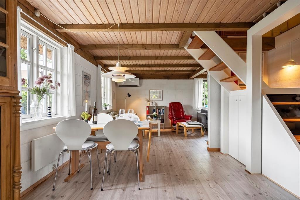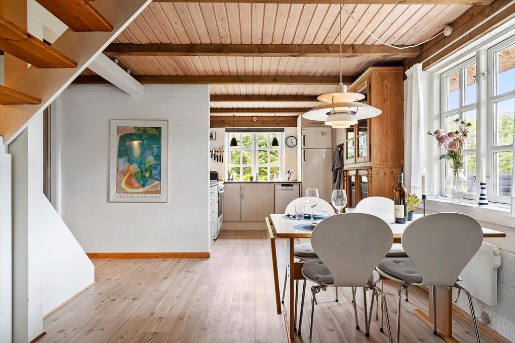Willkommen in einem wunderschönen Ferienhaus im naturnahen Helmklit – einer ruhigen und familienfreundlichen Gegend, ganz in der Nähe der tosenden Nordsee und des stillen Fjords. Das Haus liegt am Ende einer kleinen, ruhigen Straße, umgeben von dichter und schöner Bepflanzung, die sowohl Privatsphäre als auch eine besondere Ruhe bietet. Die Natur rund um das Haus schafft eine friedliche Atmosphäre, die vom ersten Moment an zur Entspannung einlädt. Im Inneren erwartet euch eine großzügige und gemütliche Einrichtung mit viel Licht und einer heimeligen Stimmung. Küche und Wohnzimmer sind offen miteinander verbunden, sodass die ganze Familie zusammen sein kann – auch beim Kochen. Macht es euch auf dem Sofa bequem, spürt die Wärme des Holzofens und genießt das Feriengefühl. Im Obergeschoss befinden sich zwei große, komfortable Schlafzimmer mit viel Stauraum – eines davon mit eigenem WC und Waschbecken, was besonders für Großeltern sehr angenehm ist. Auf dem Treppenabsatz warten zahlreiche Kinderspiele, Mal- und Bastelsachen sowie ein Videogerät mit Filmen für Kinder und Erwachsene – perfekt für Regentage oder gemütliche Familienstunden.