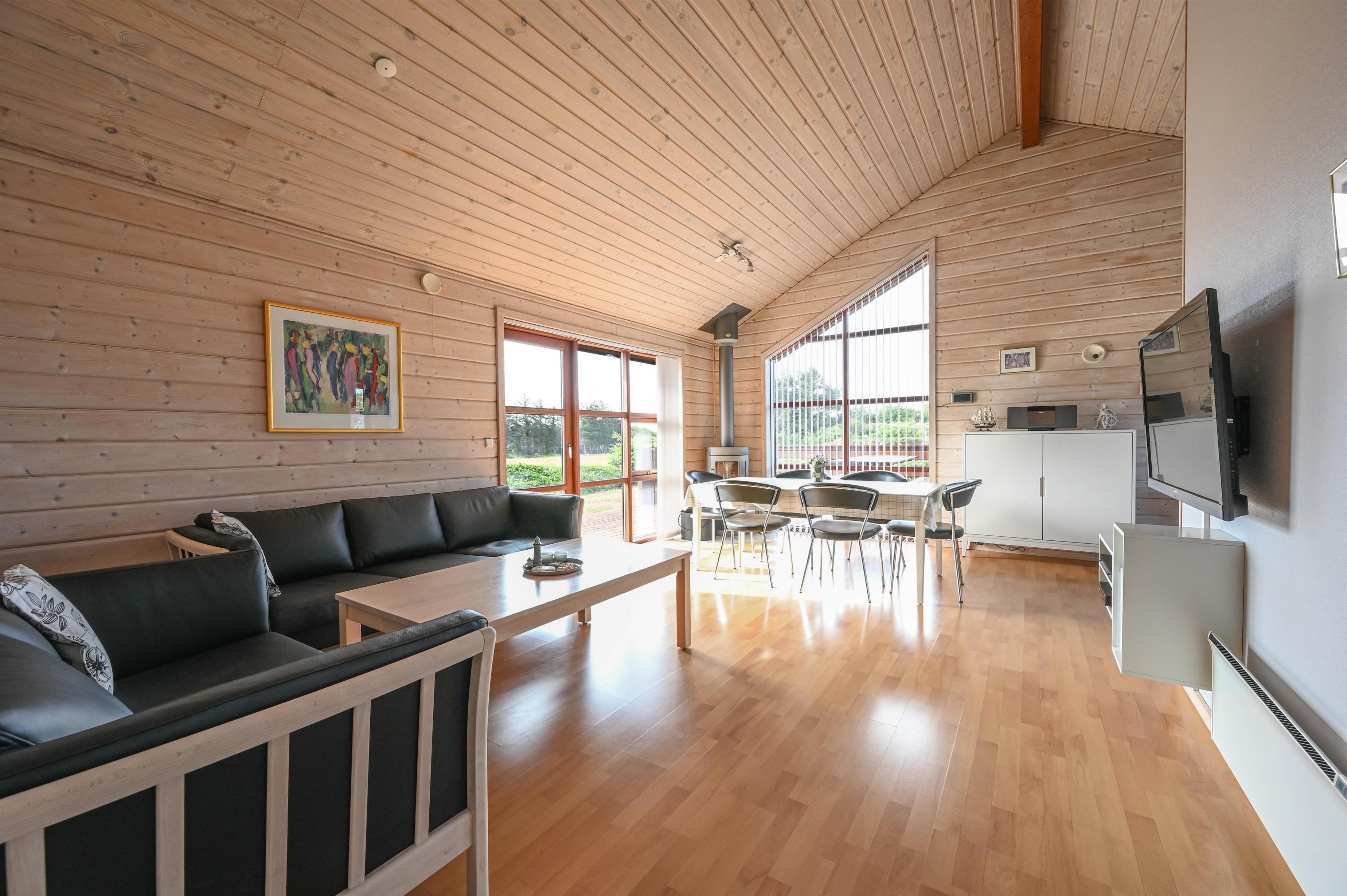Einen weiten Blick über die Wiesen bis zum Nissum Fjord habt ihr von diesem schönen Holzhaus mit 85 qm Wohnfläche.